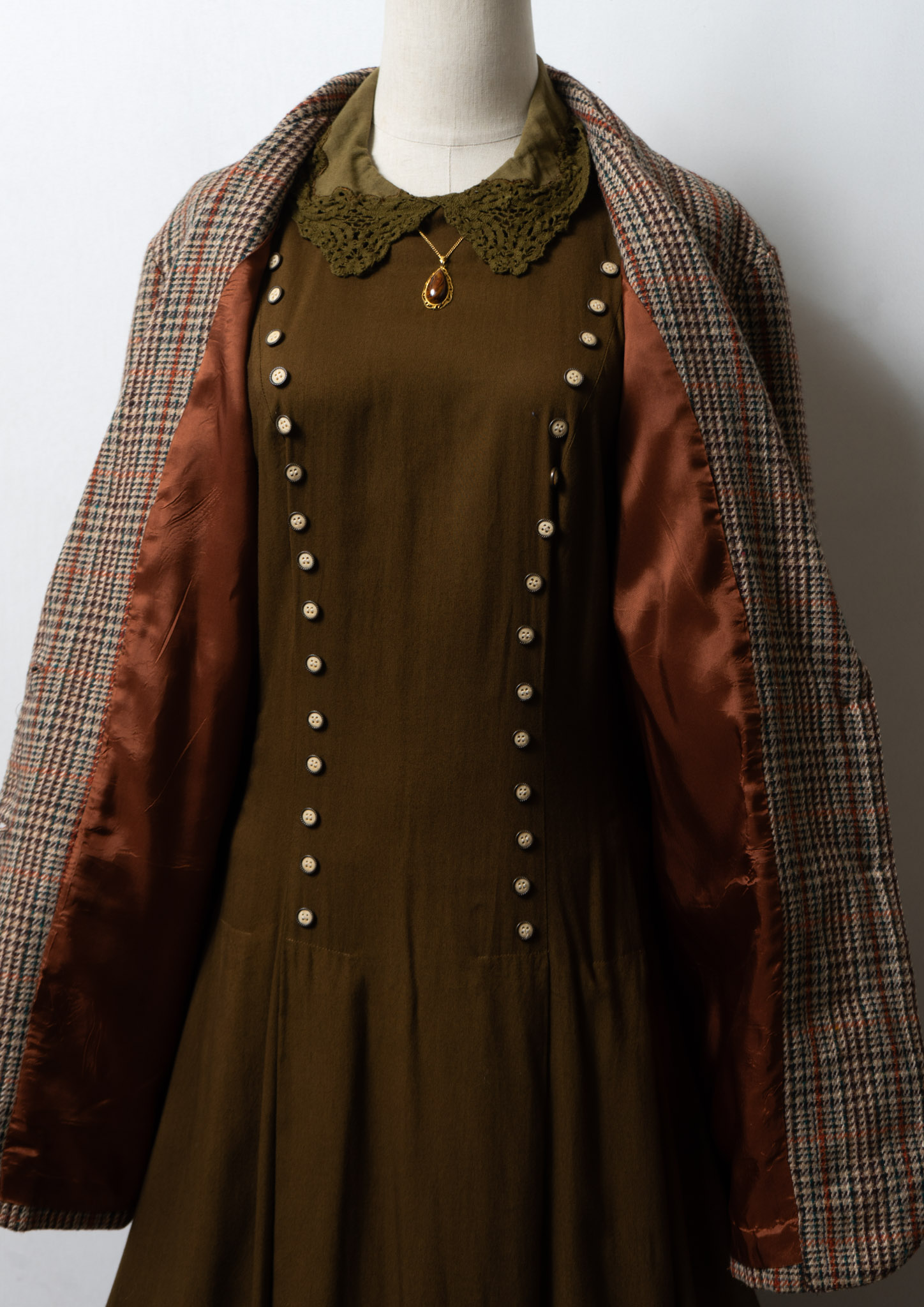 Belt・Accessory : (Not for sale)Dress : 80's Front Mini Button Design Over Dye Olive Dress