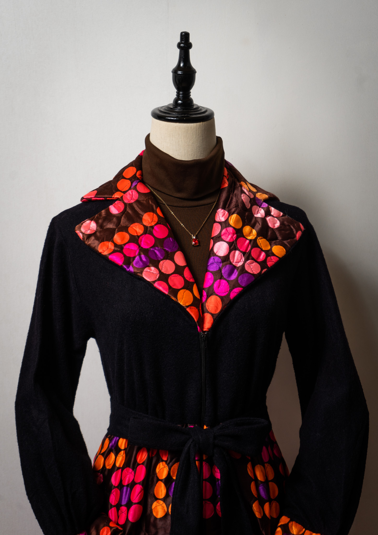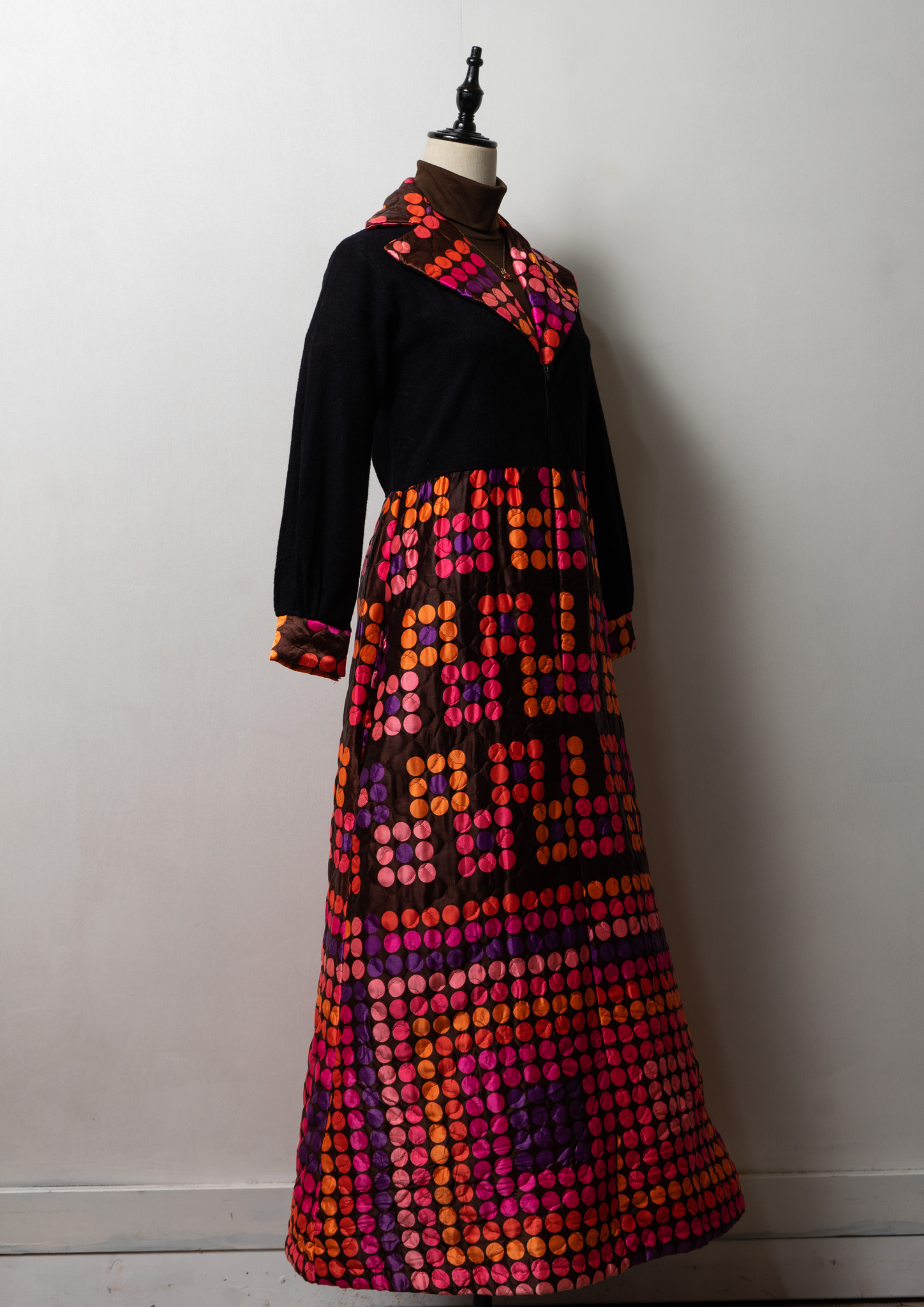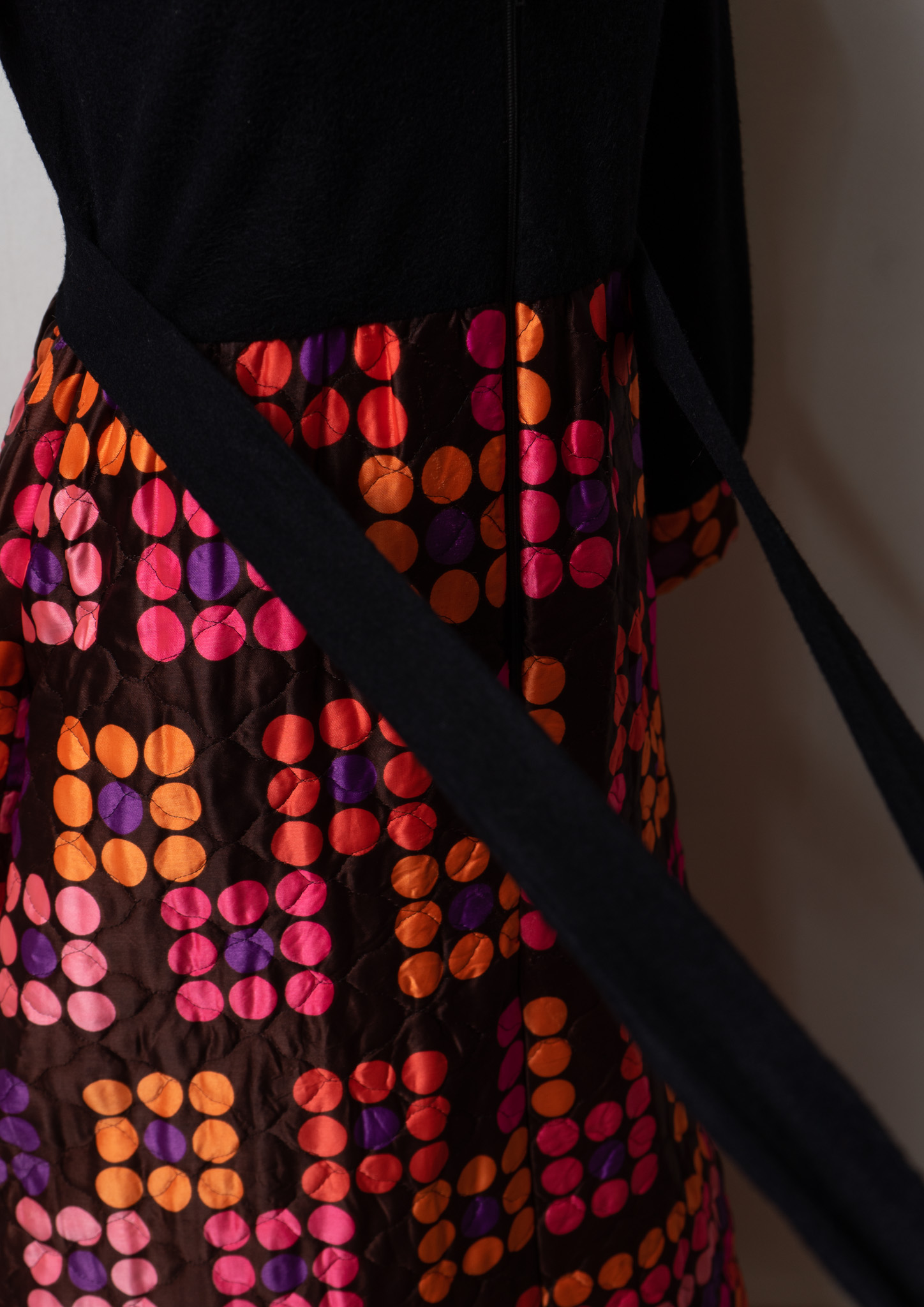 70's USA Design Dot Pattern Quilting Skirt Dress