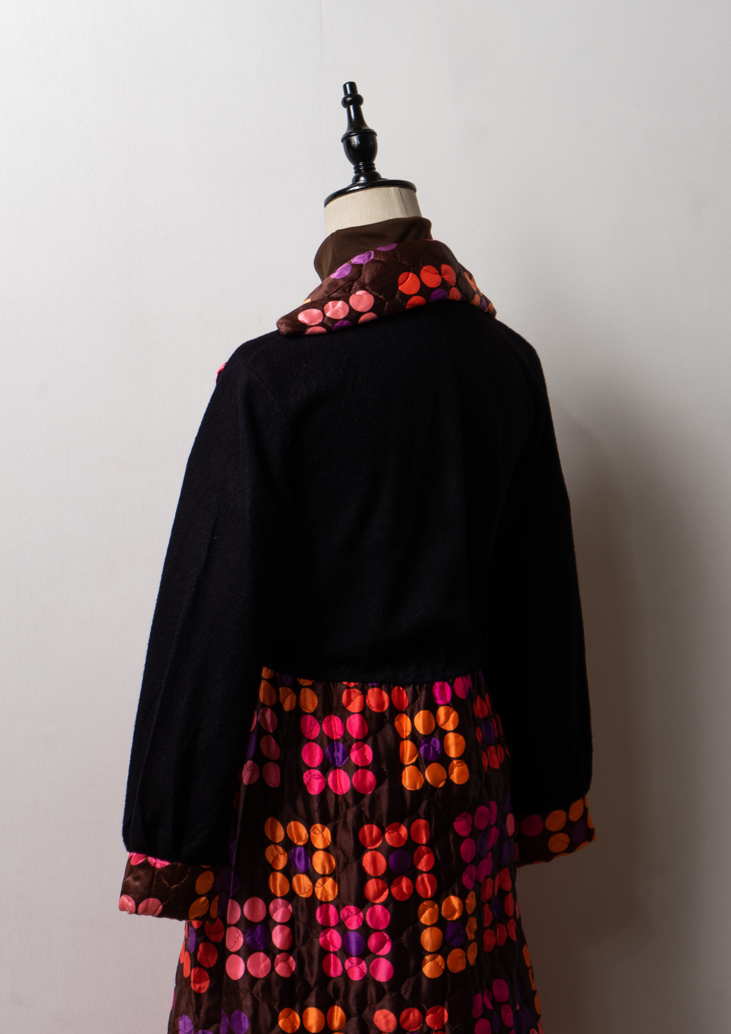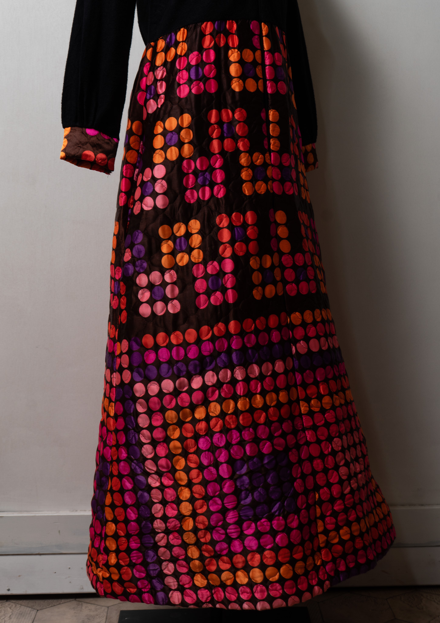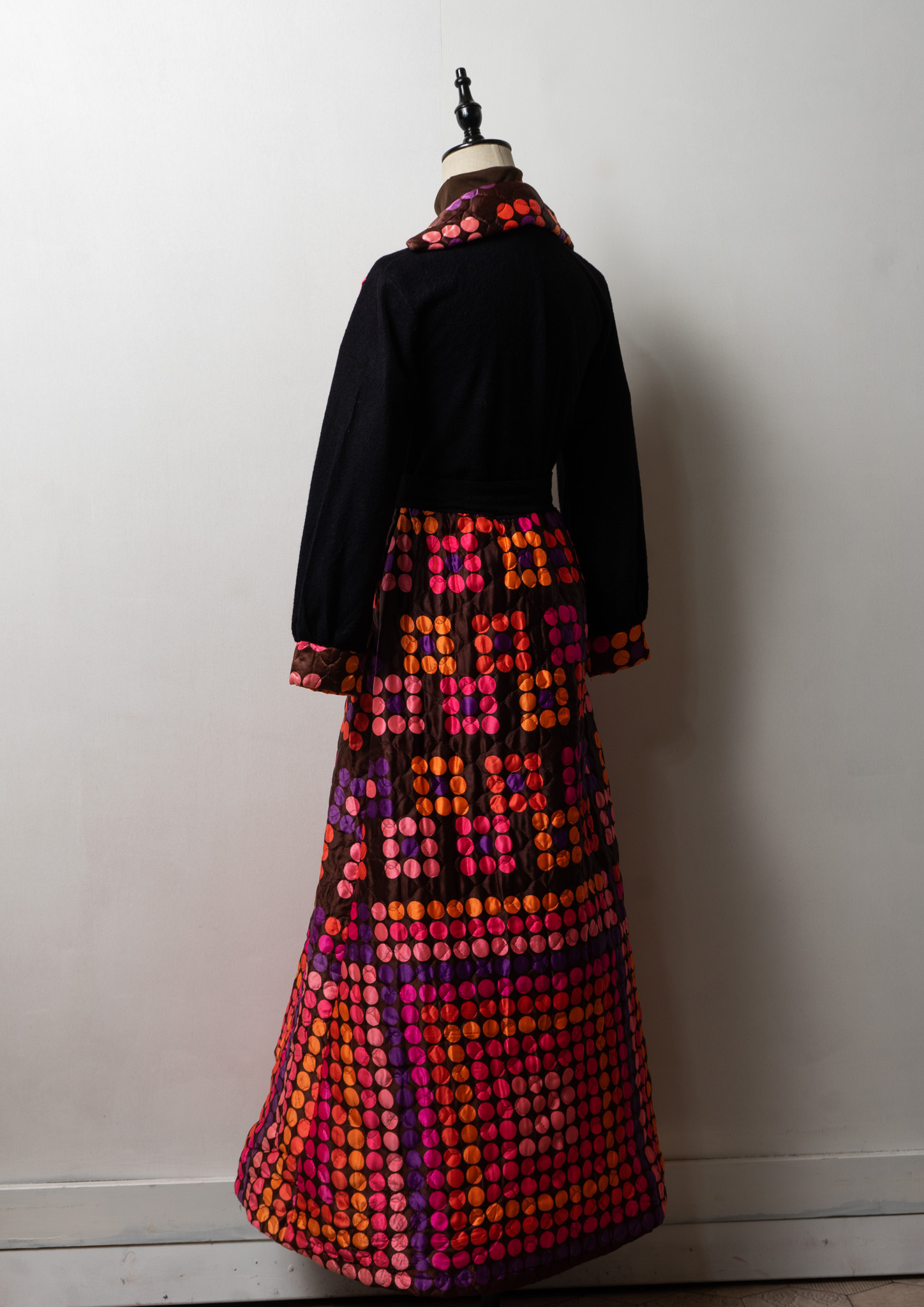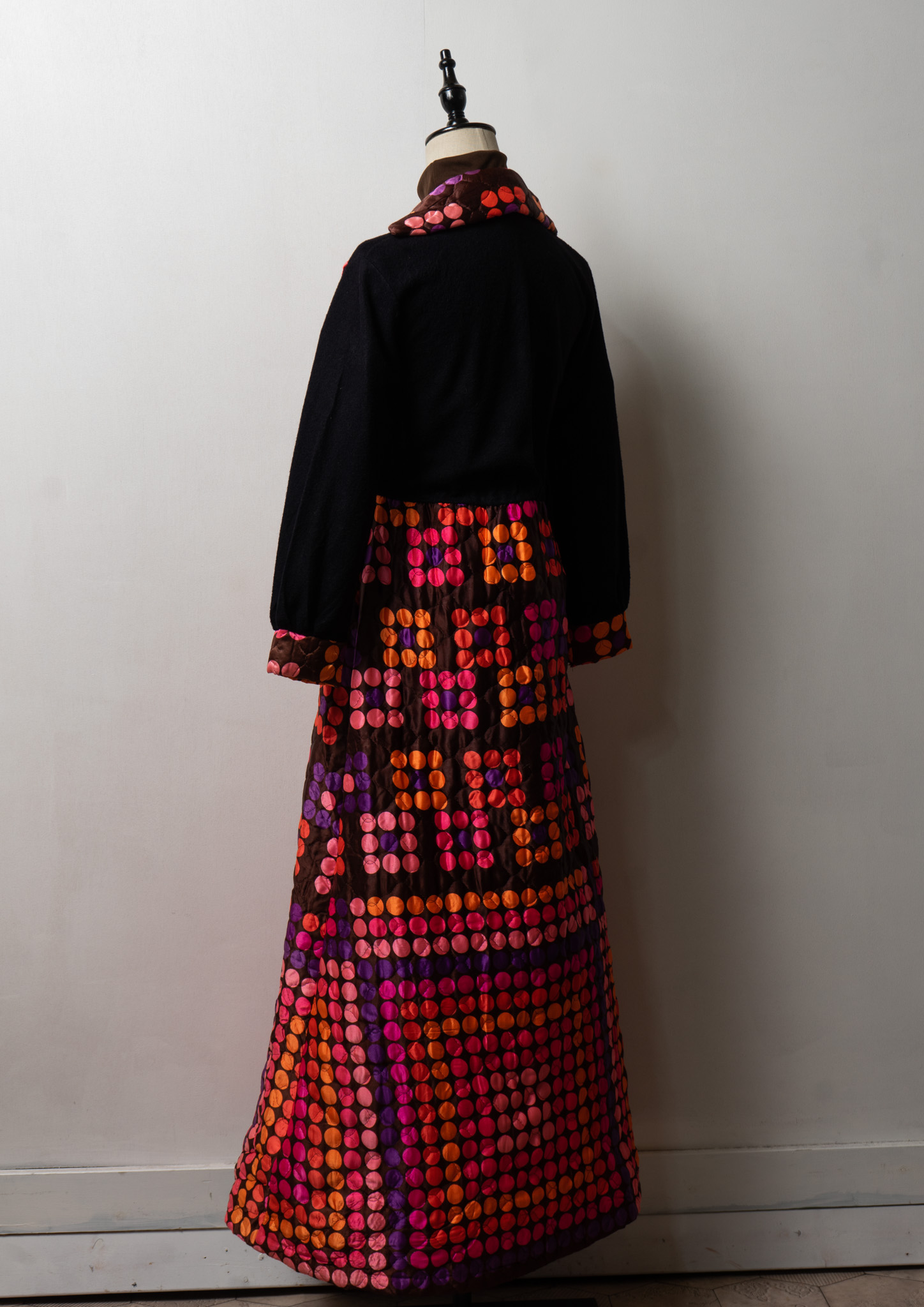 70's USA SAKS FIFTH AVENUE Velvet×Multi Color Quilting Skirt Dress