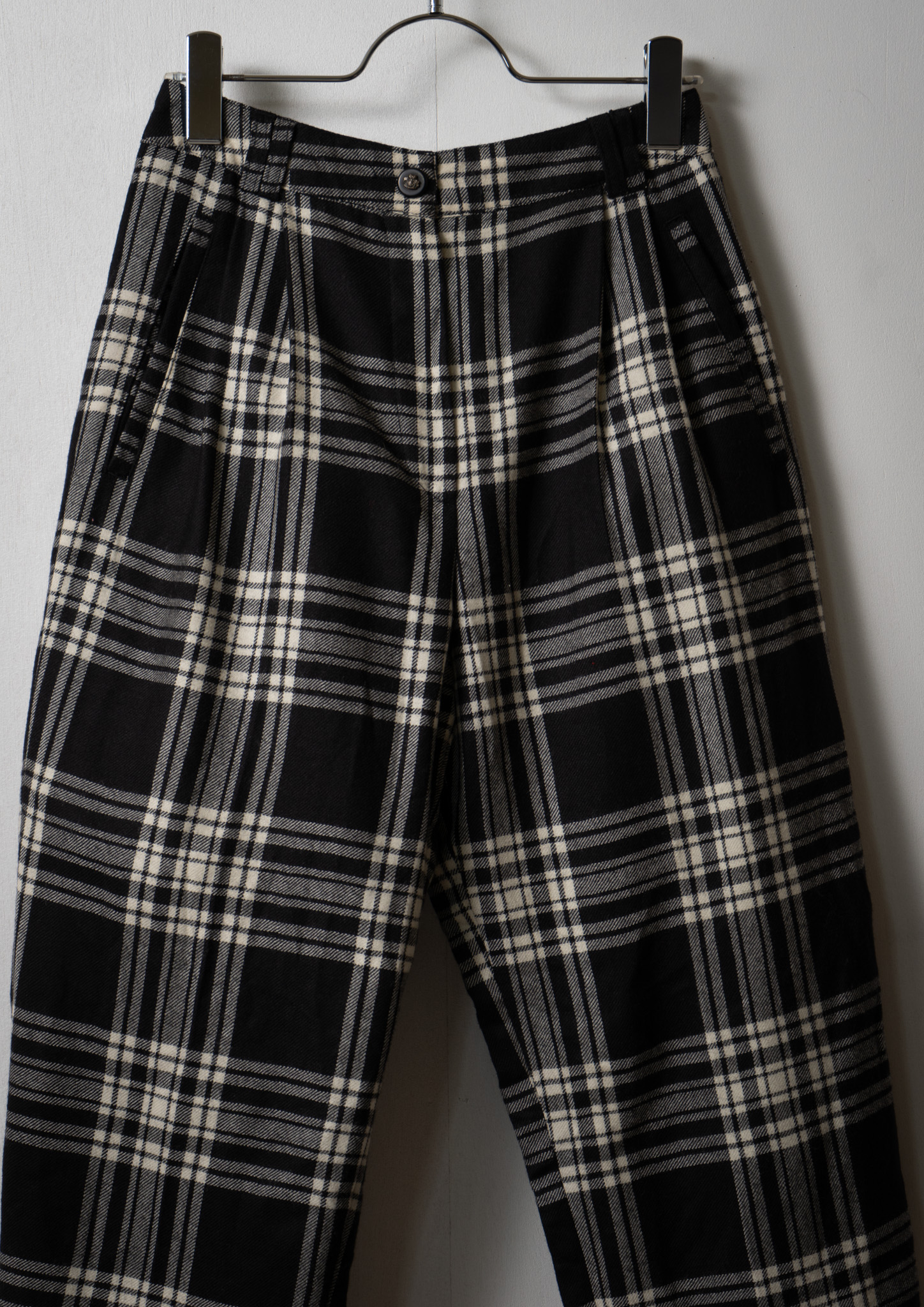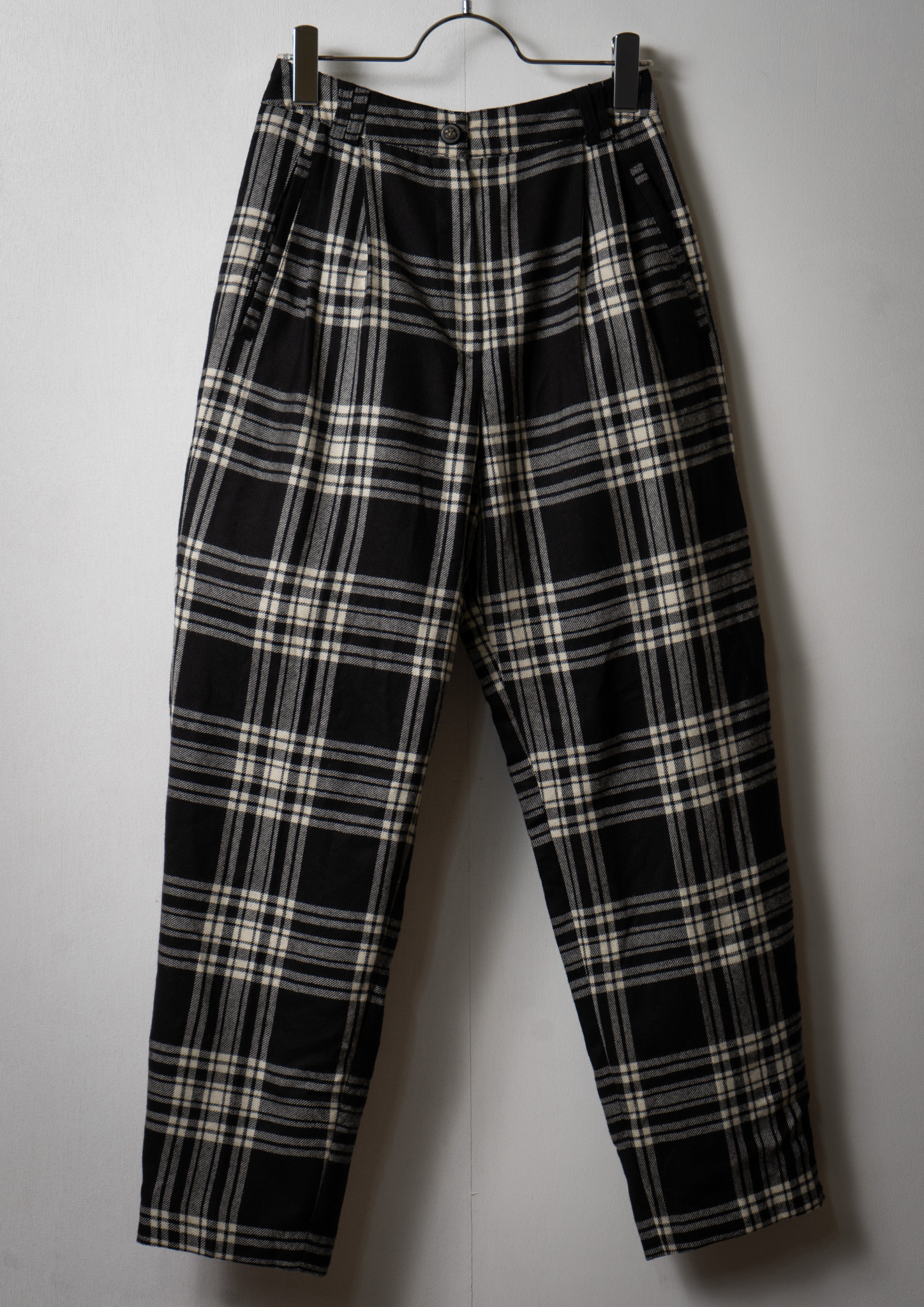 90's Black × White Tartan Check Pattern Pants