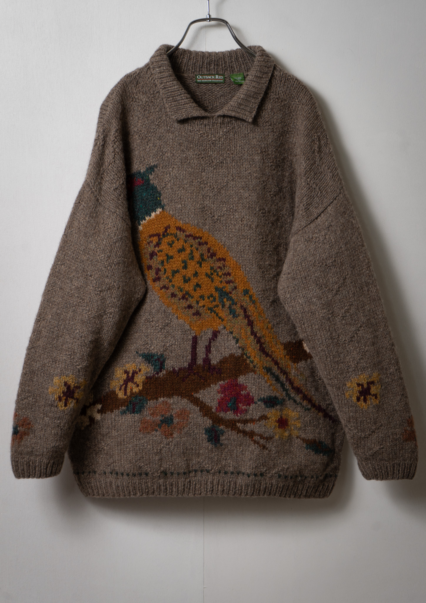 80~90's Bird Pattern Polo neck Sweater