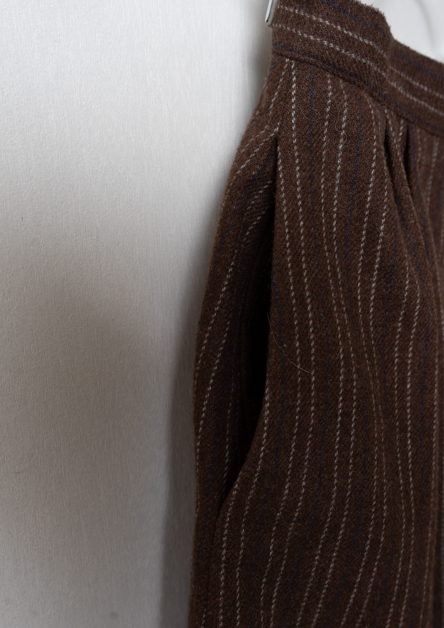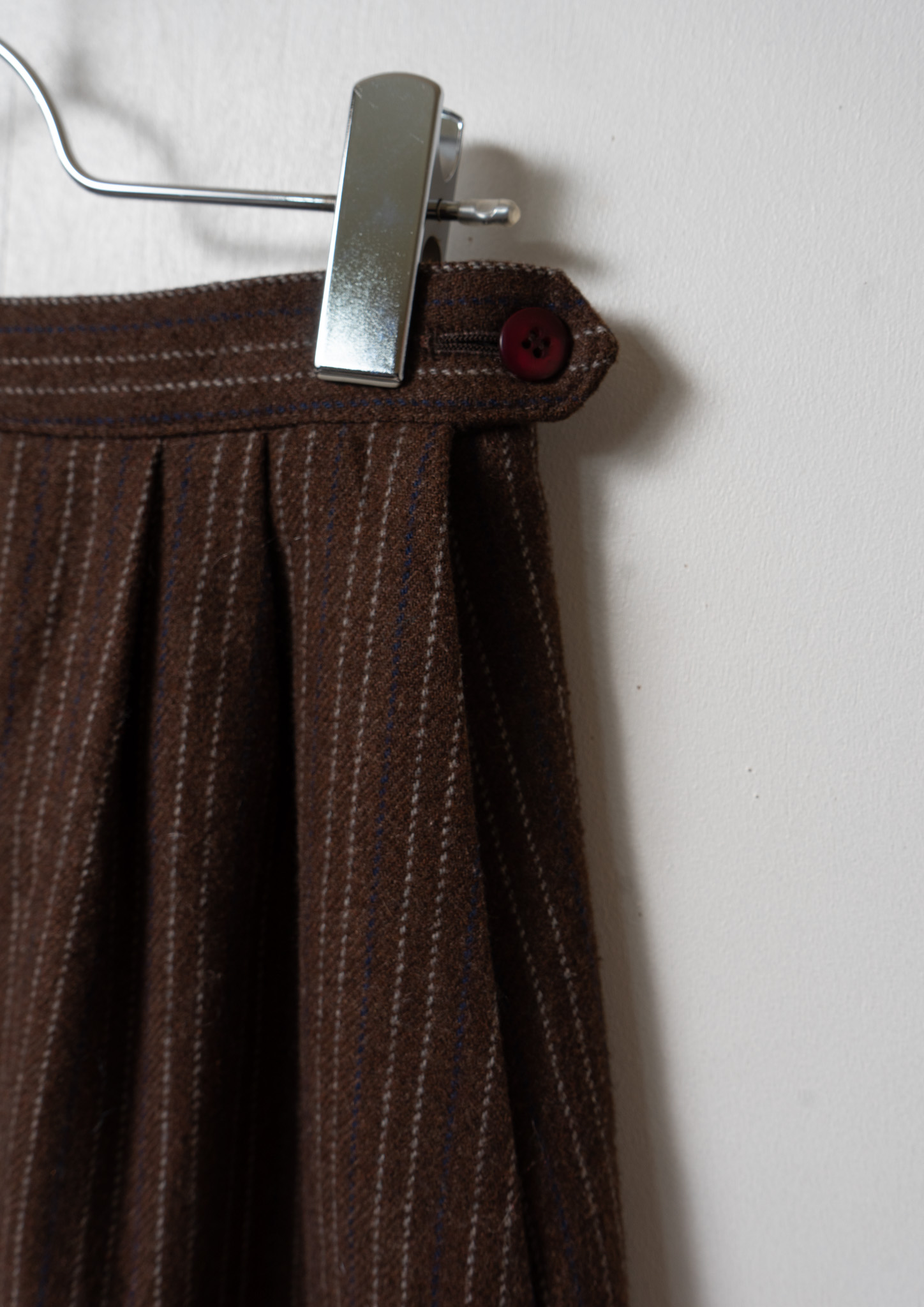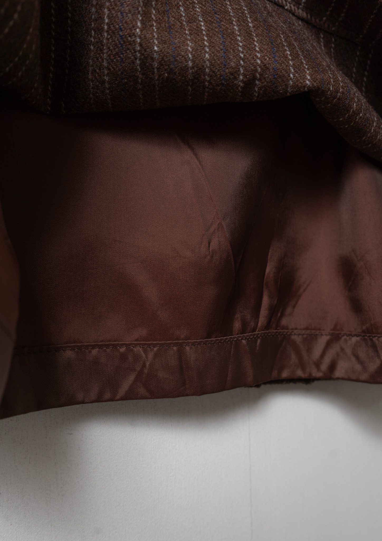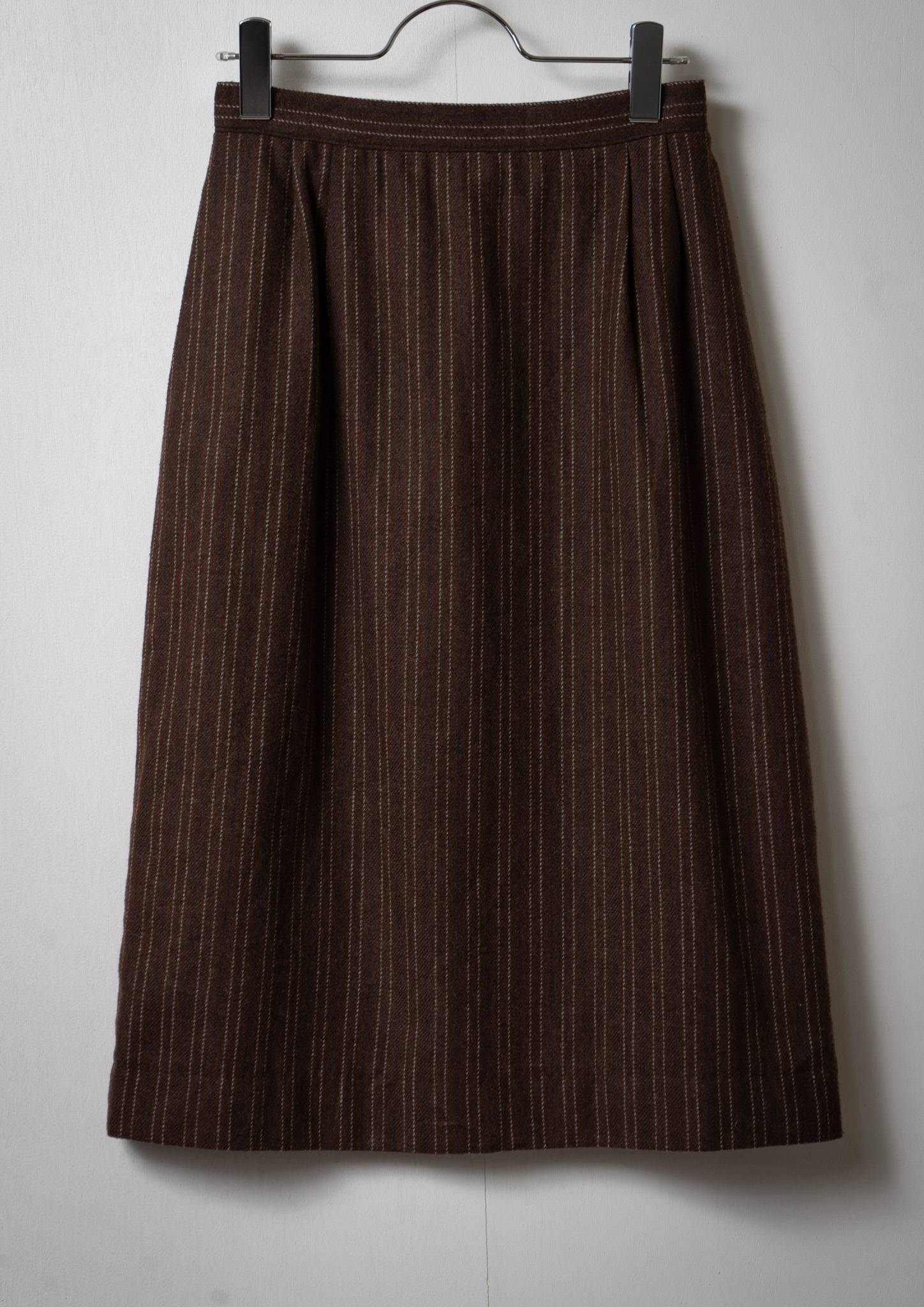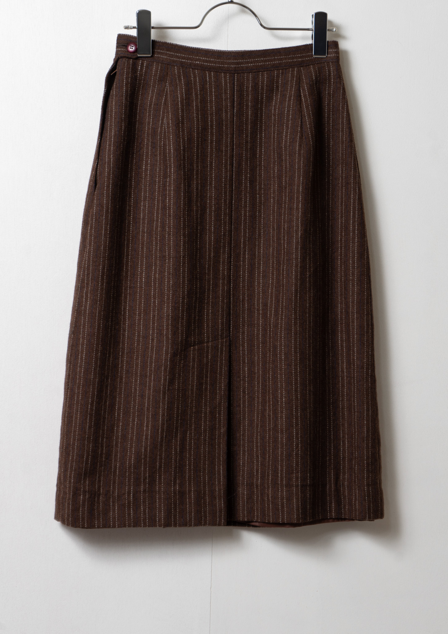 70's Navy×Gray Stripe Pattern Brown Wool Mixed Skirt