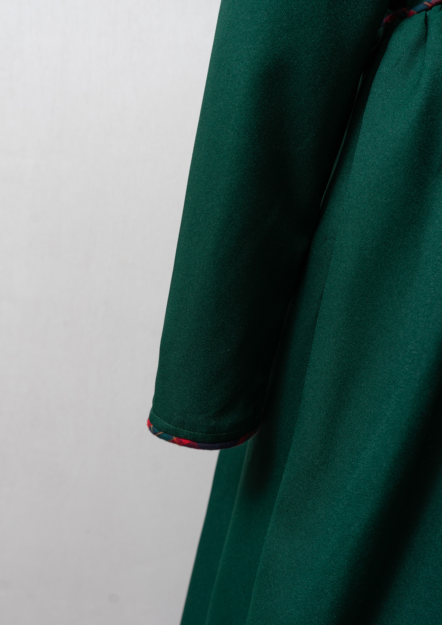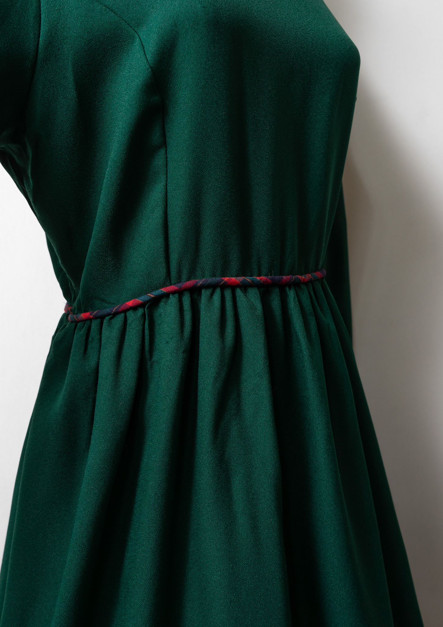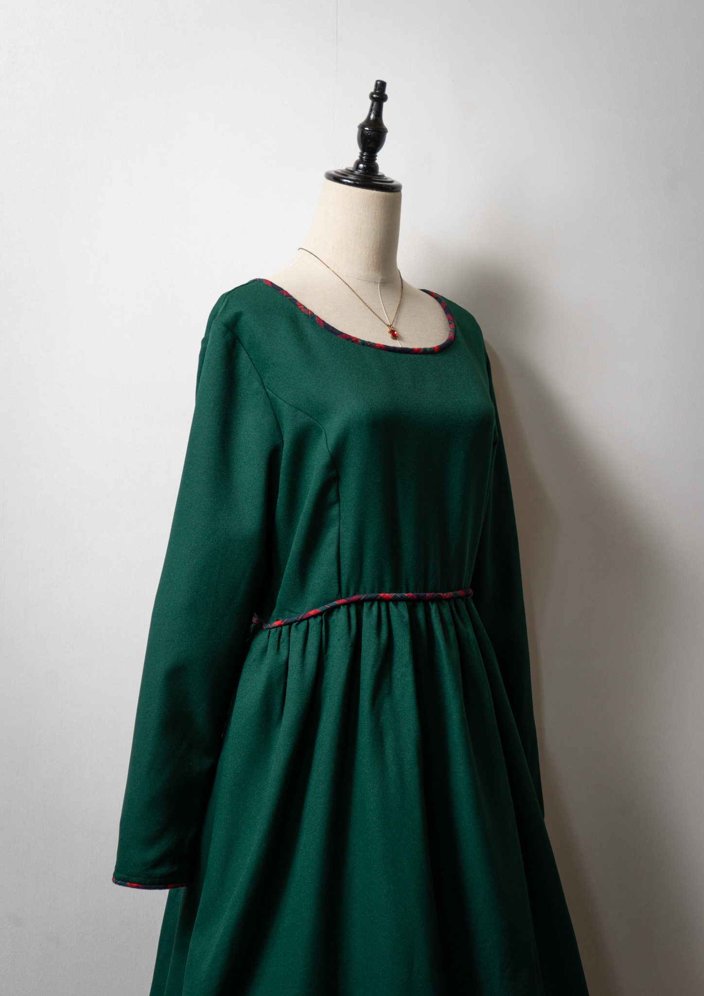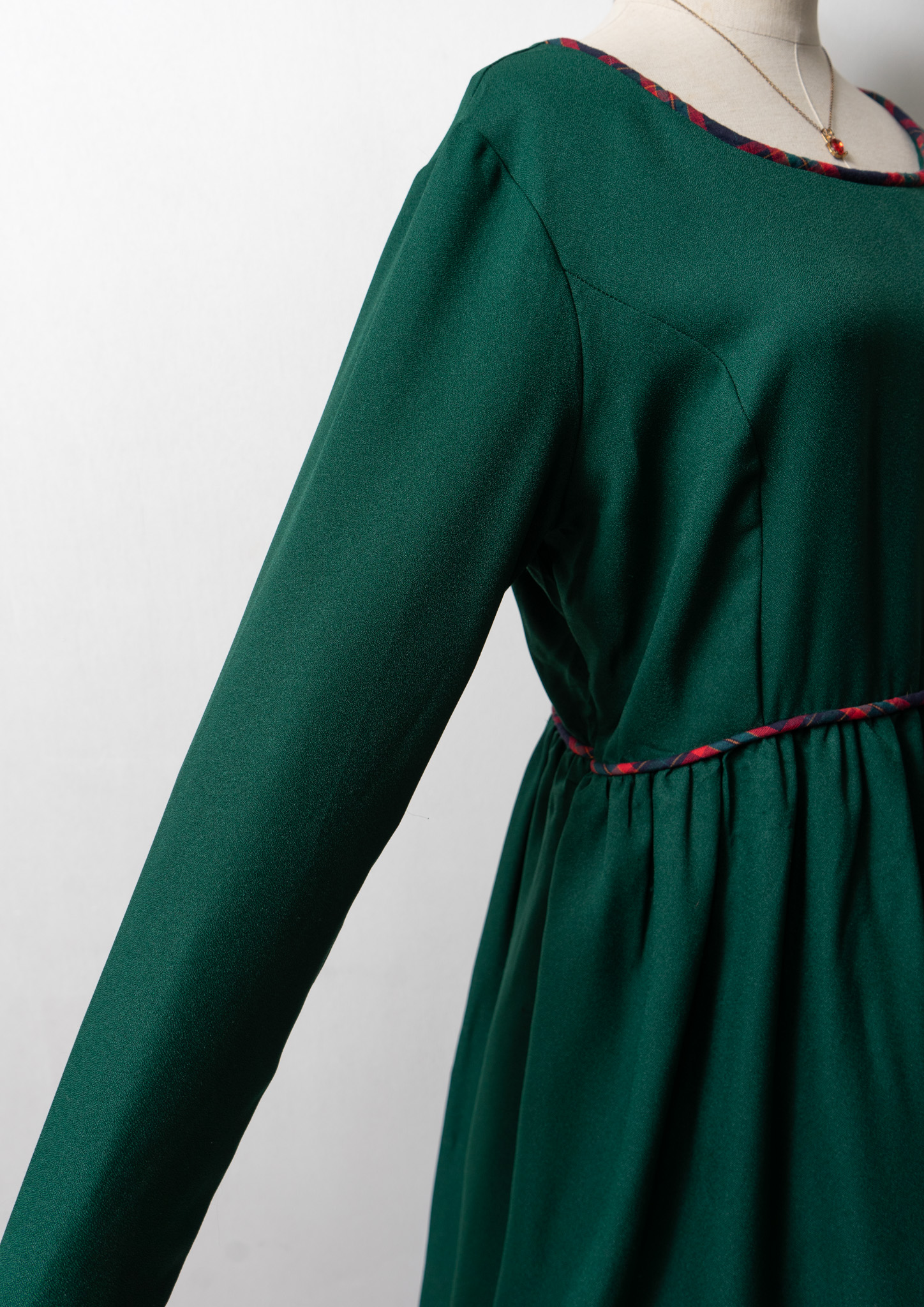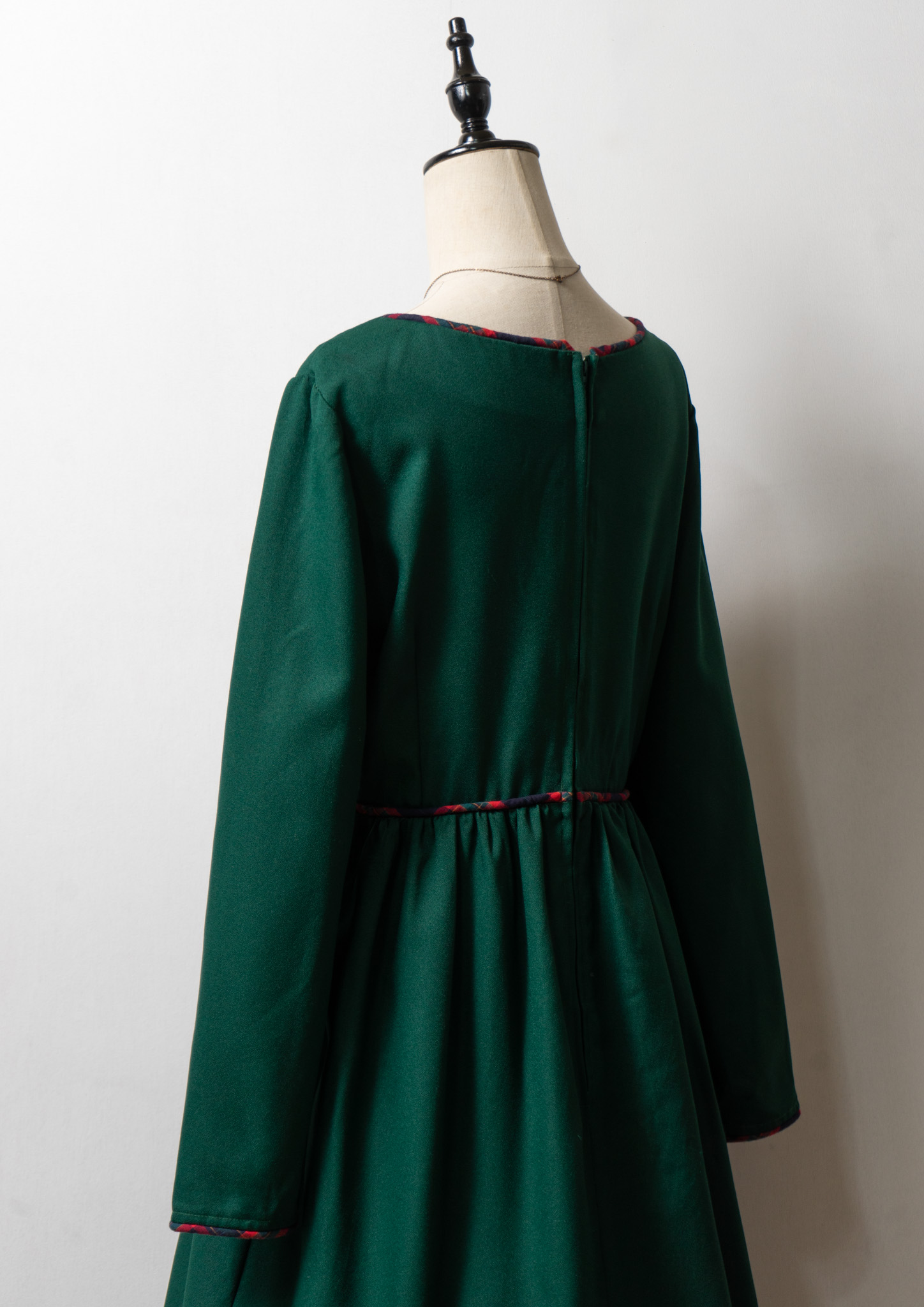 80~90's Check Pattern Piping Green Dress