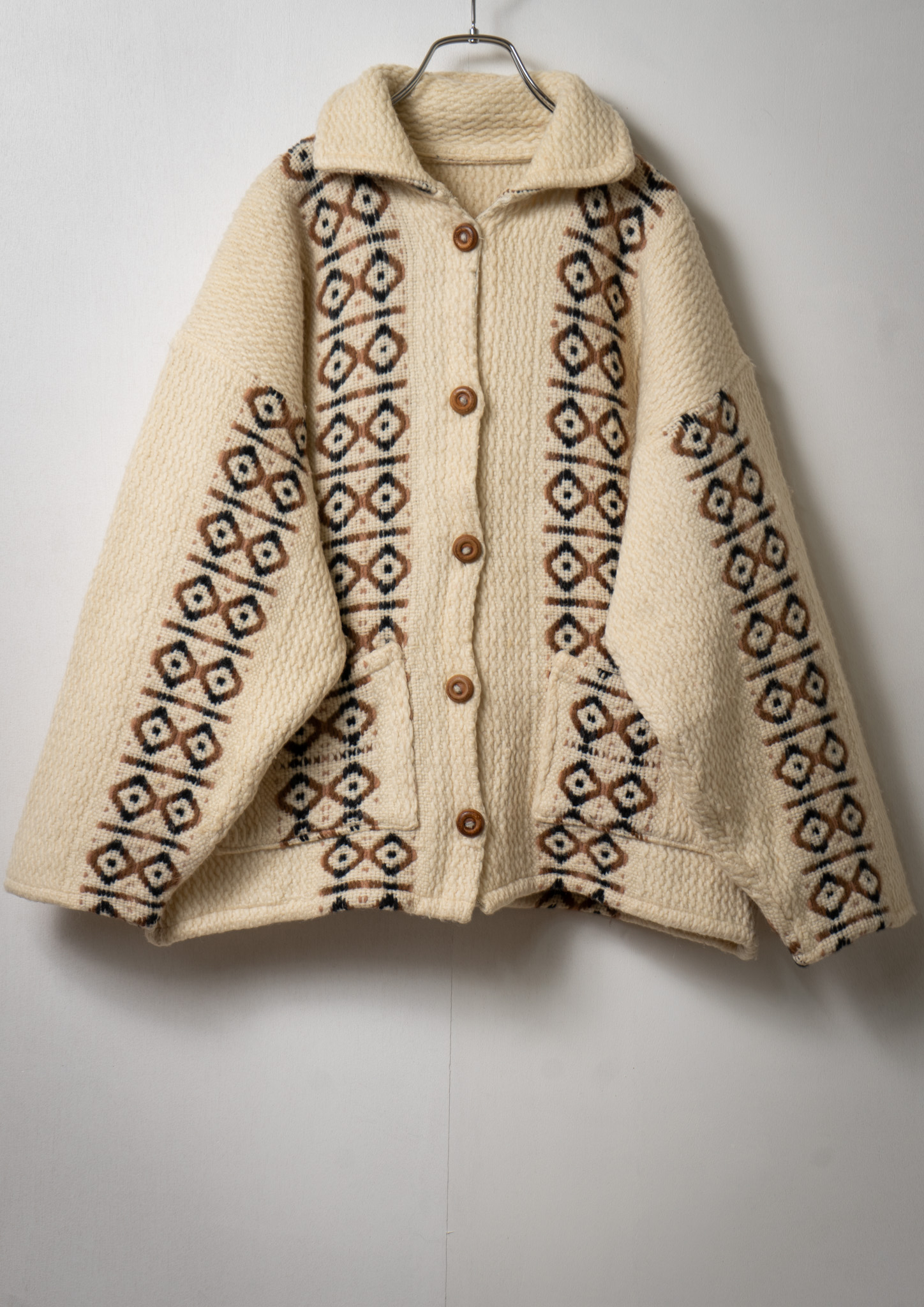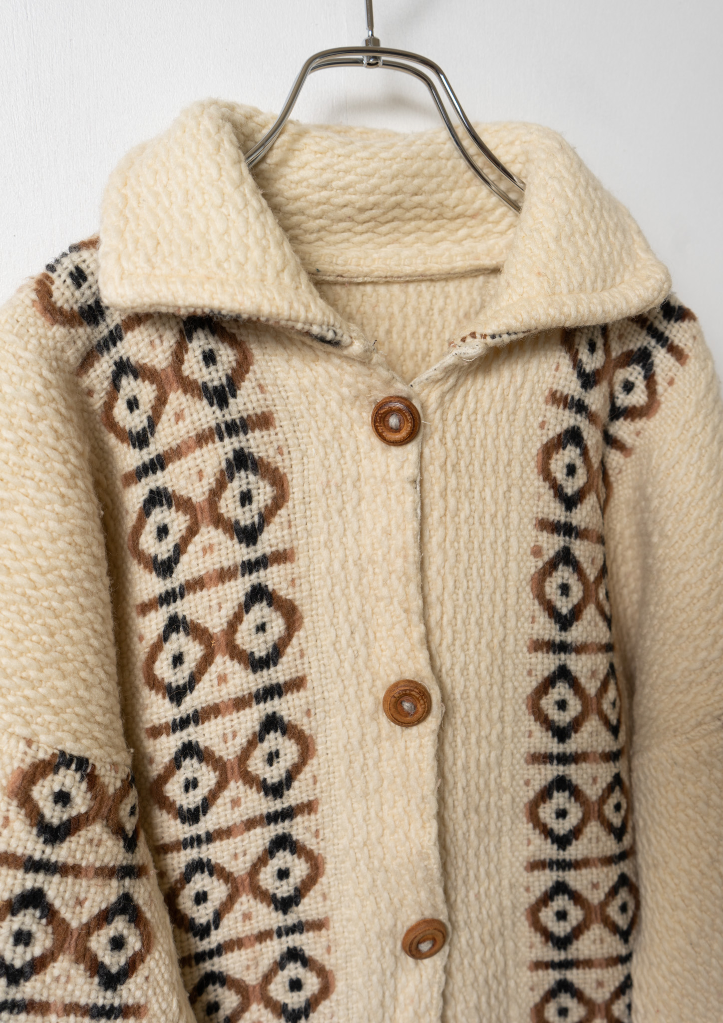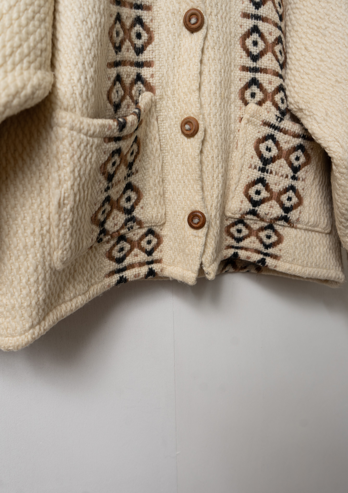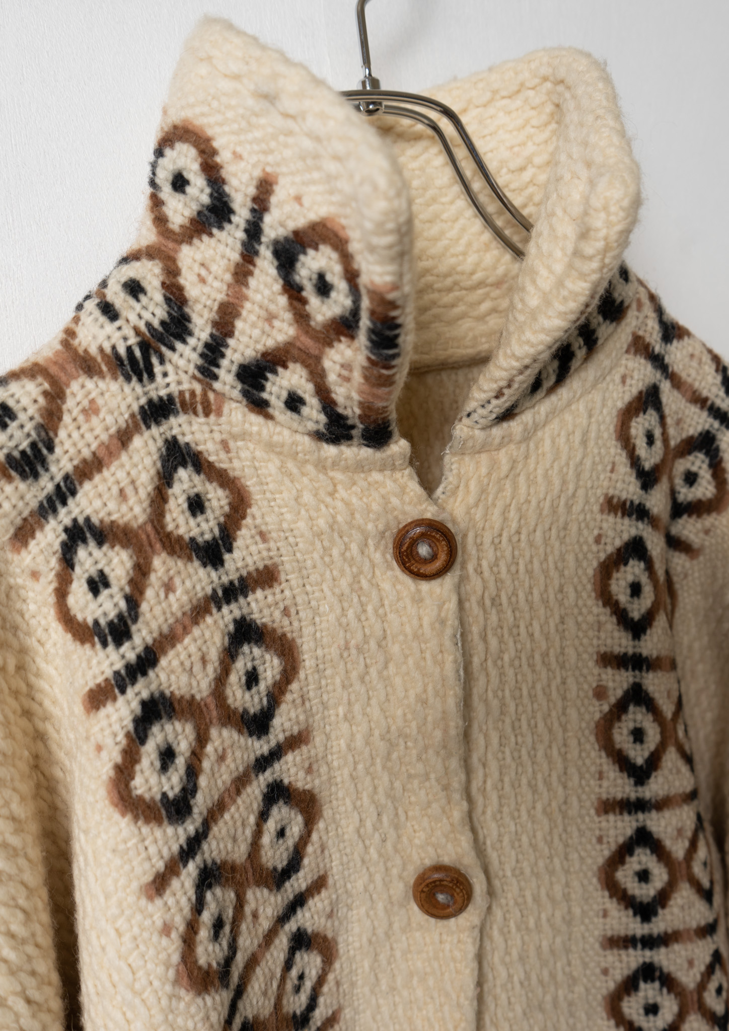 80's Nordic Pattern Ivory Knit Cardigan