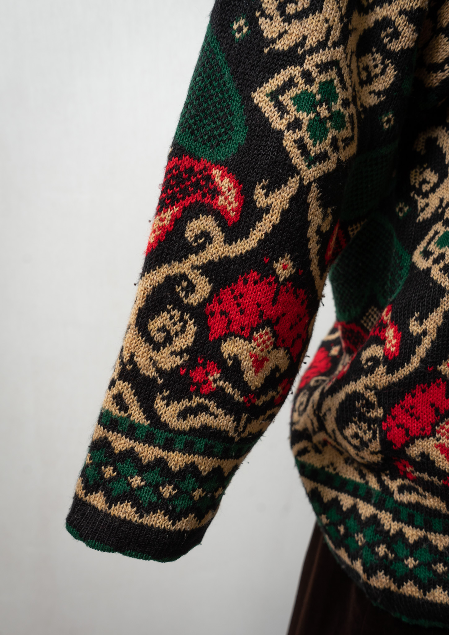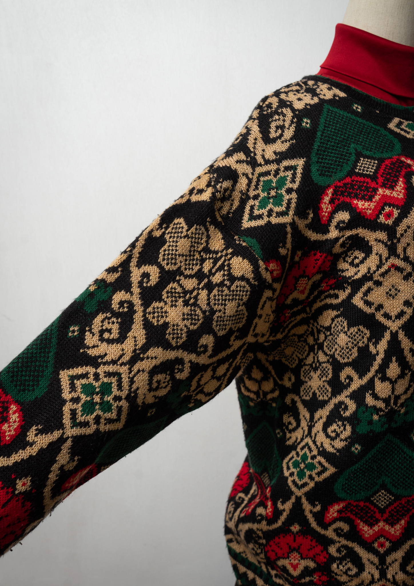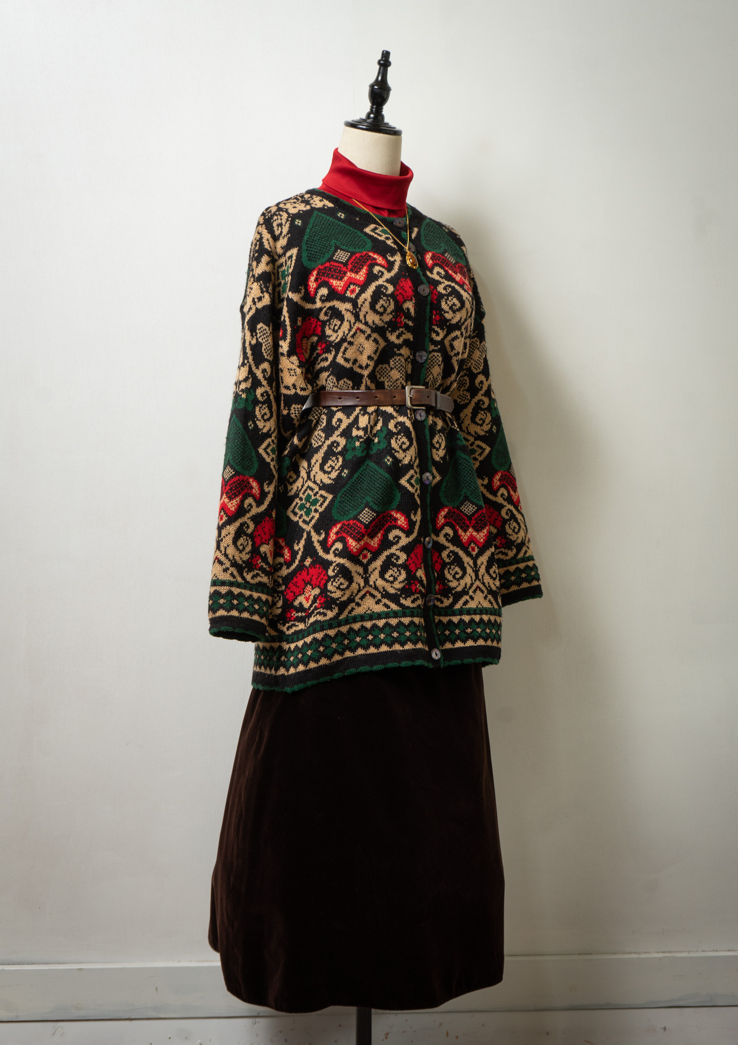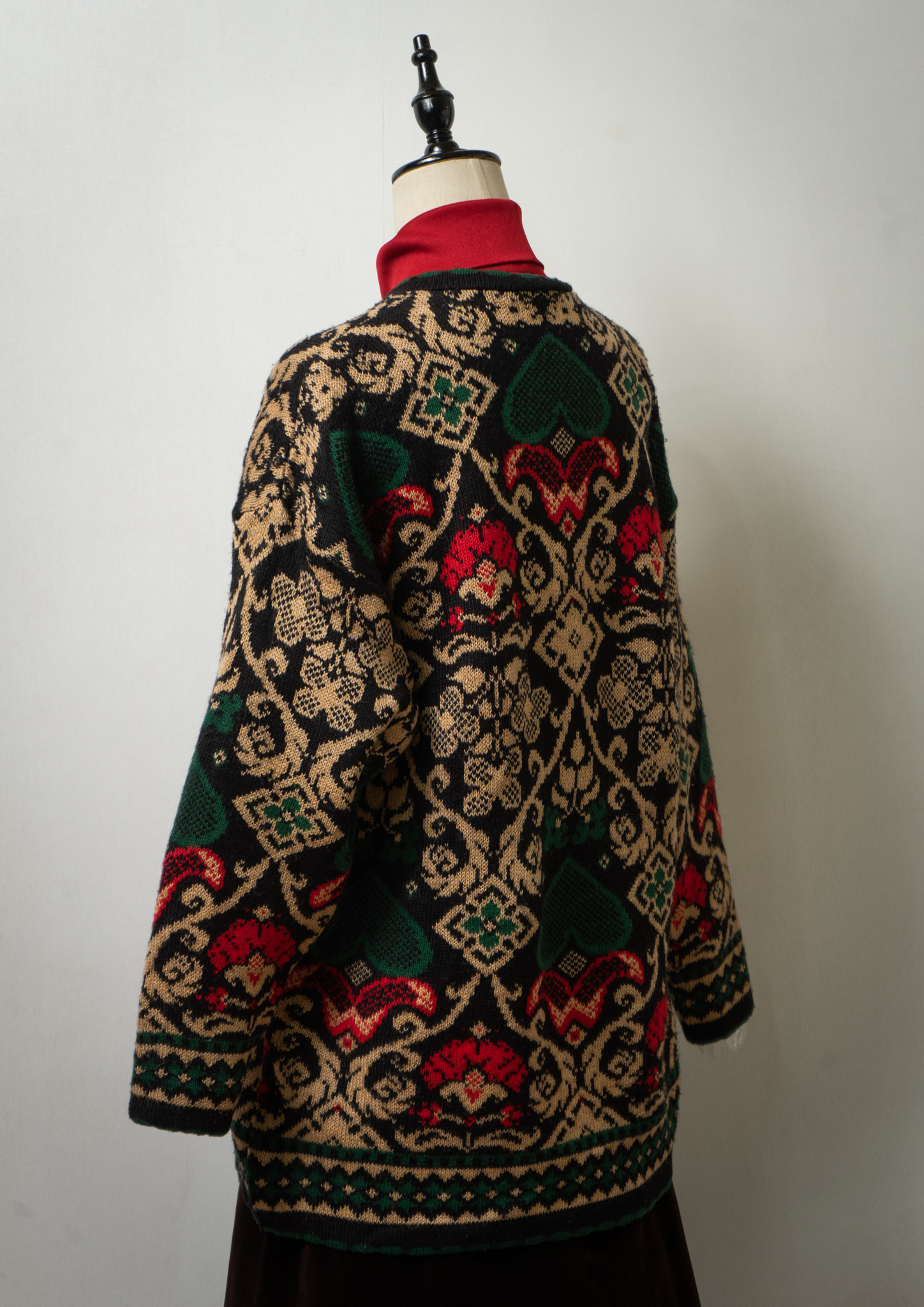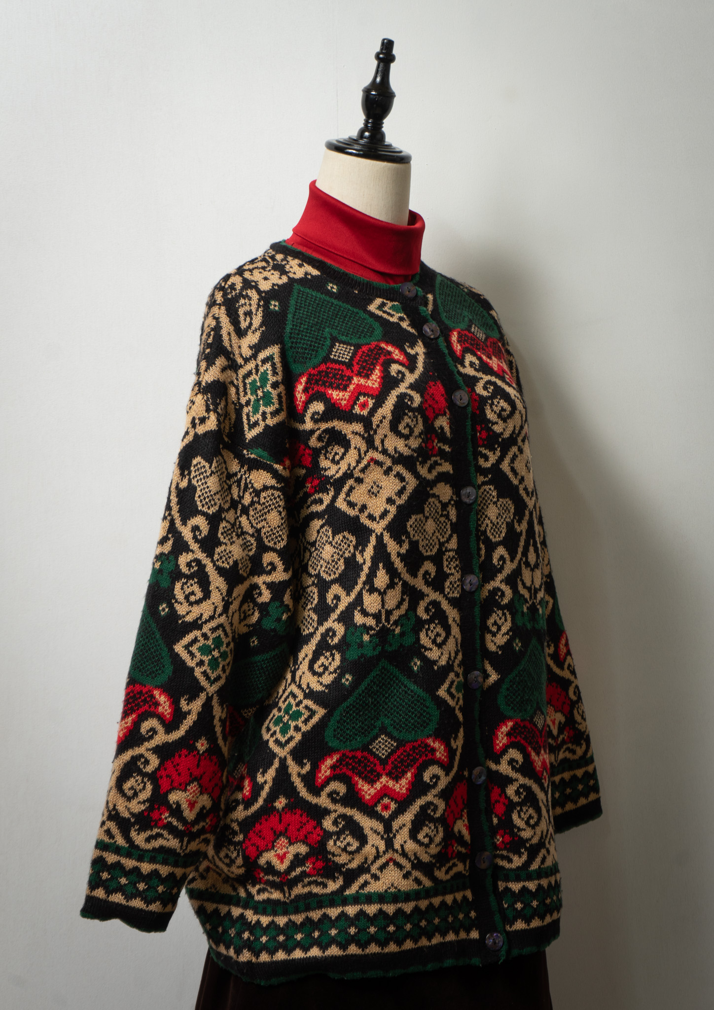 80~90's England Heart Damask Pattern Black Knit Cardigan