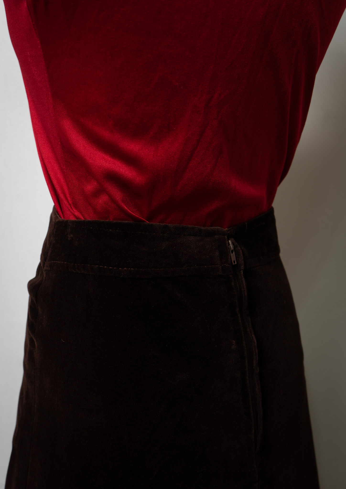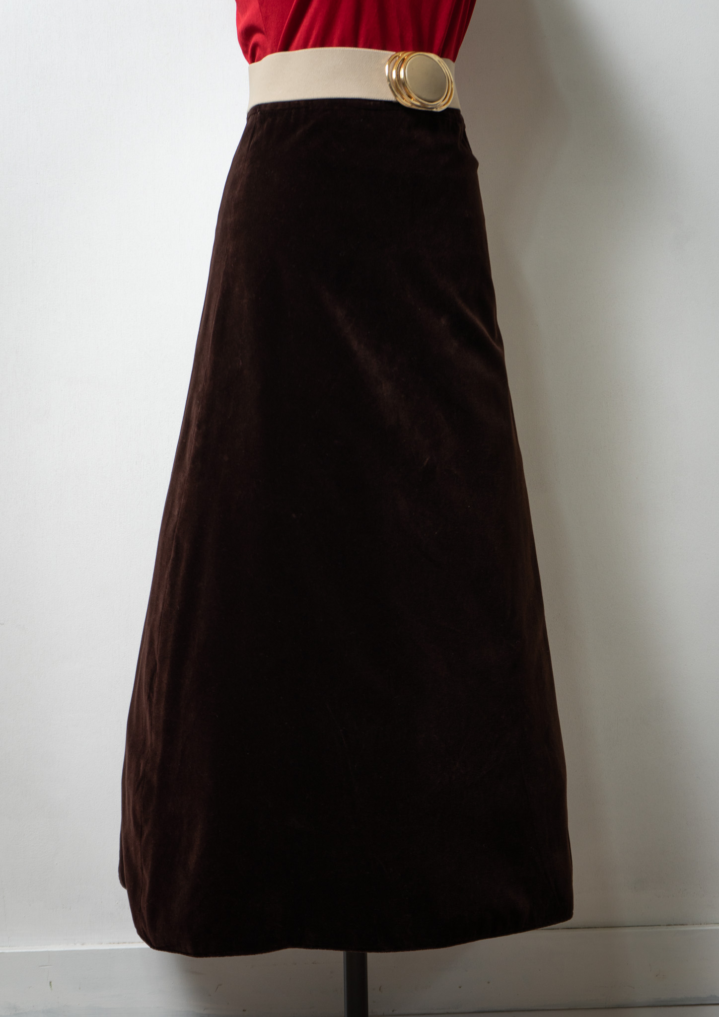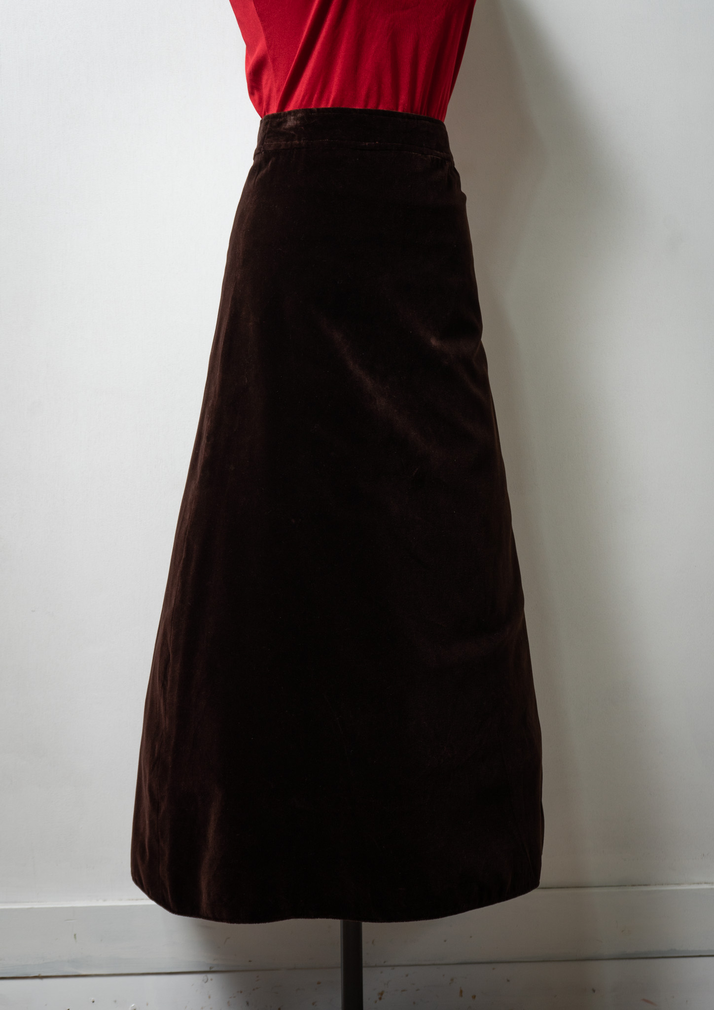 70's Velvet Long Brown Skirt