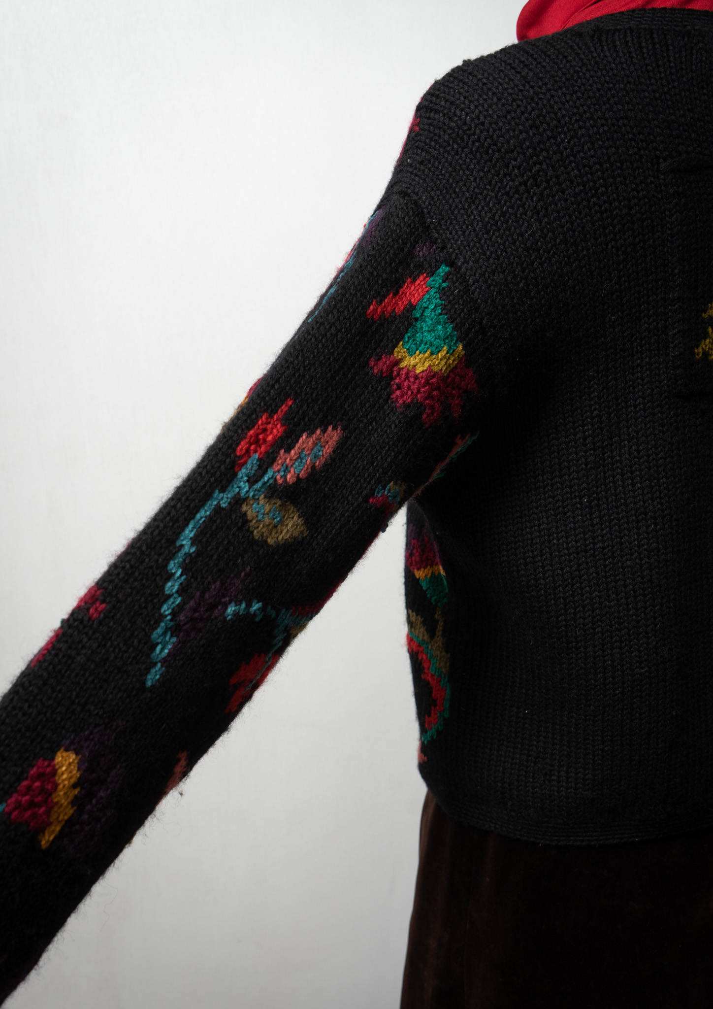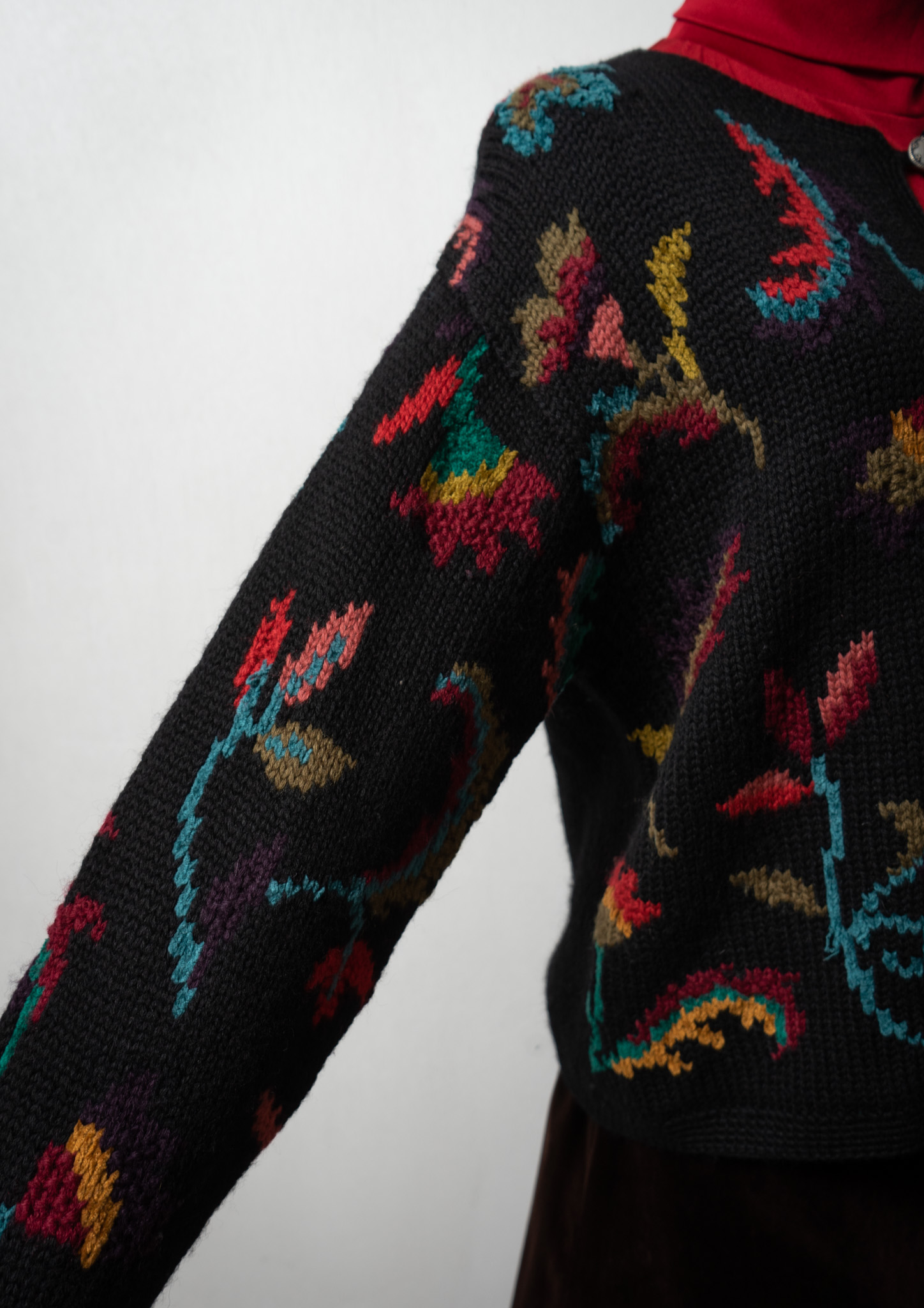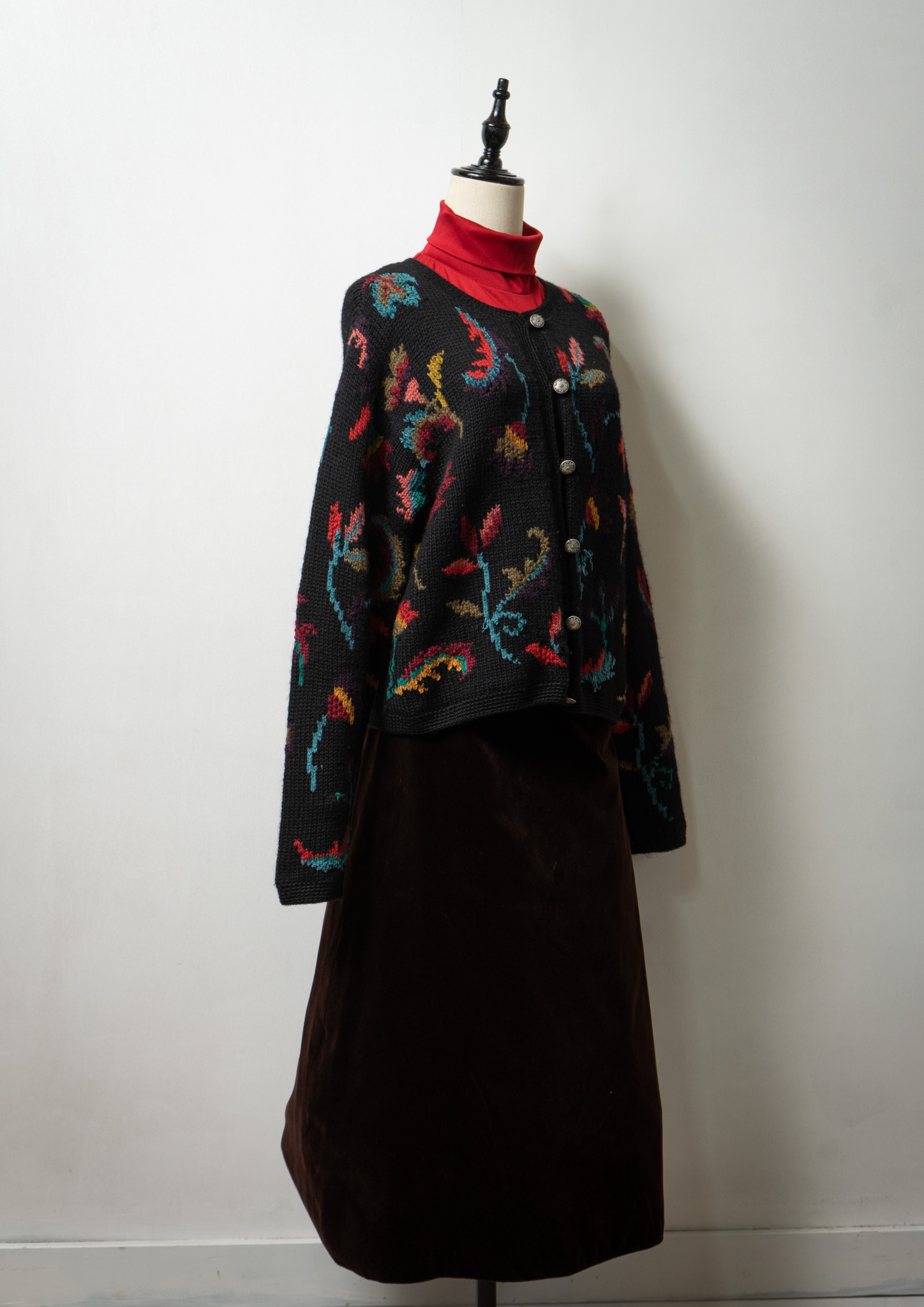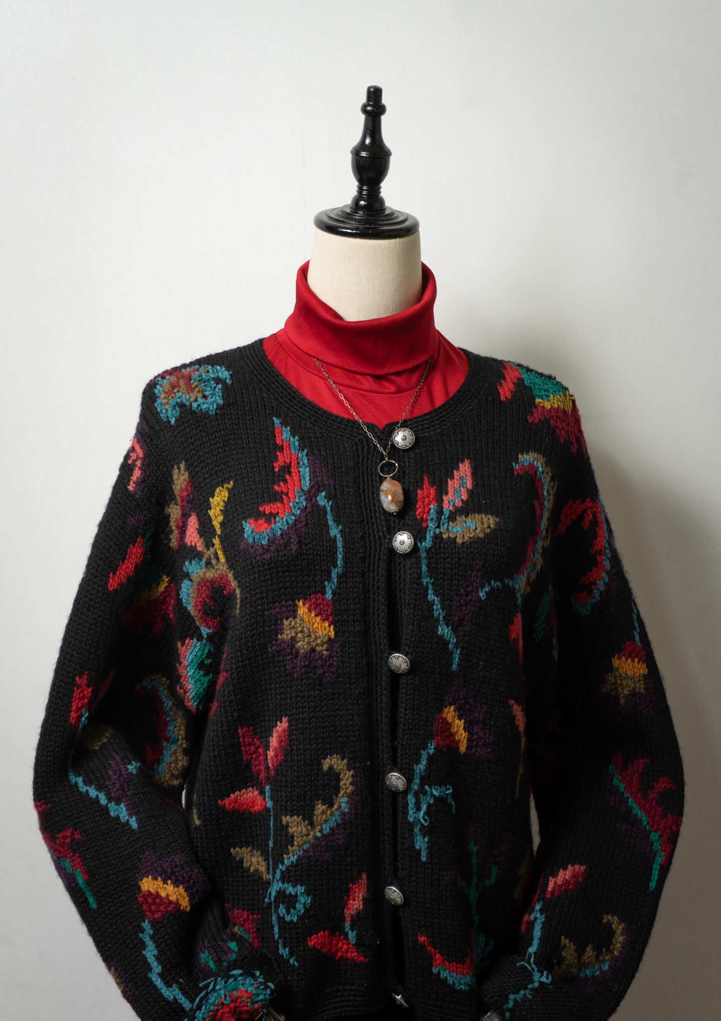 90's Botanical Pattern Black Knit Cardigan