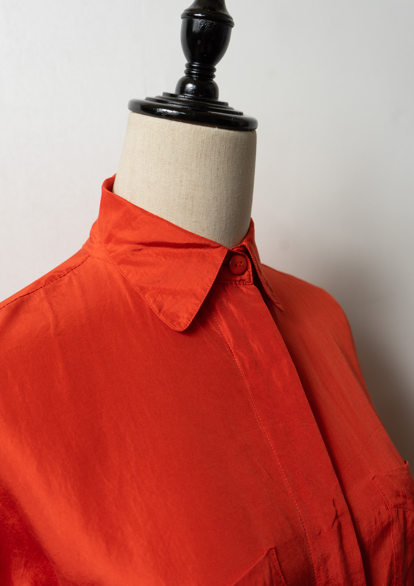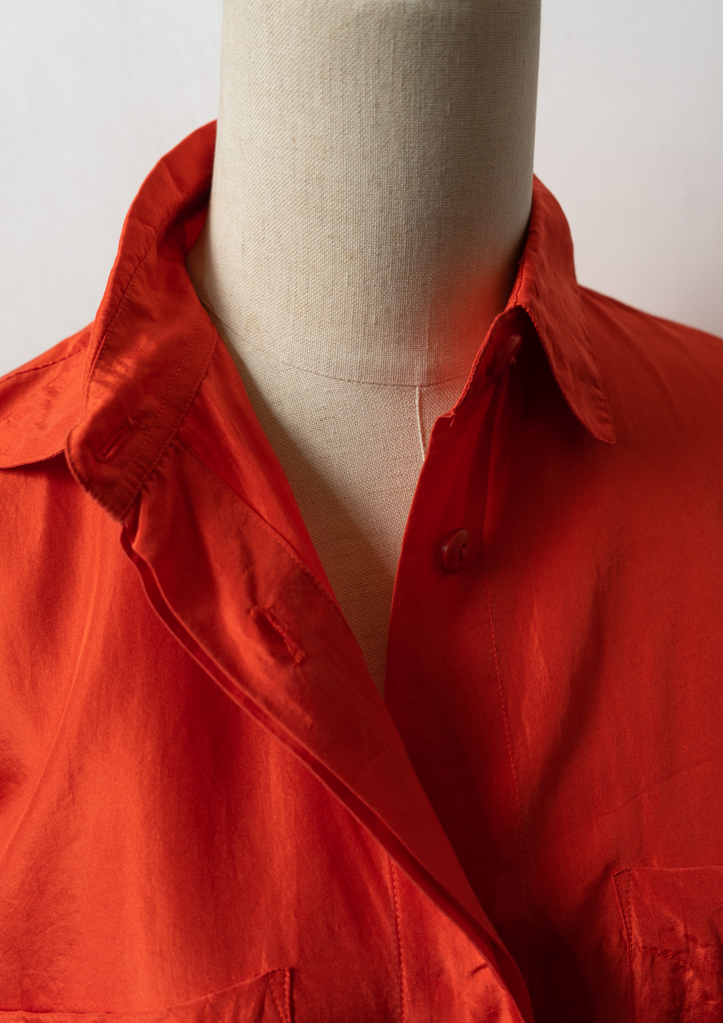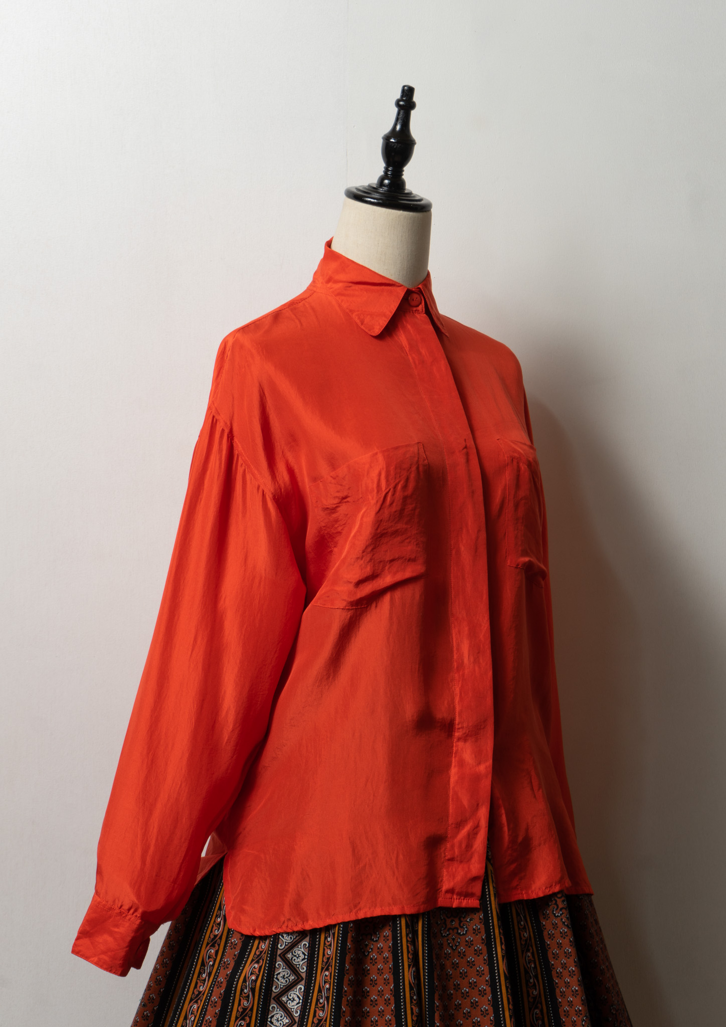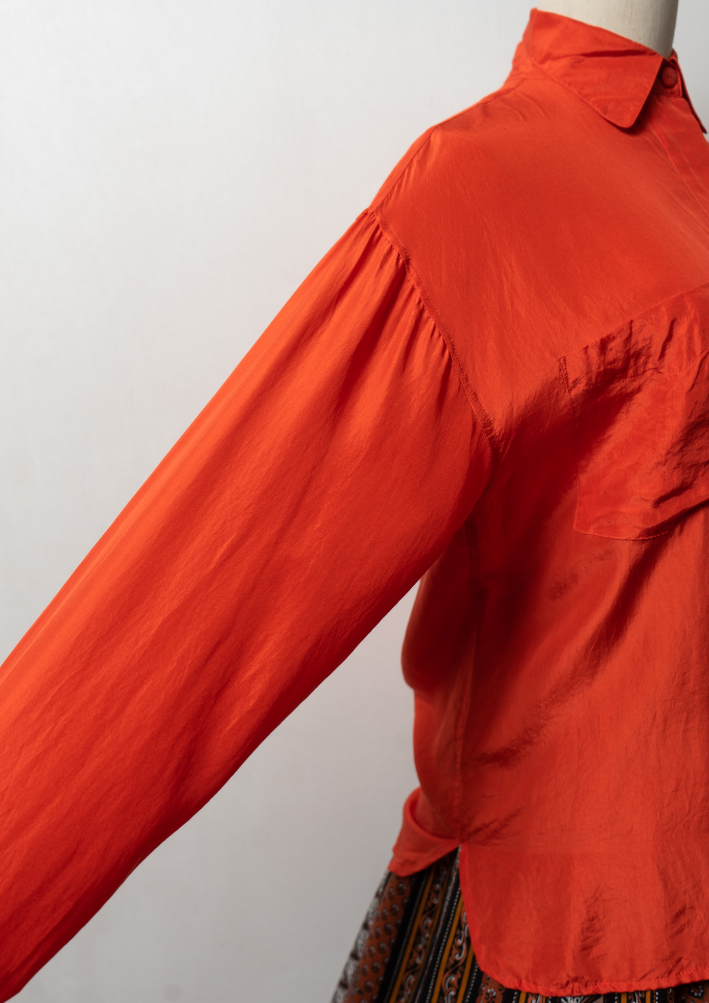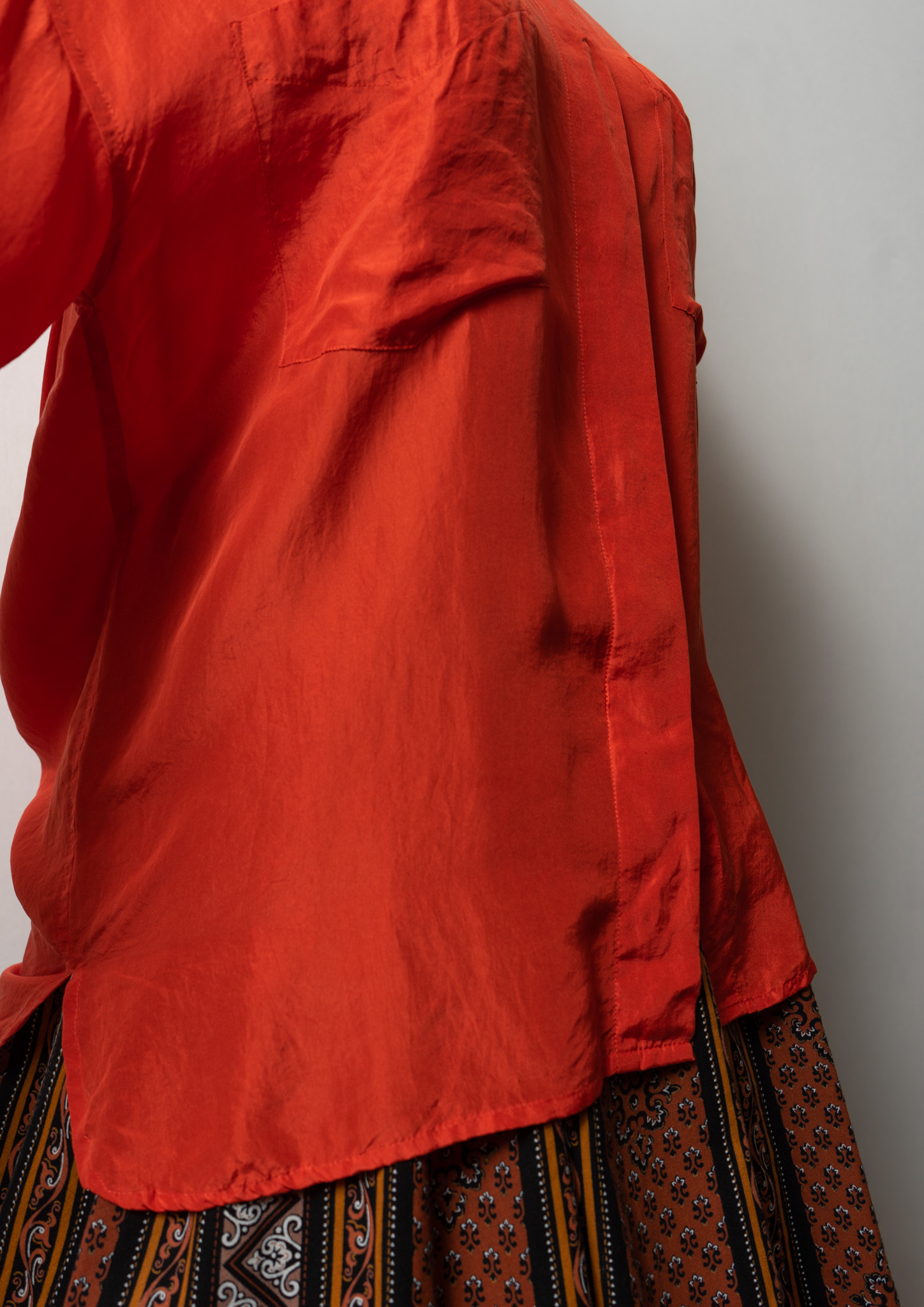 Double Pocket Design Orange Silk Blouse