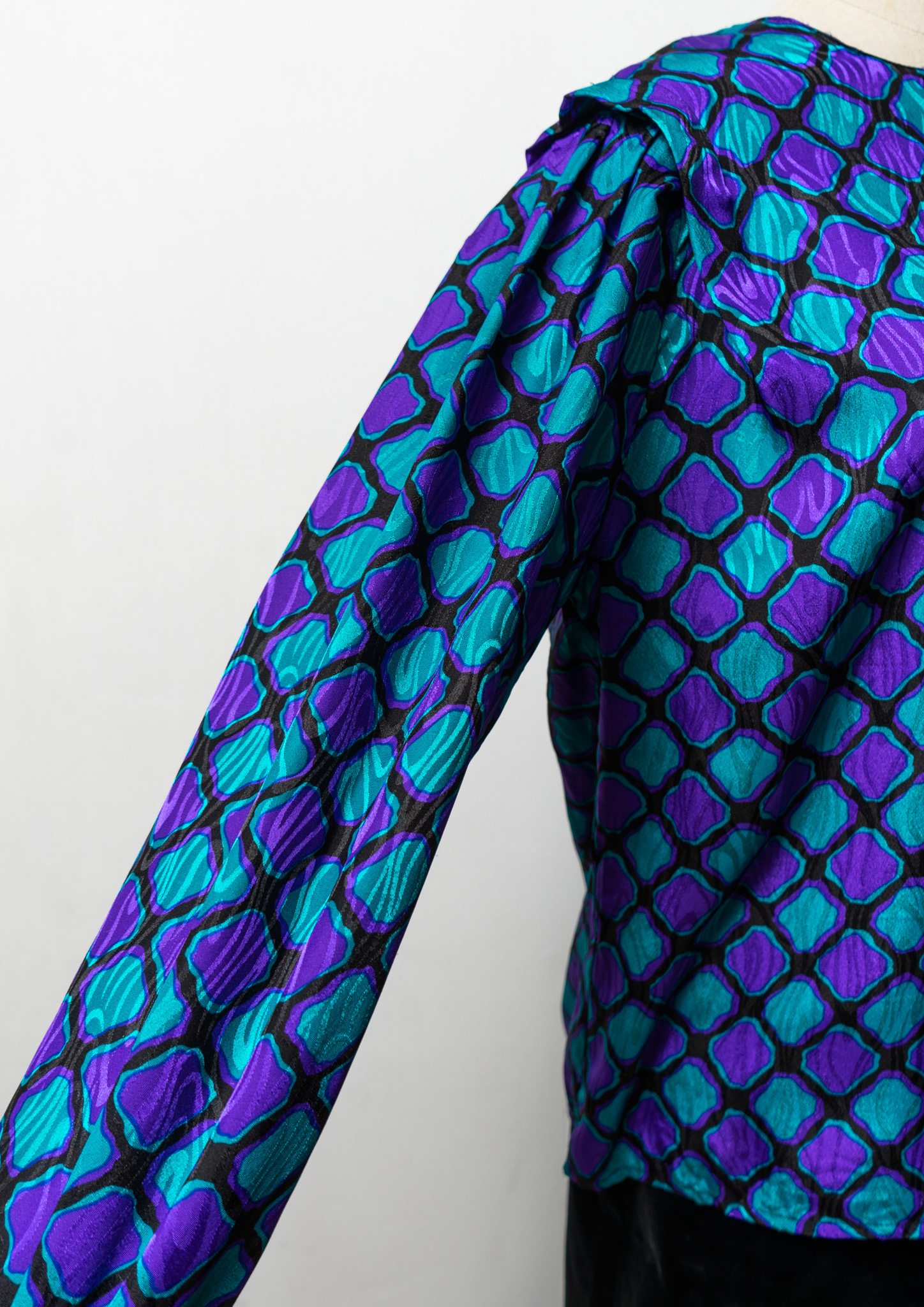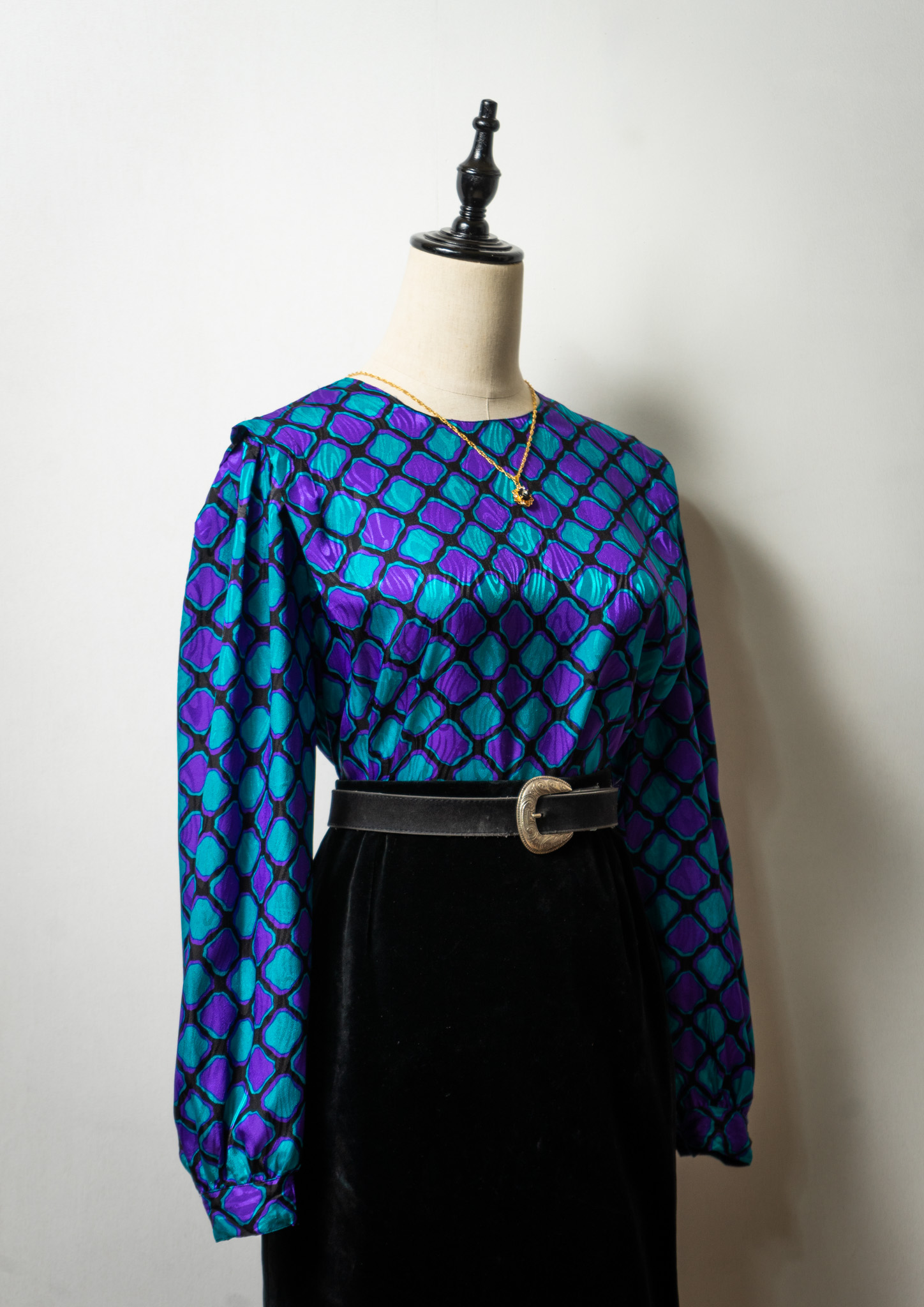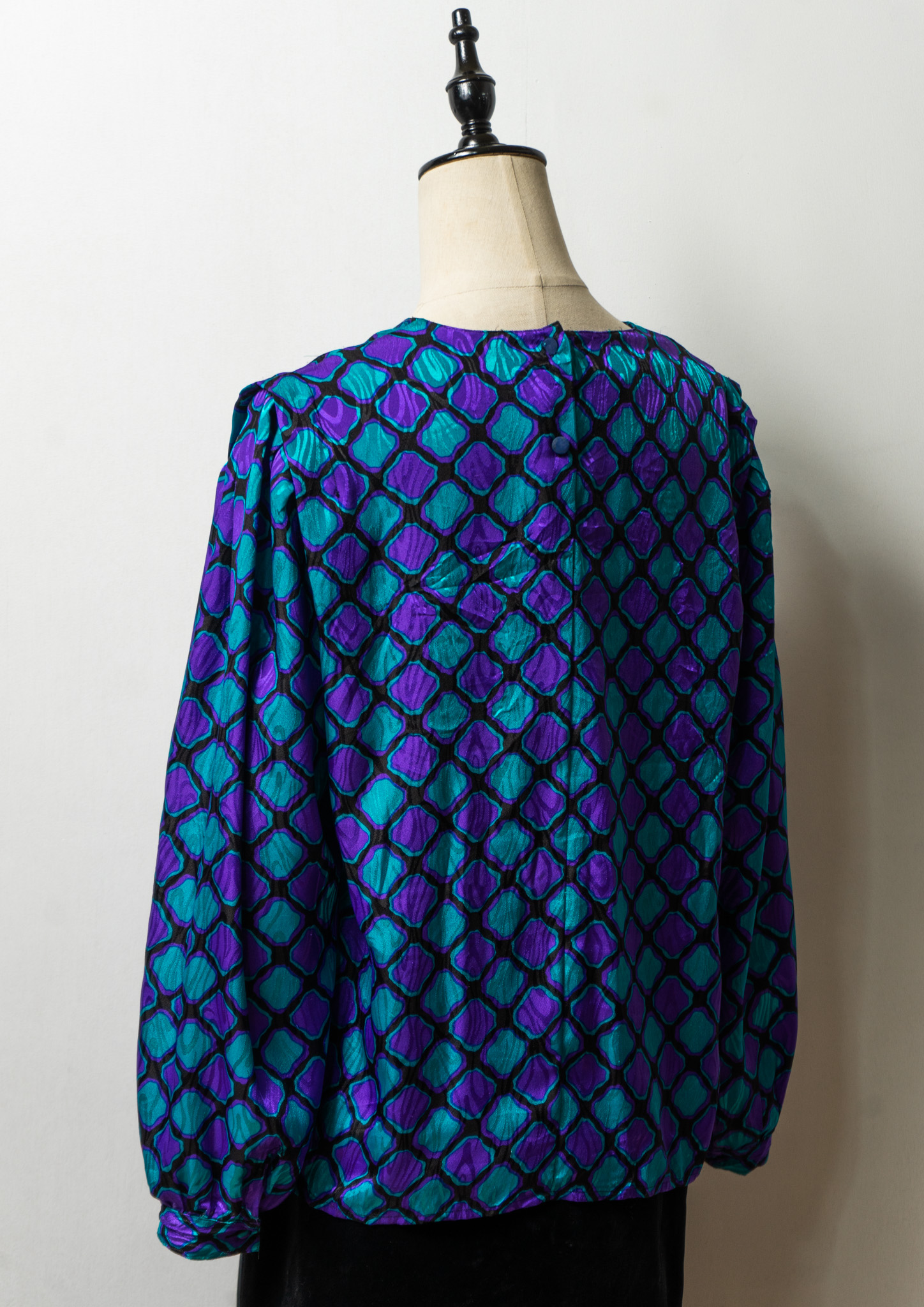 Turquoise × Purple Mosaic Like Pattern Blouse