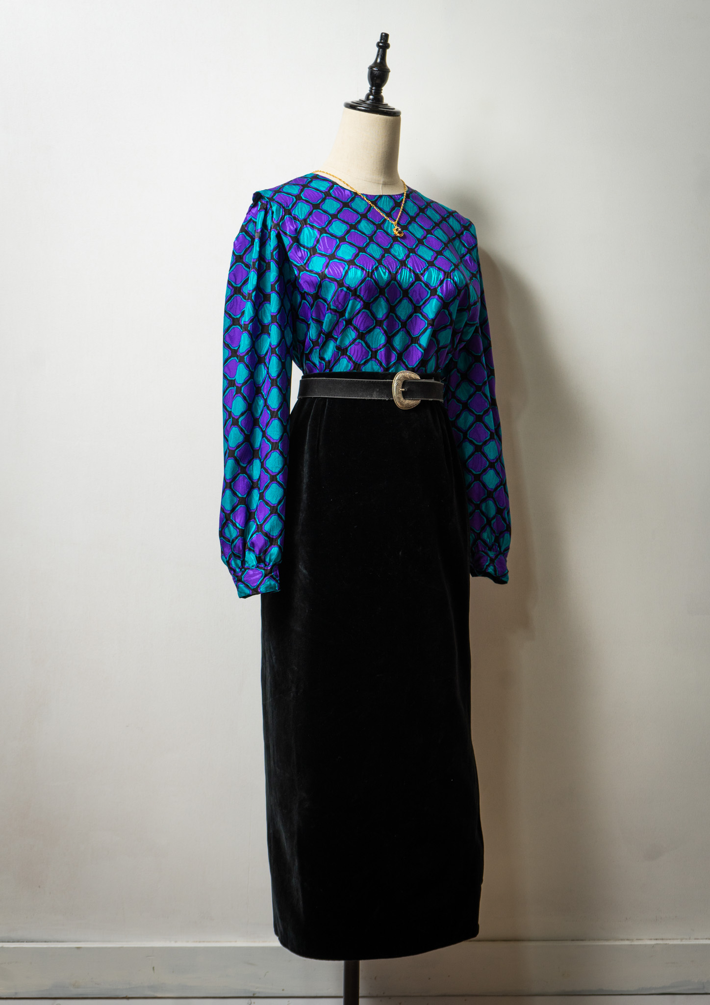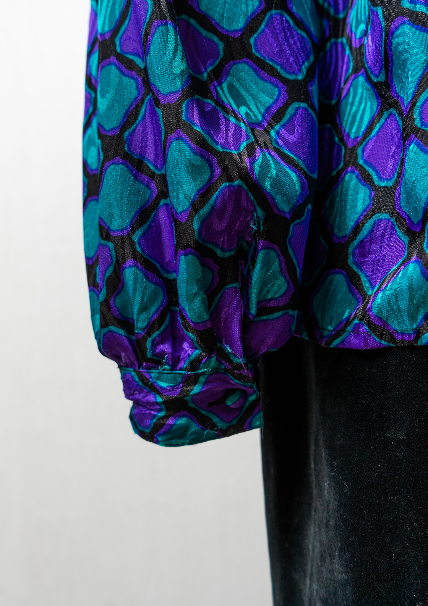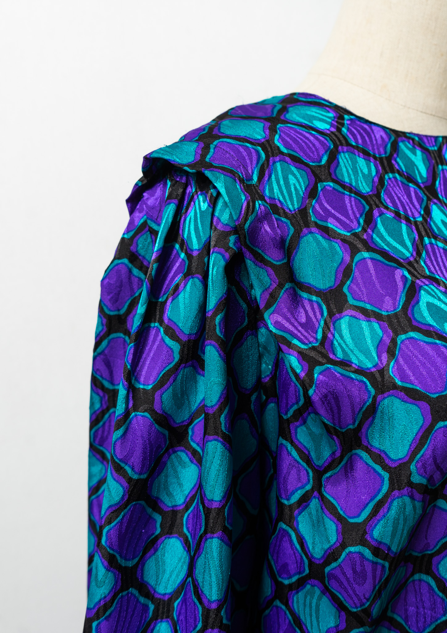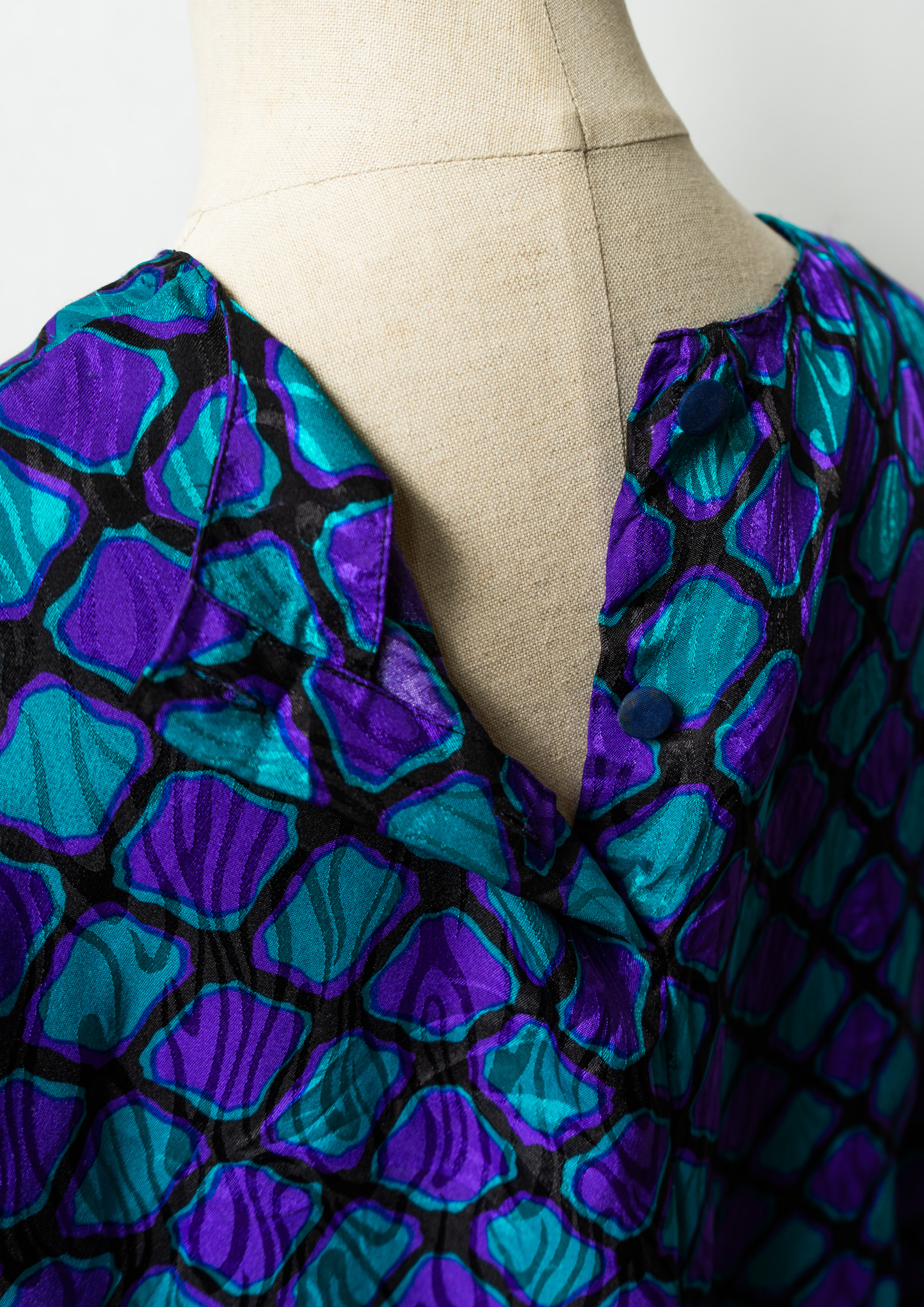 Turquoise × Purple Mosaic Like Pattern Blouse