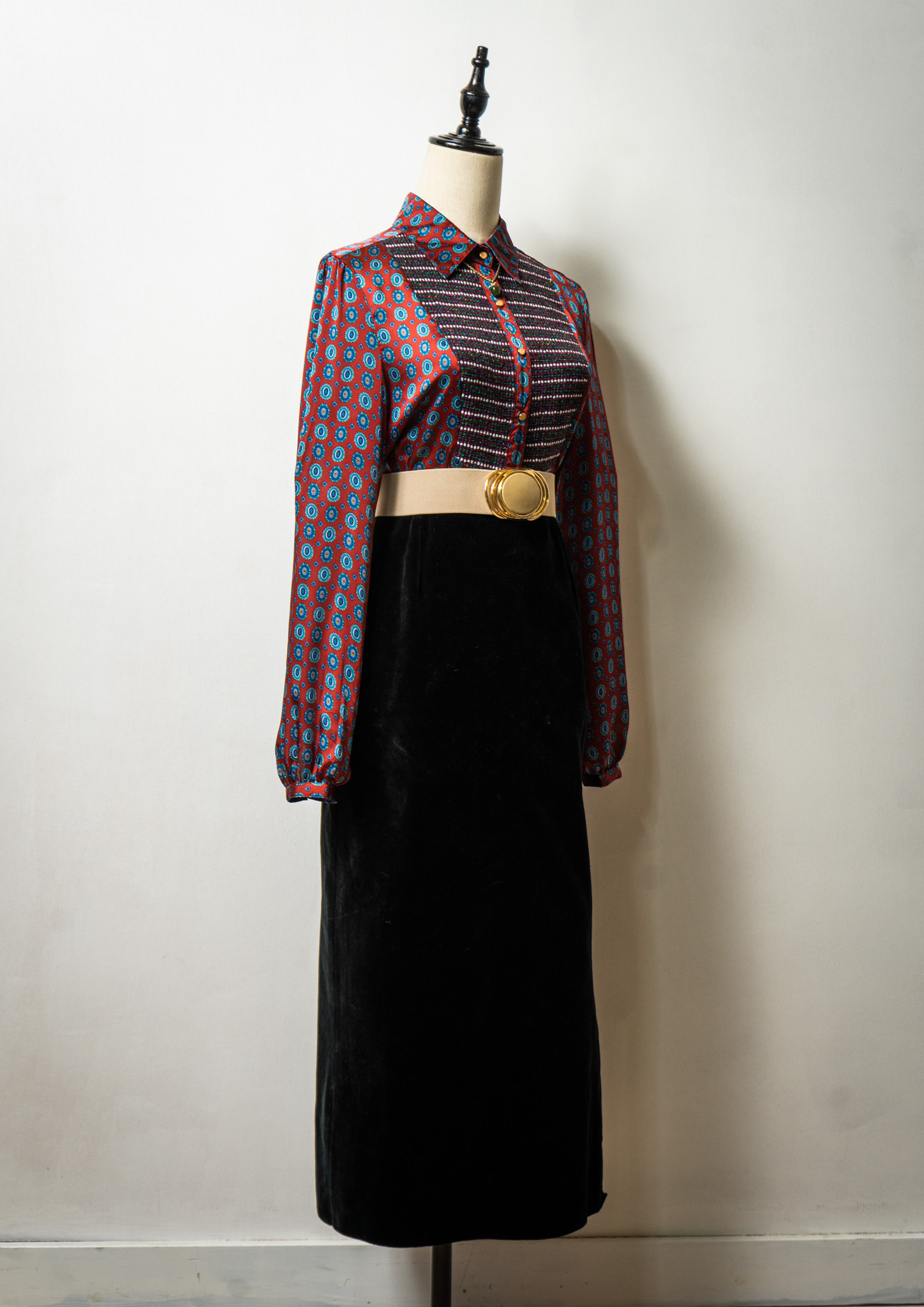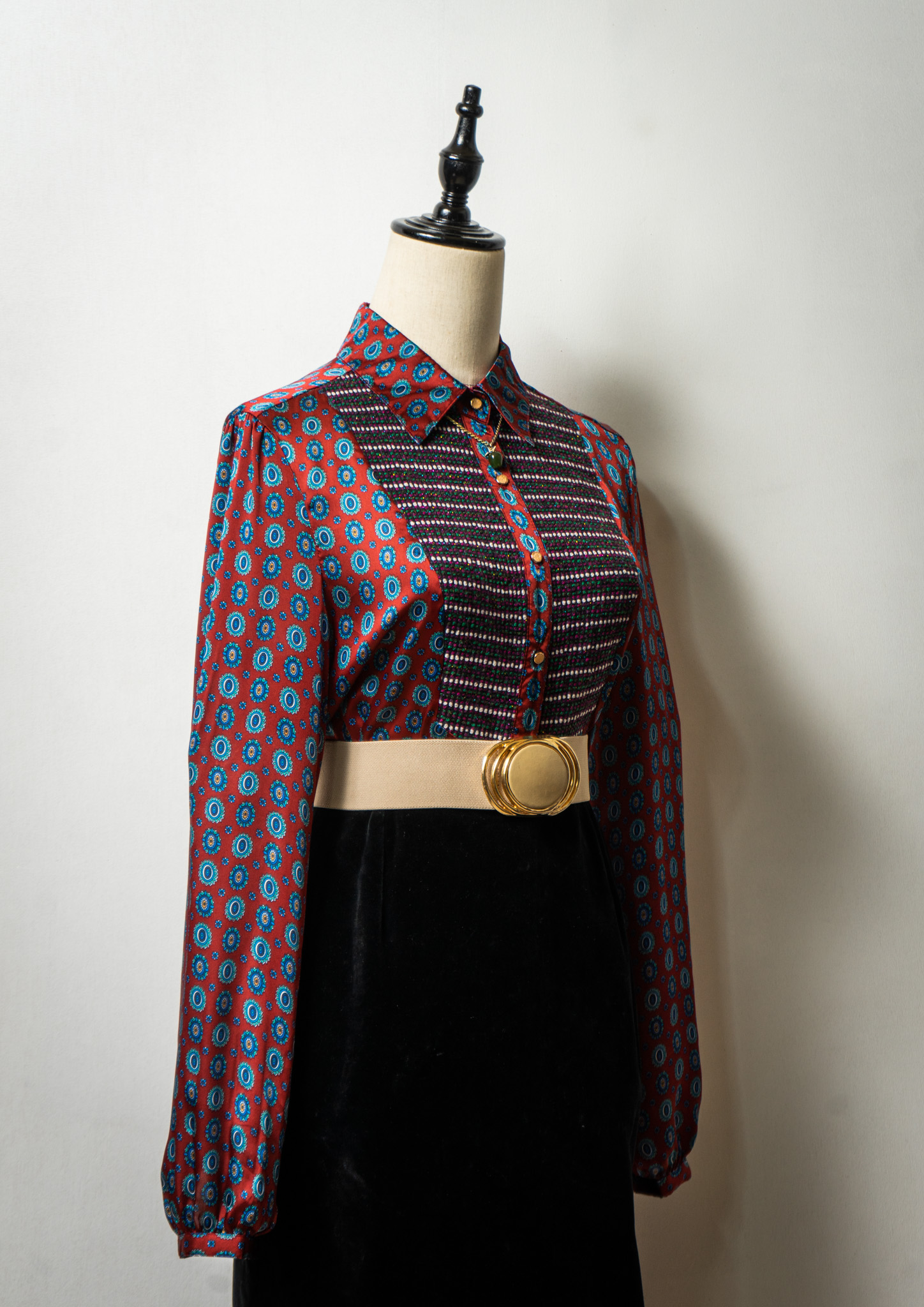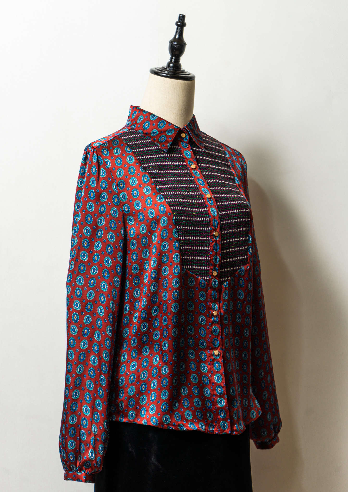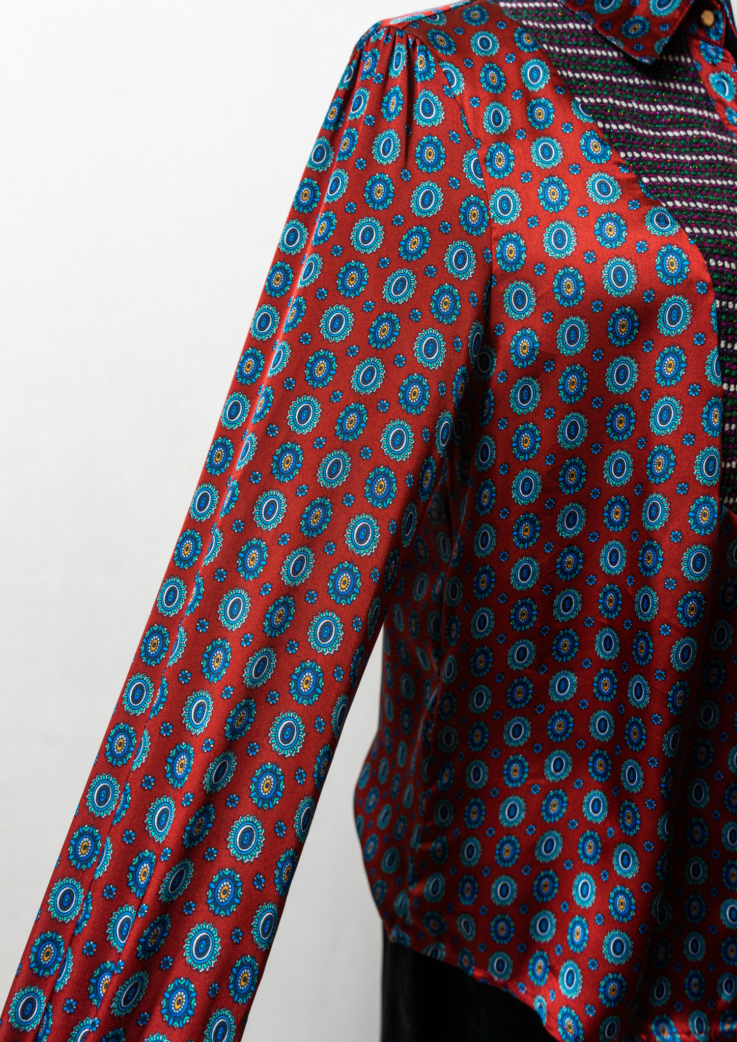 Medallion Like Geometric Pattern Glossy Blouse