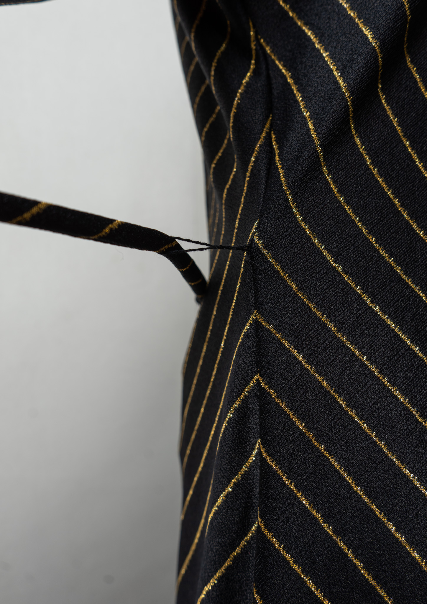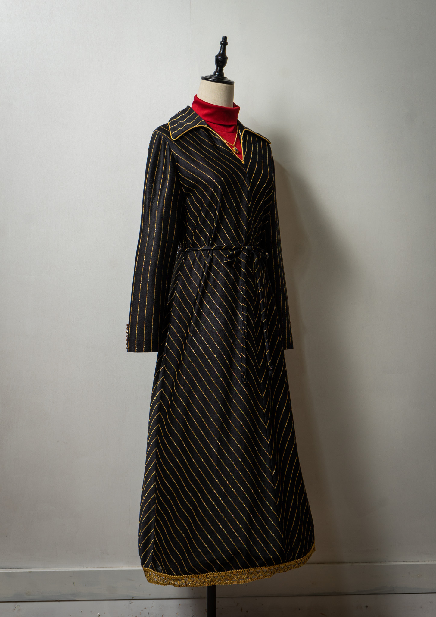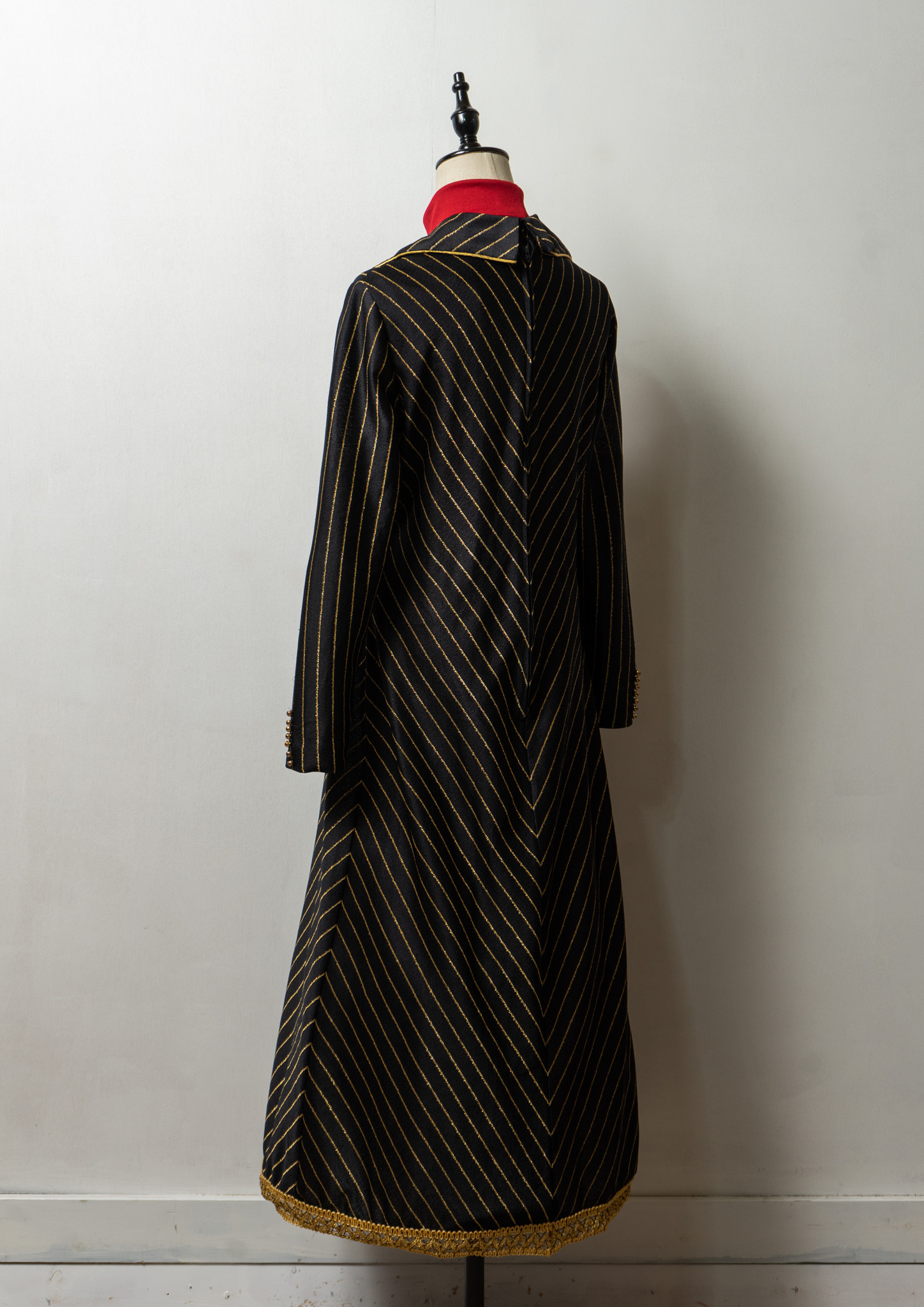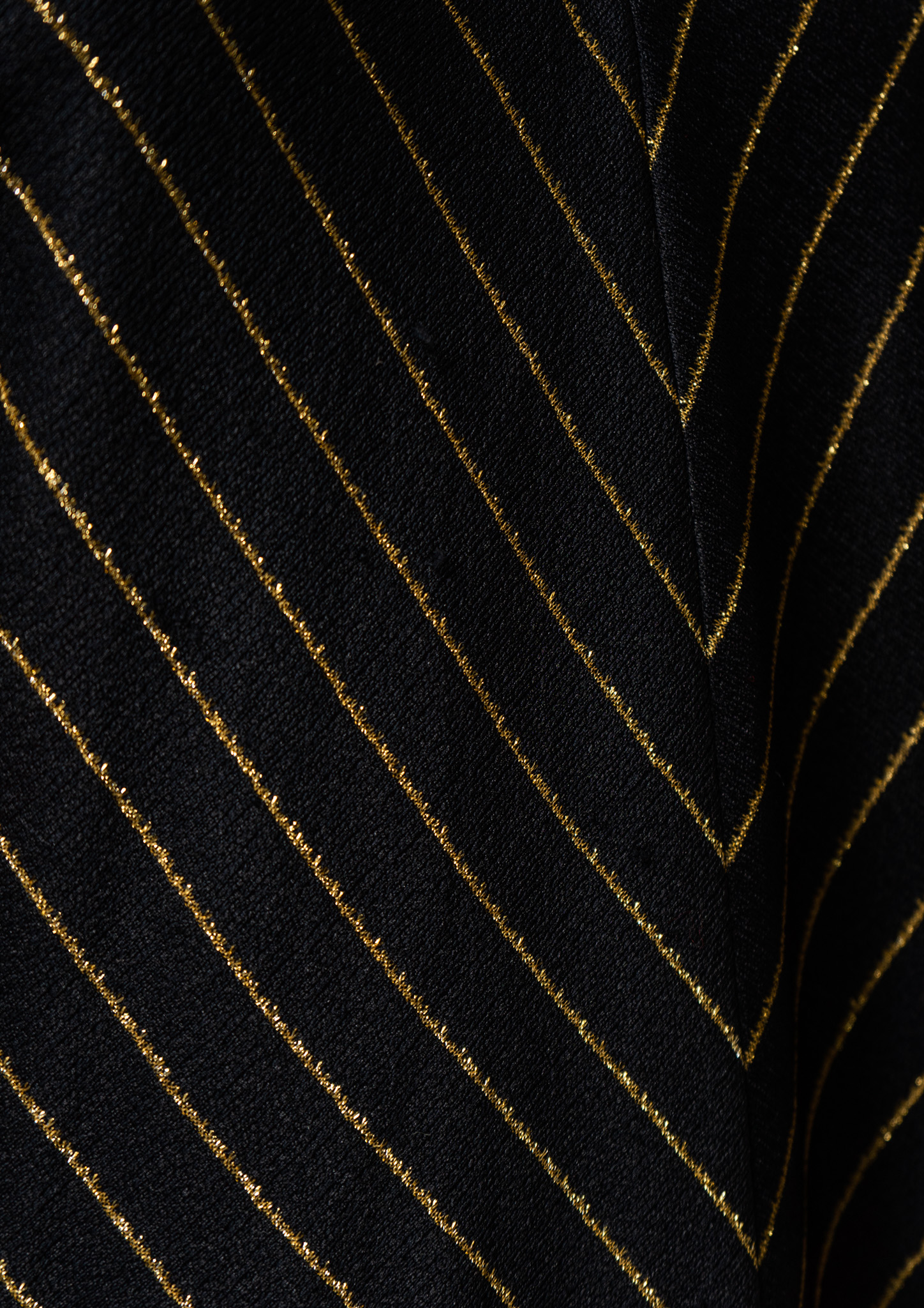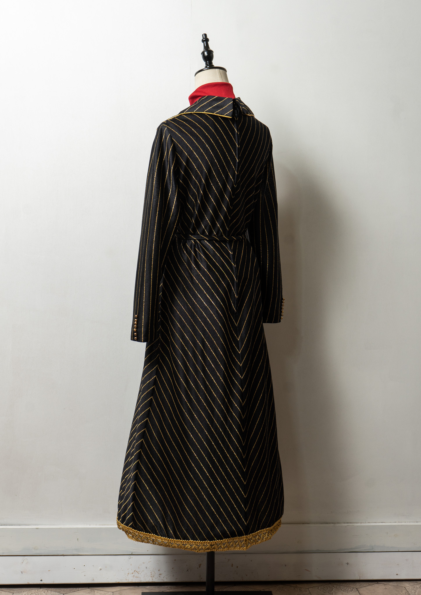 70's Leslie Fay Gold Glitter Stripe Pattern Black Maxi Dress
