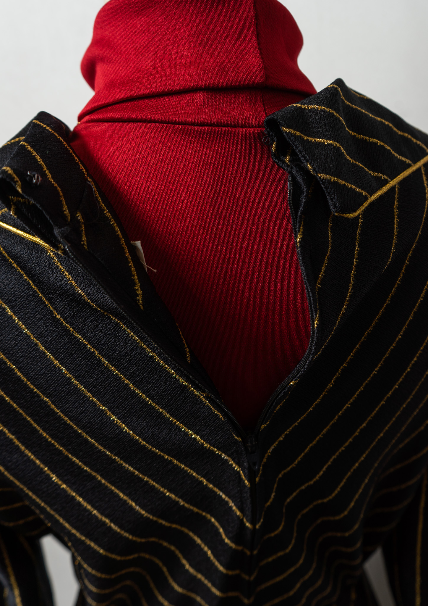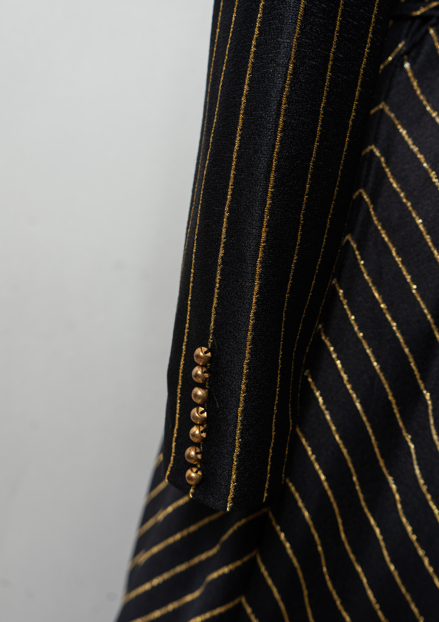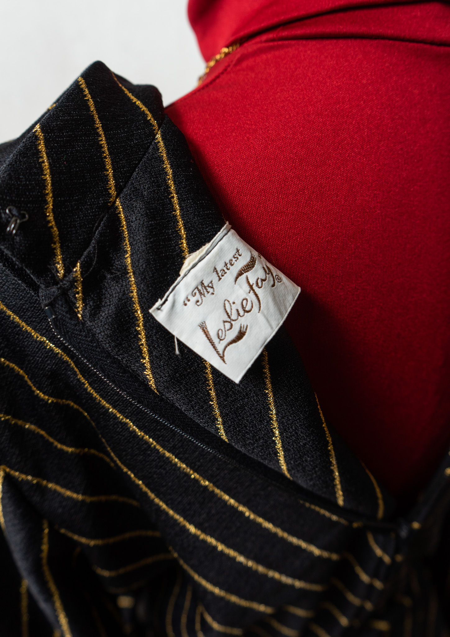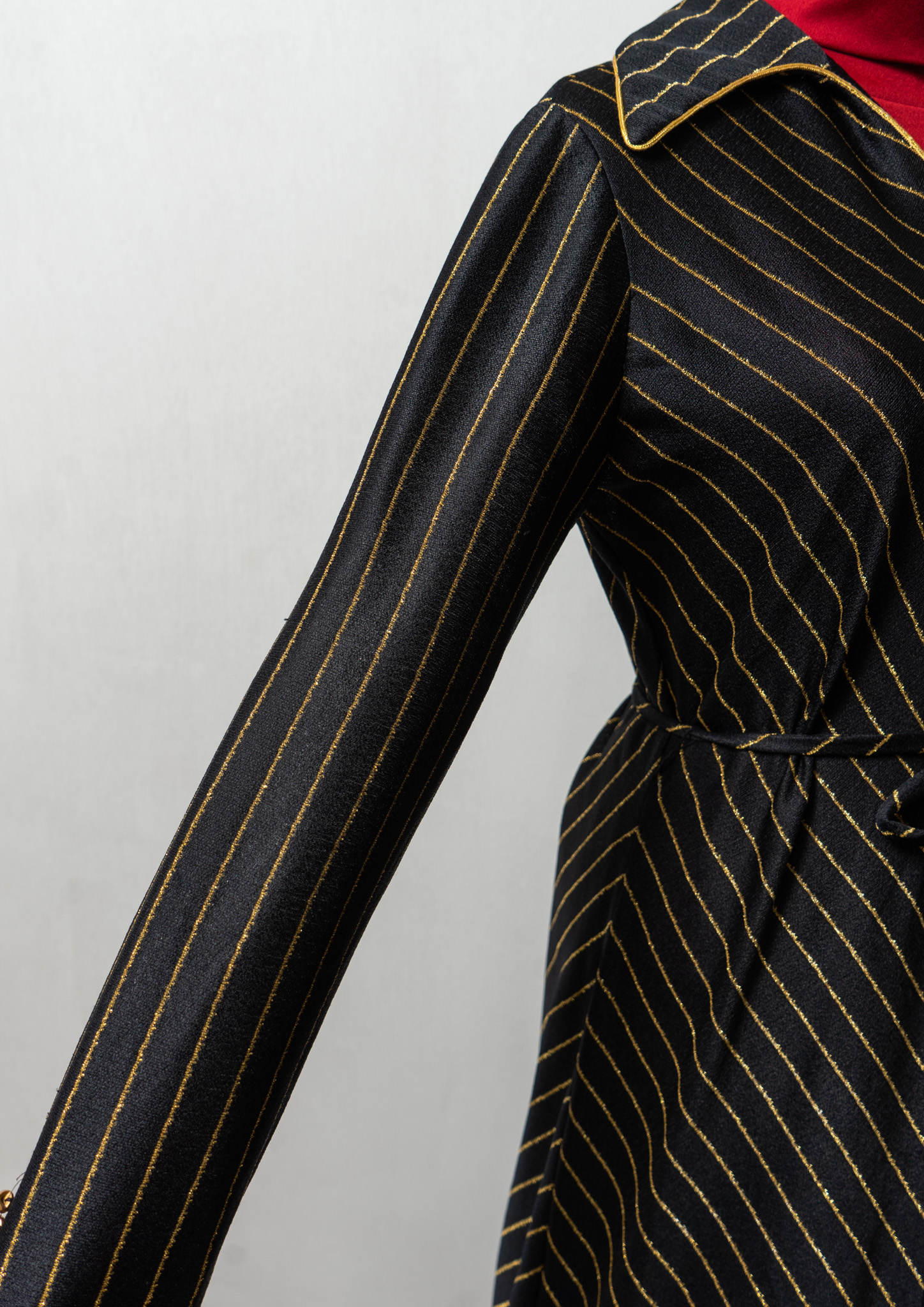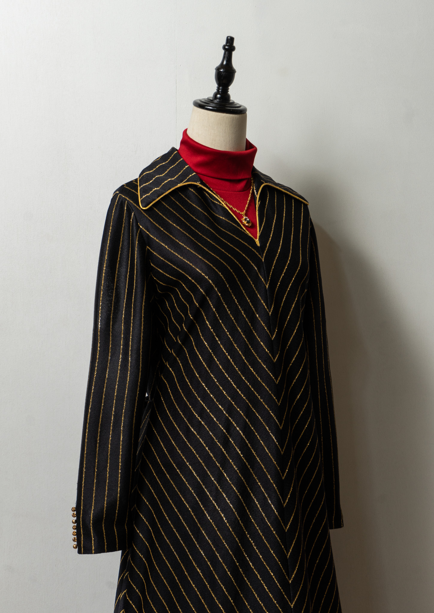 70's Leslie Fay Gold Glitter Stripe Pattern Black Maxi Dress