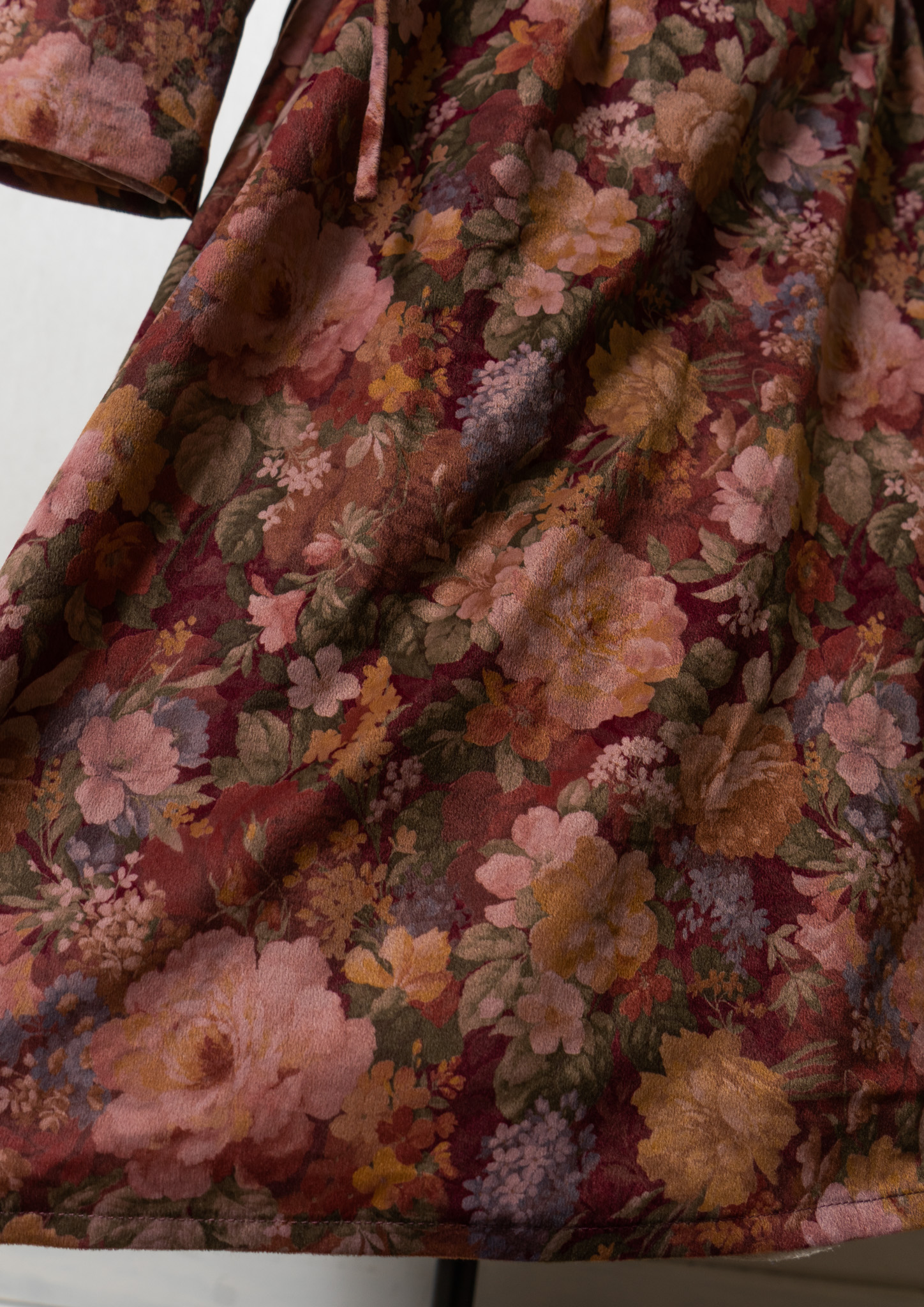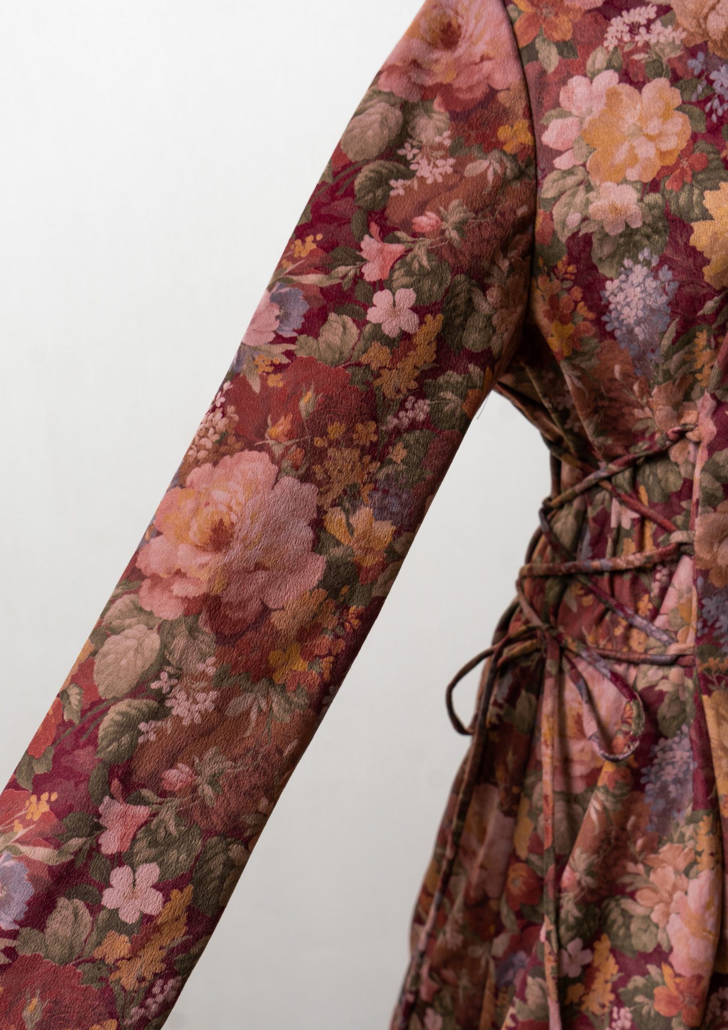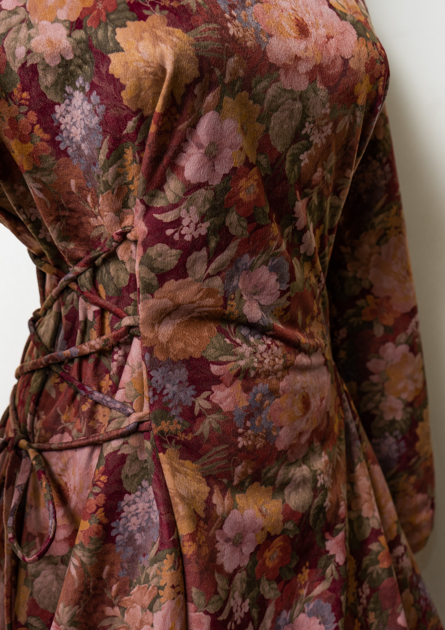 70~80's Hand Made Lace up Design Flower Pattern Dress