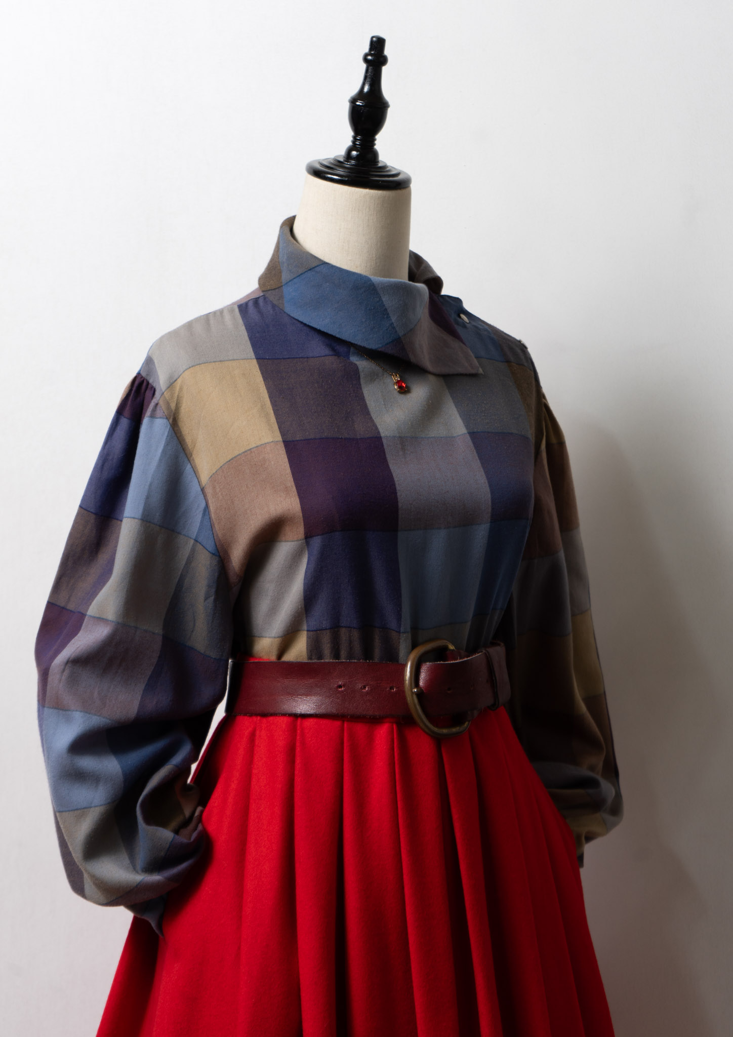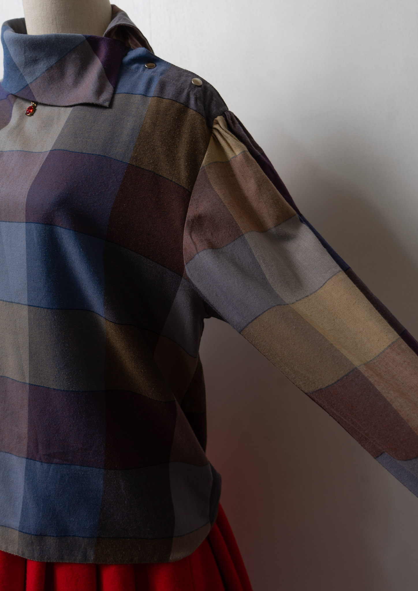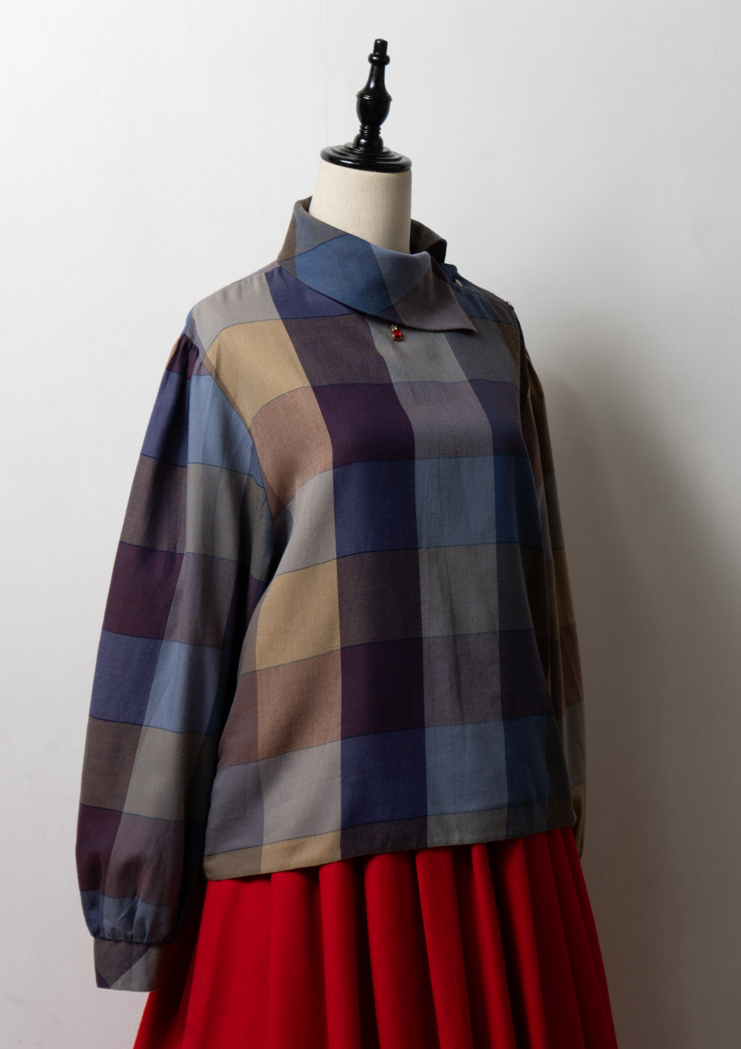 80's Side Open Design Check Pattern Blouse