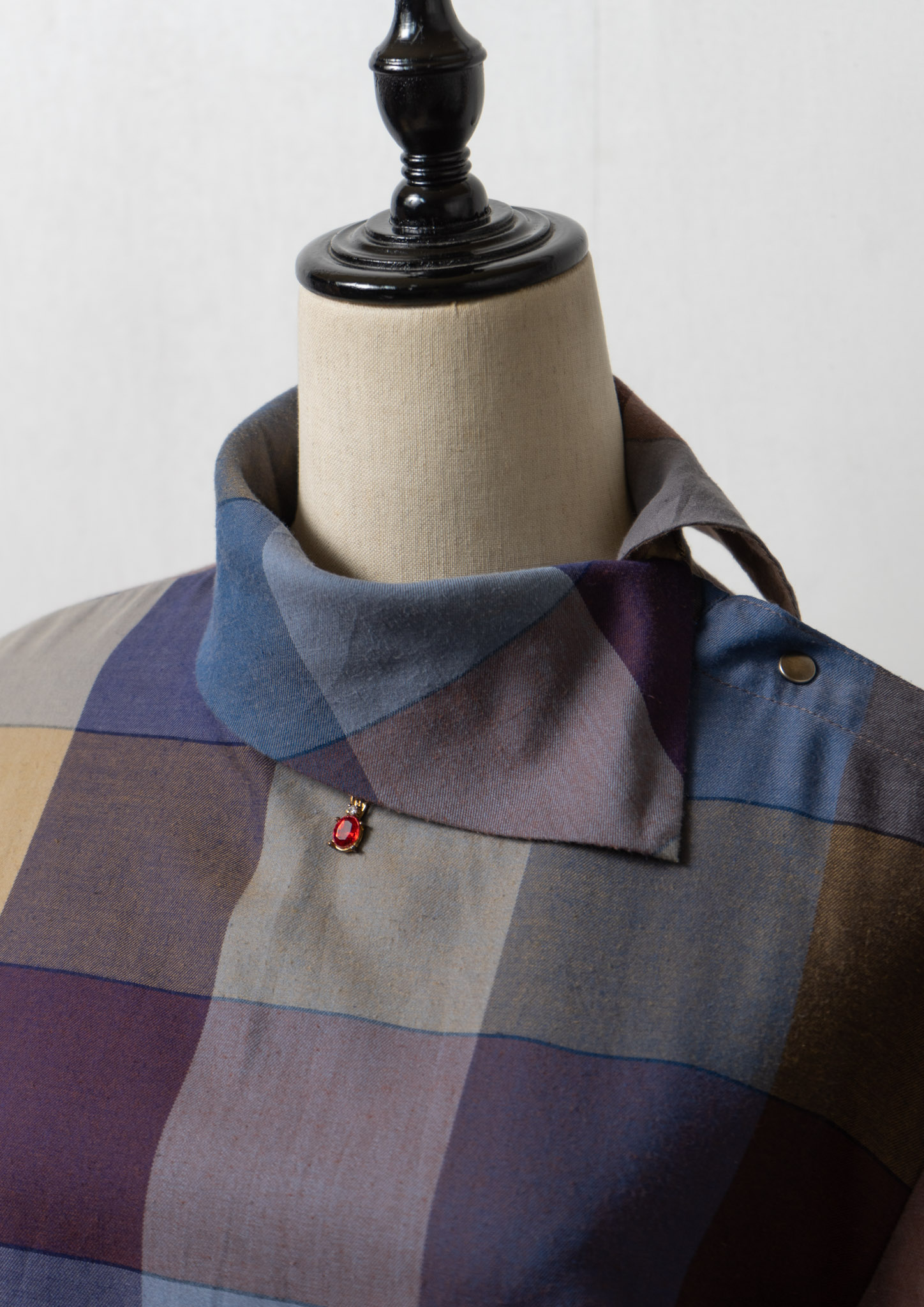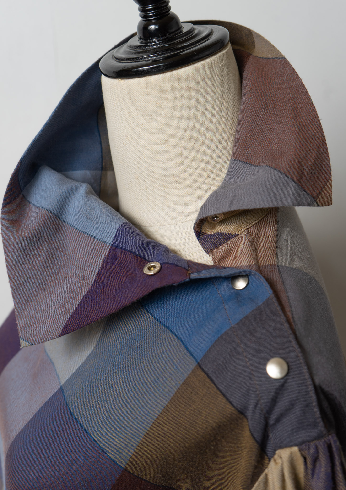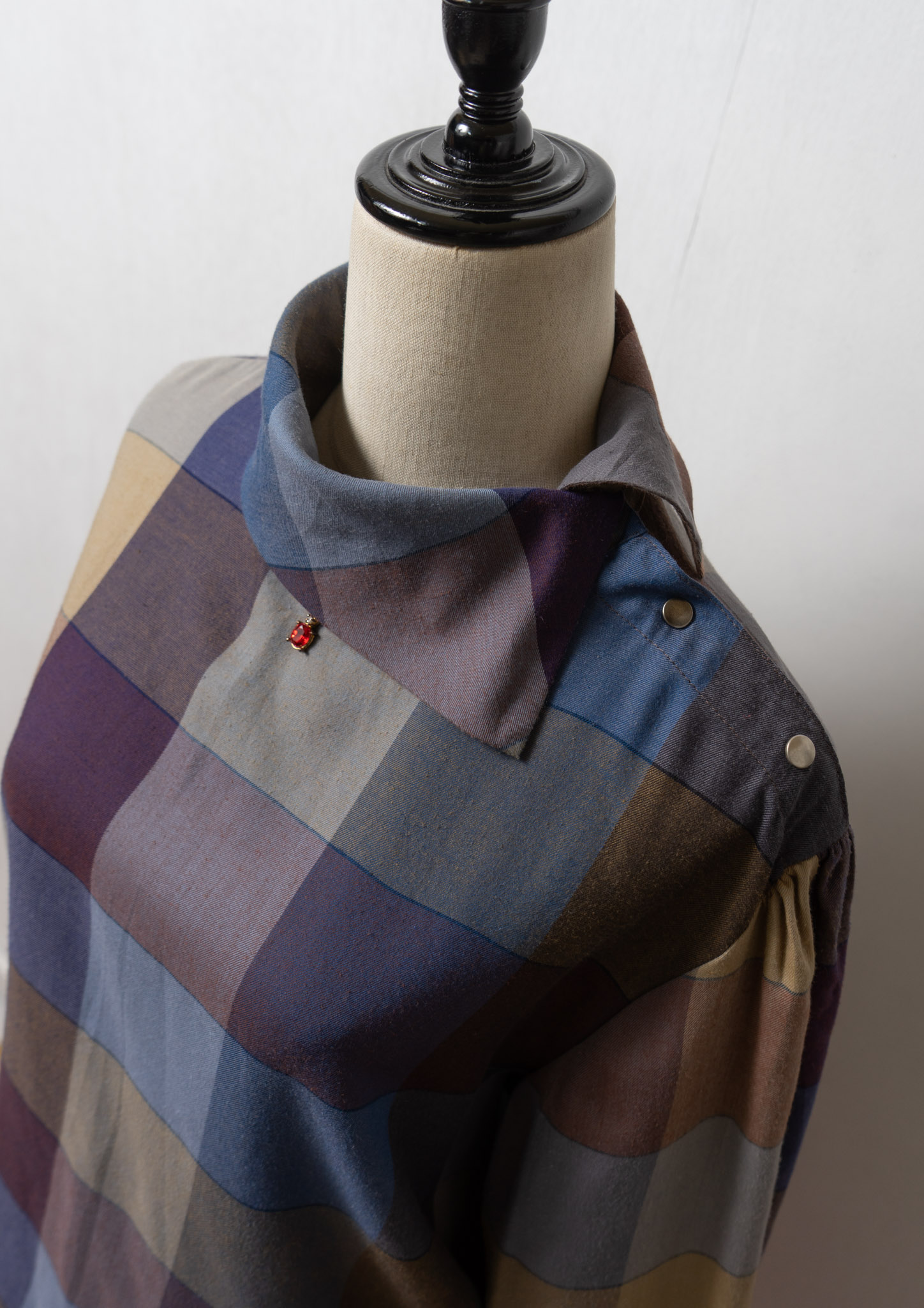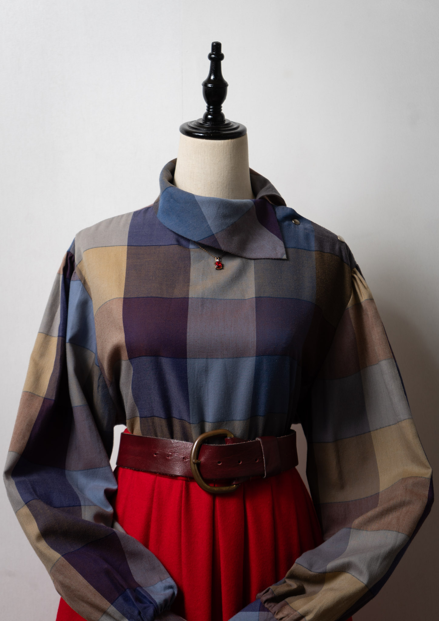 80's Side Open Design Check Pattern Blouse