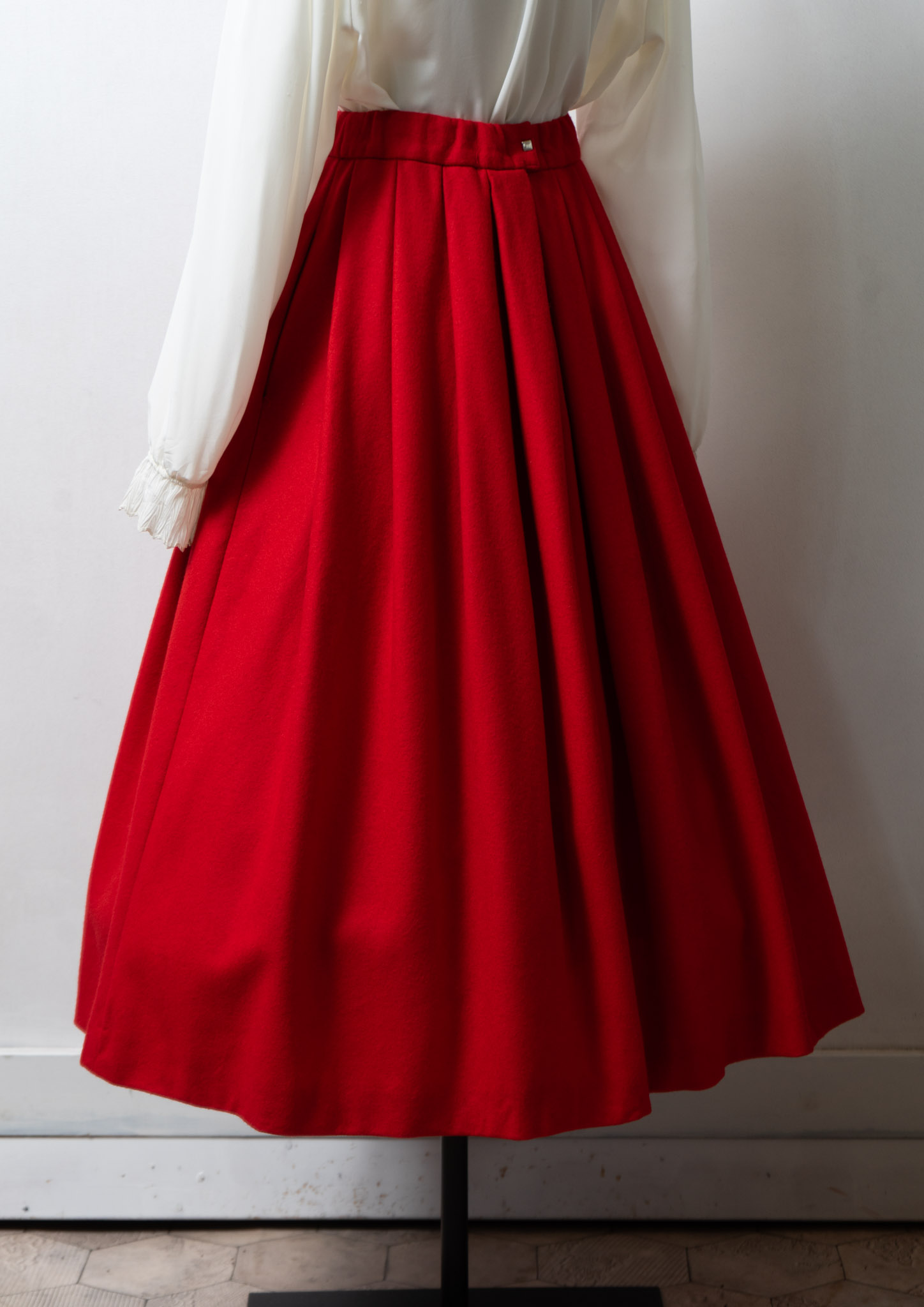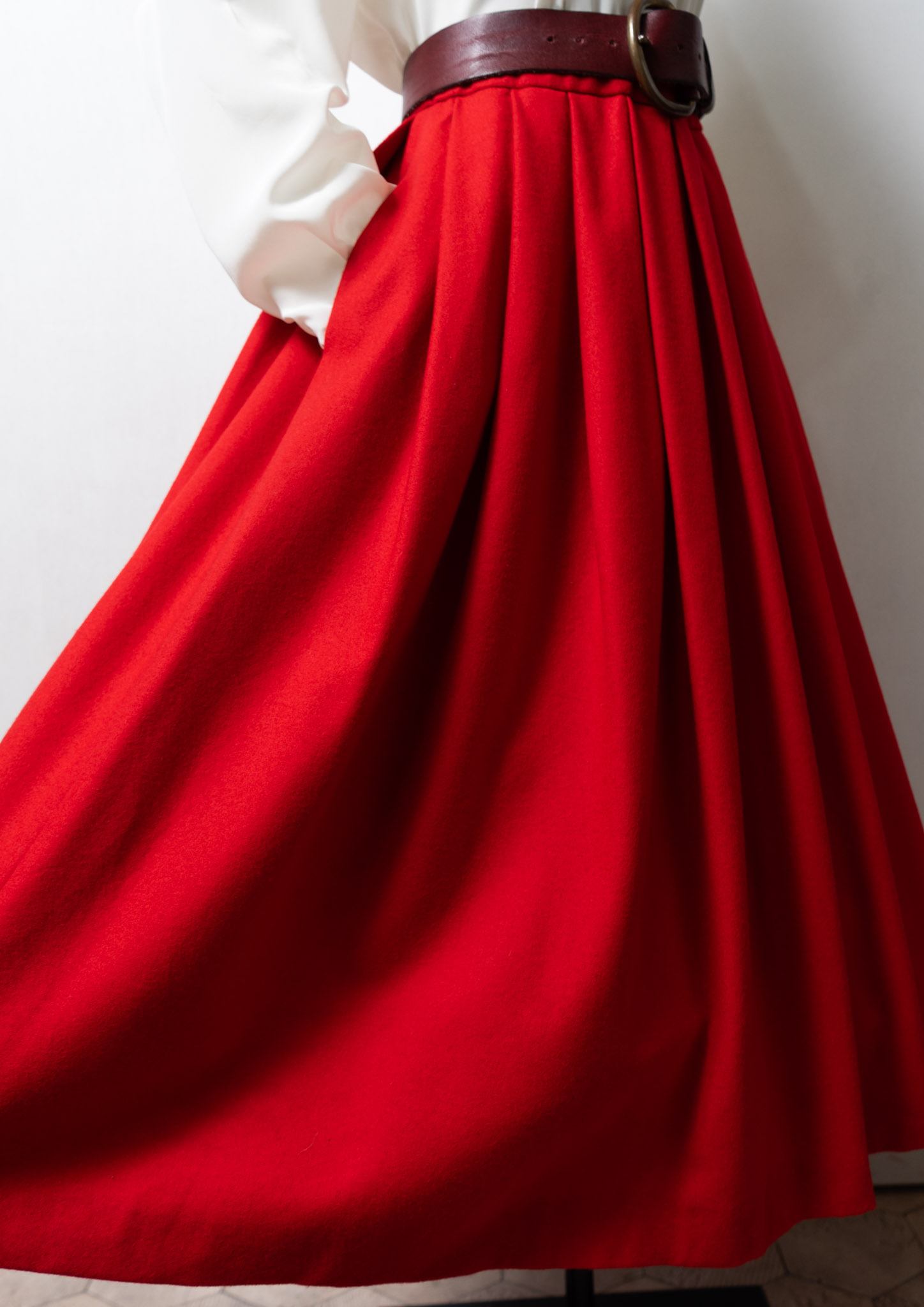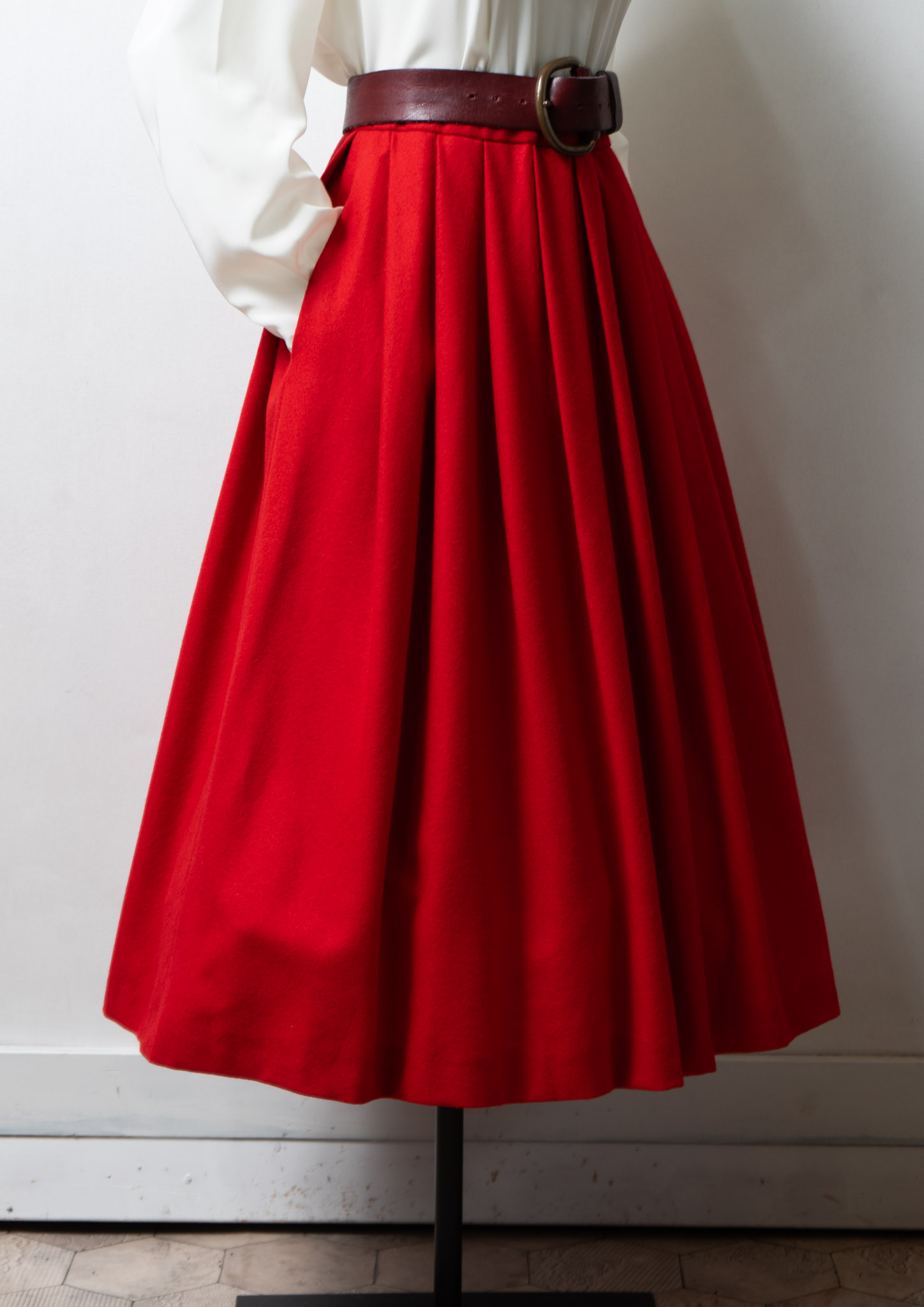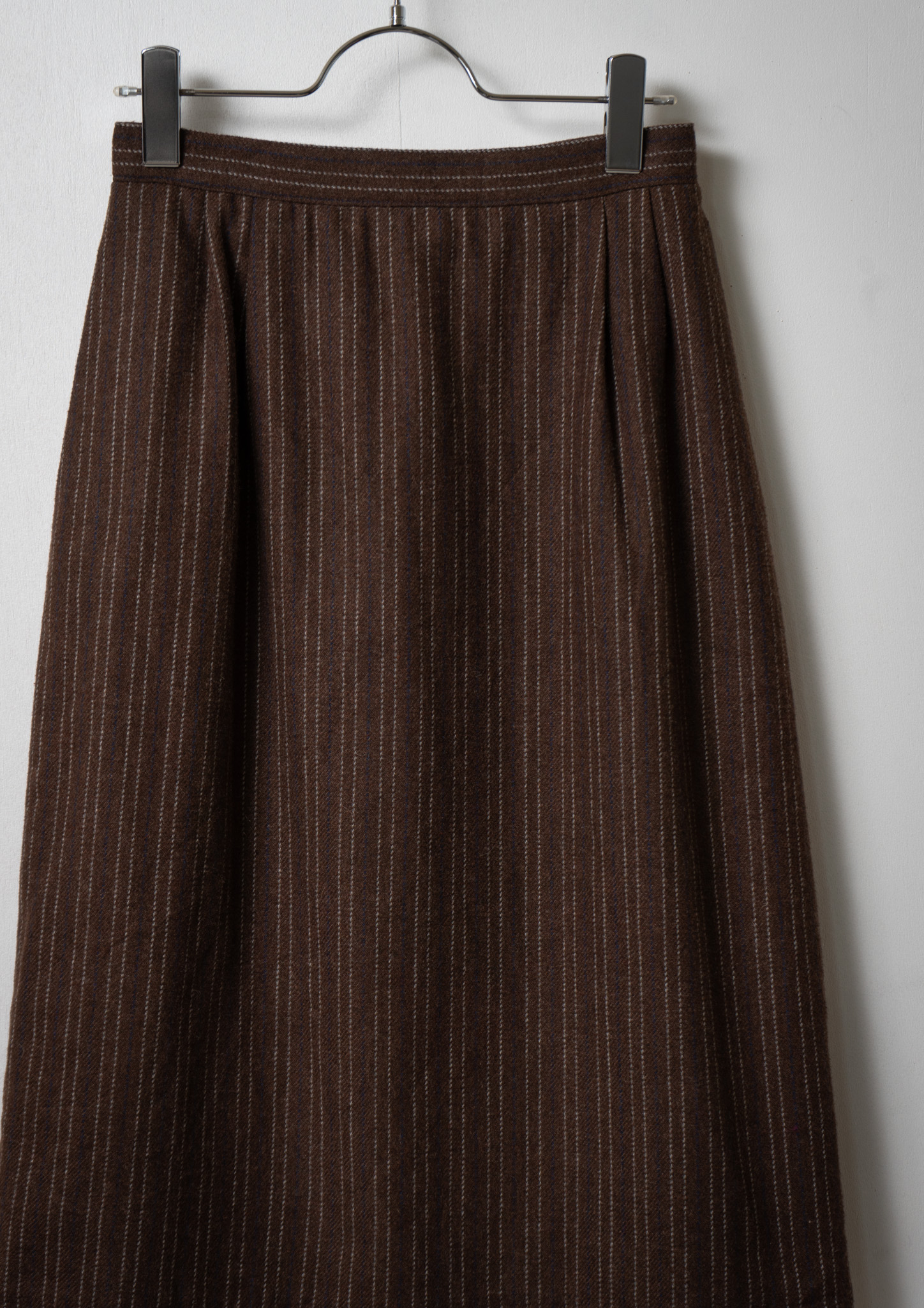 70's Navy×Gray Stripe Pattern Brown Wool Mixed Skirt