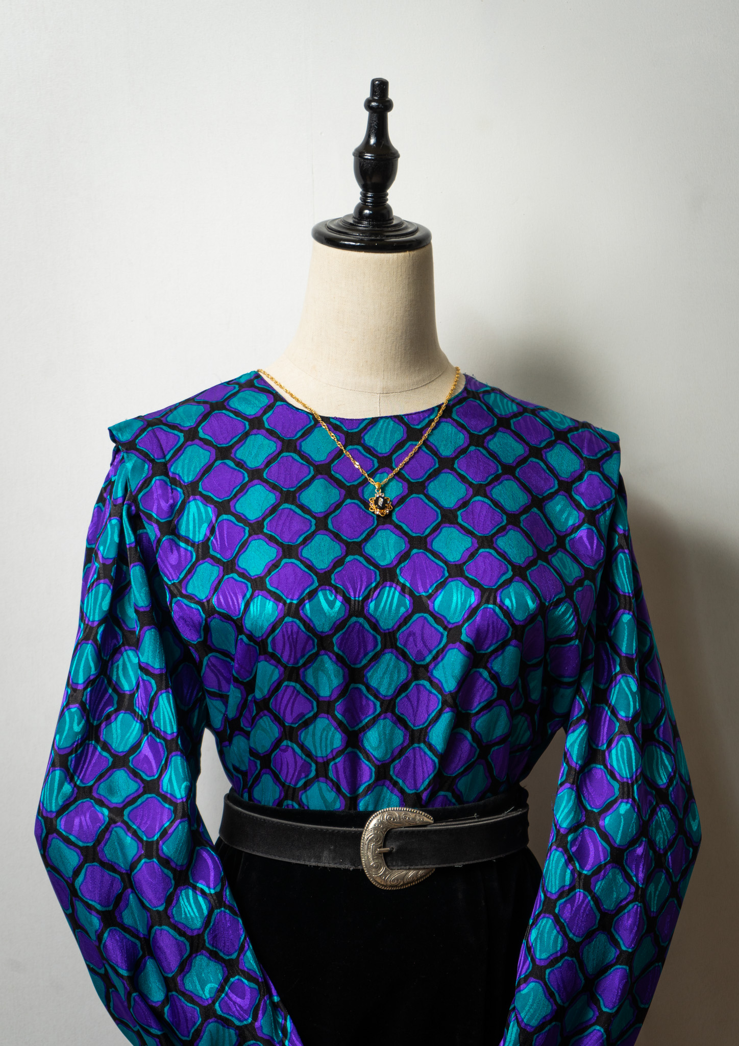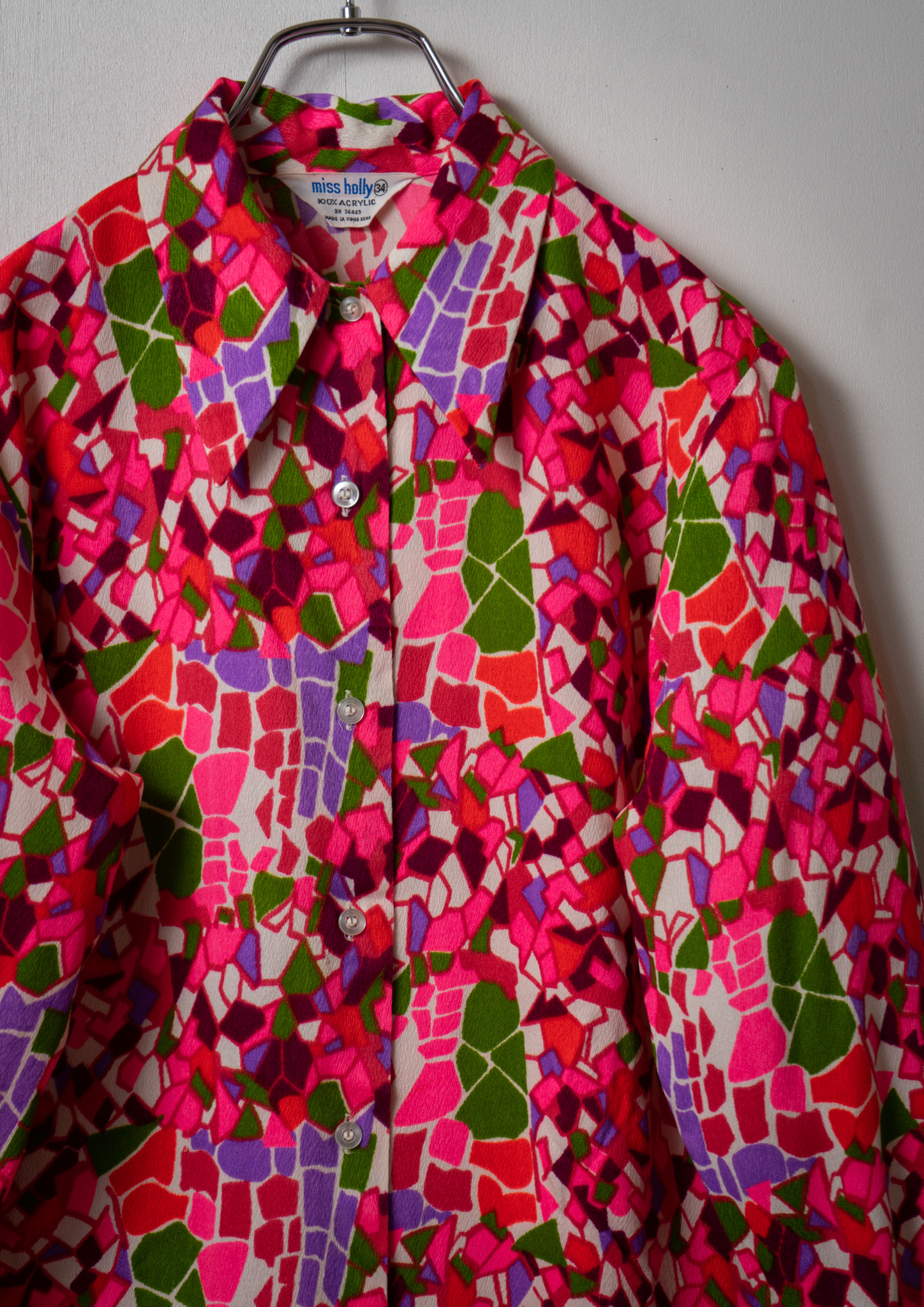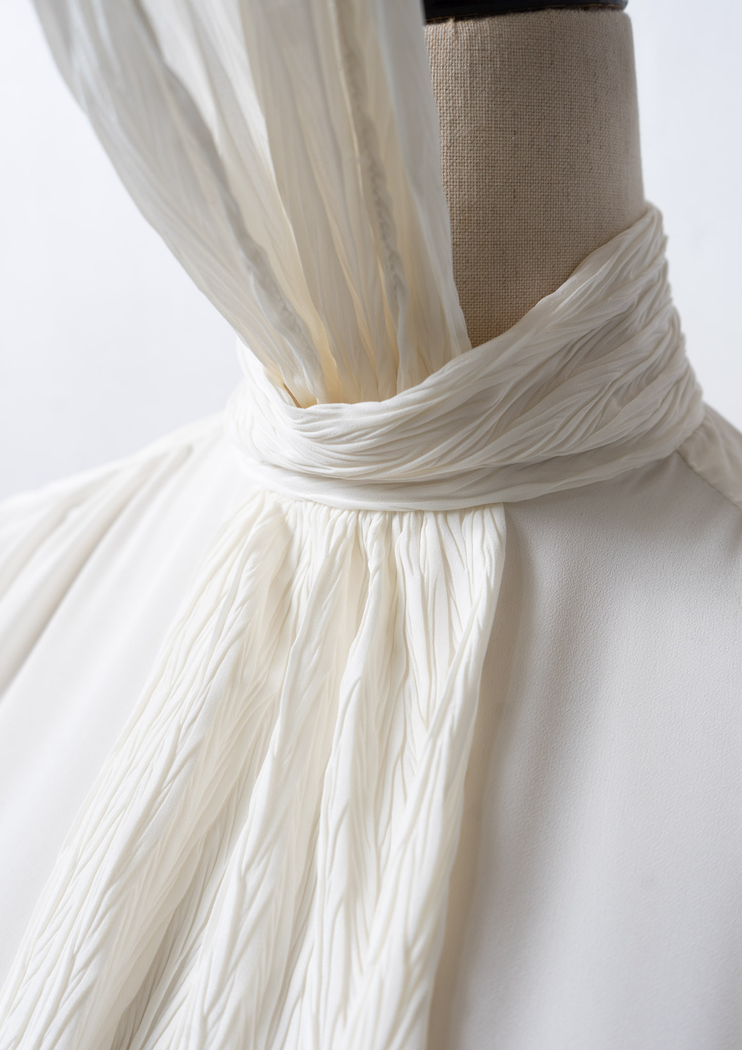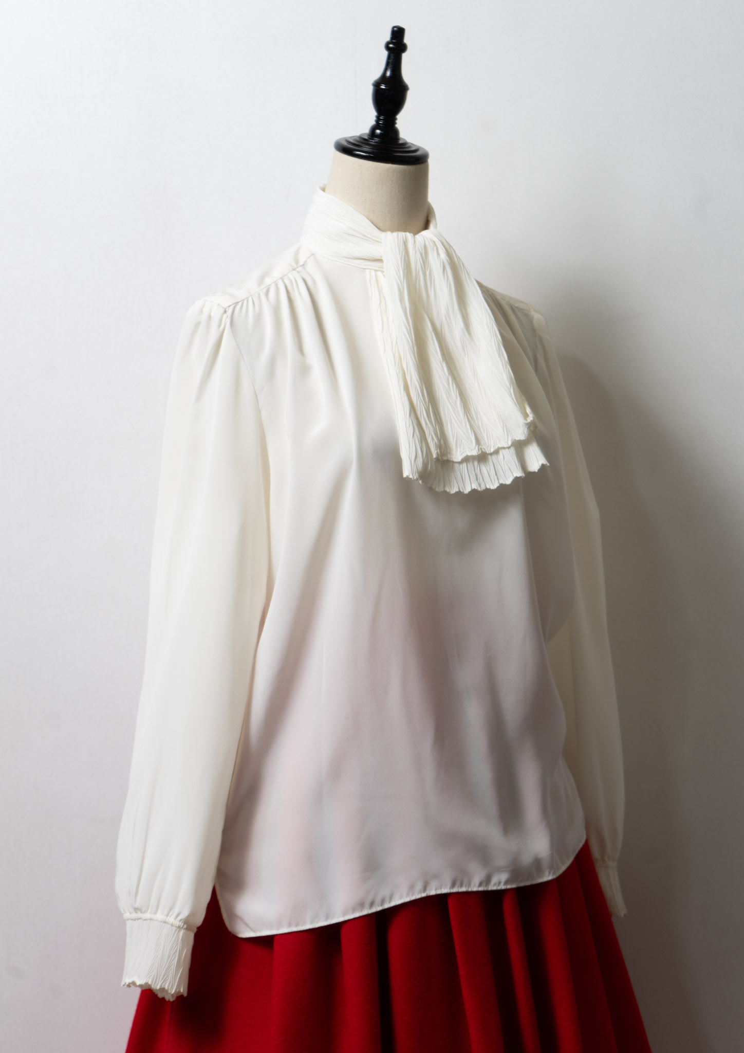 70's USA CrinkleScarf Collar Blouse