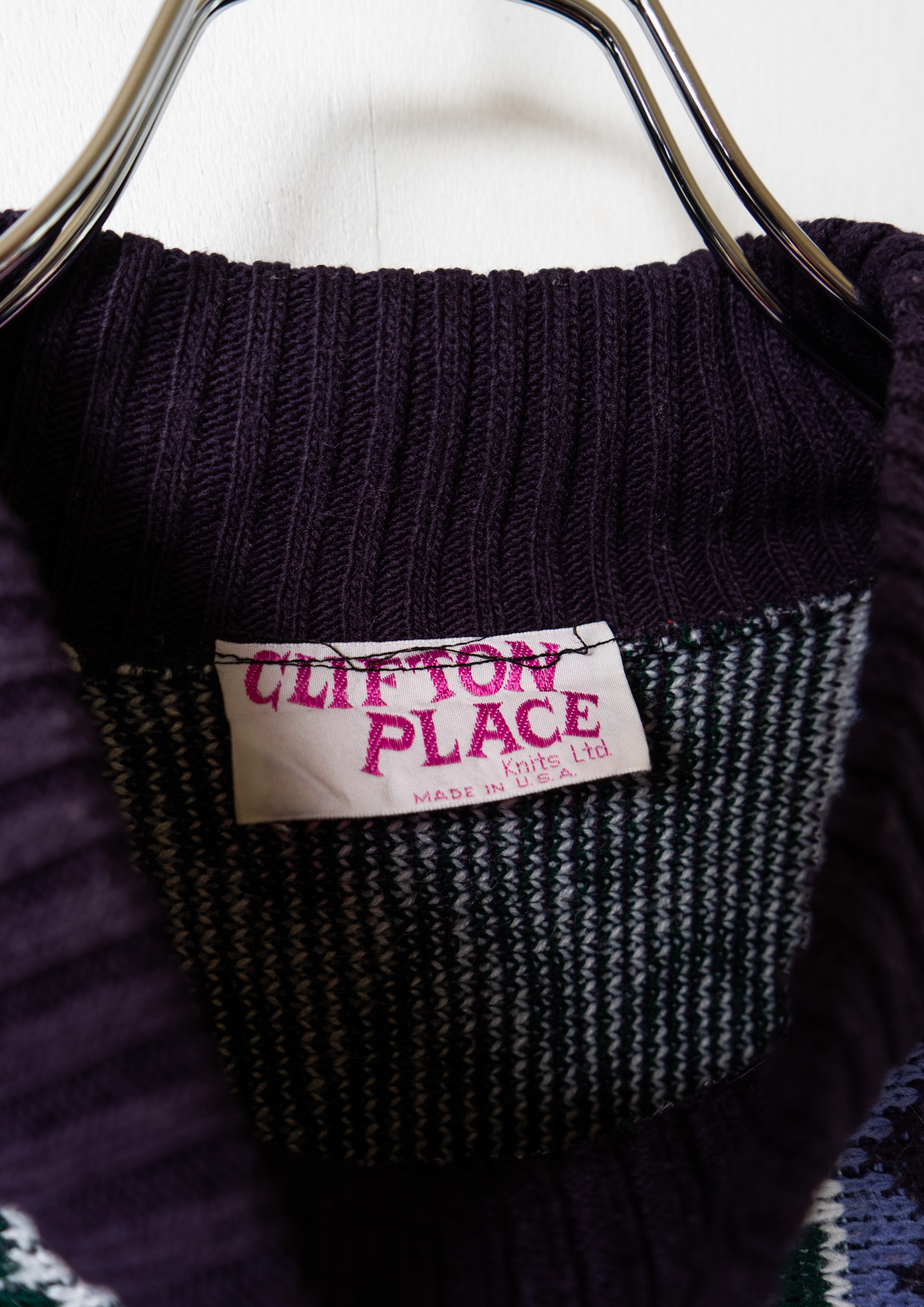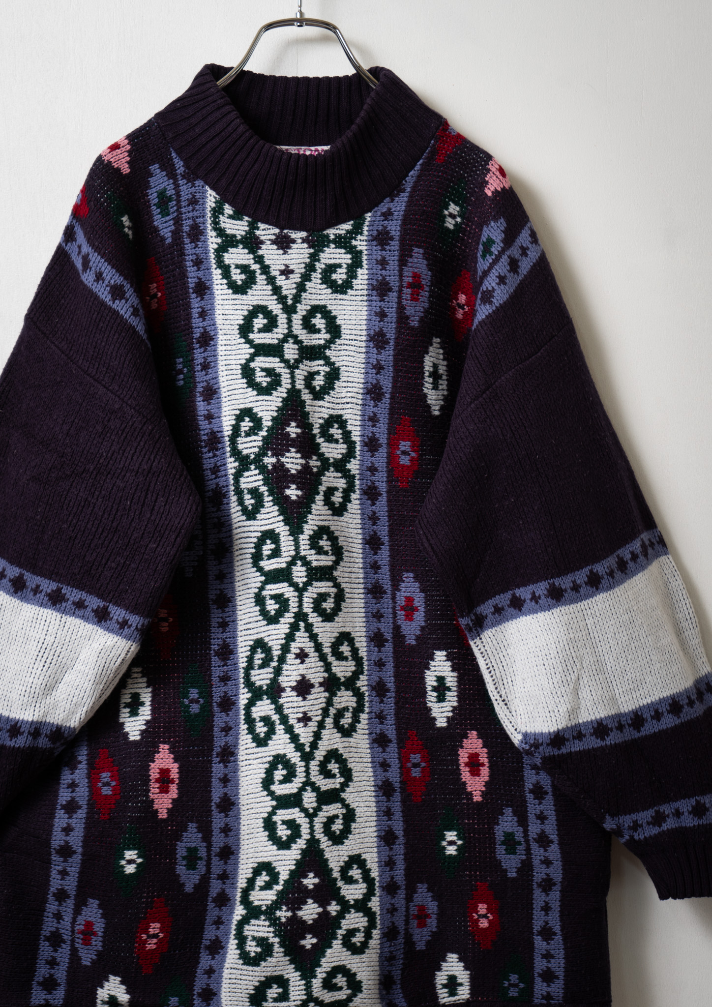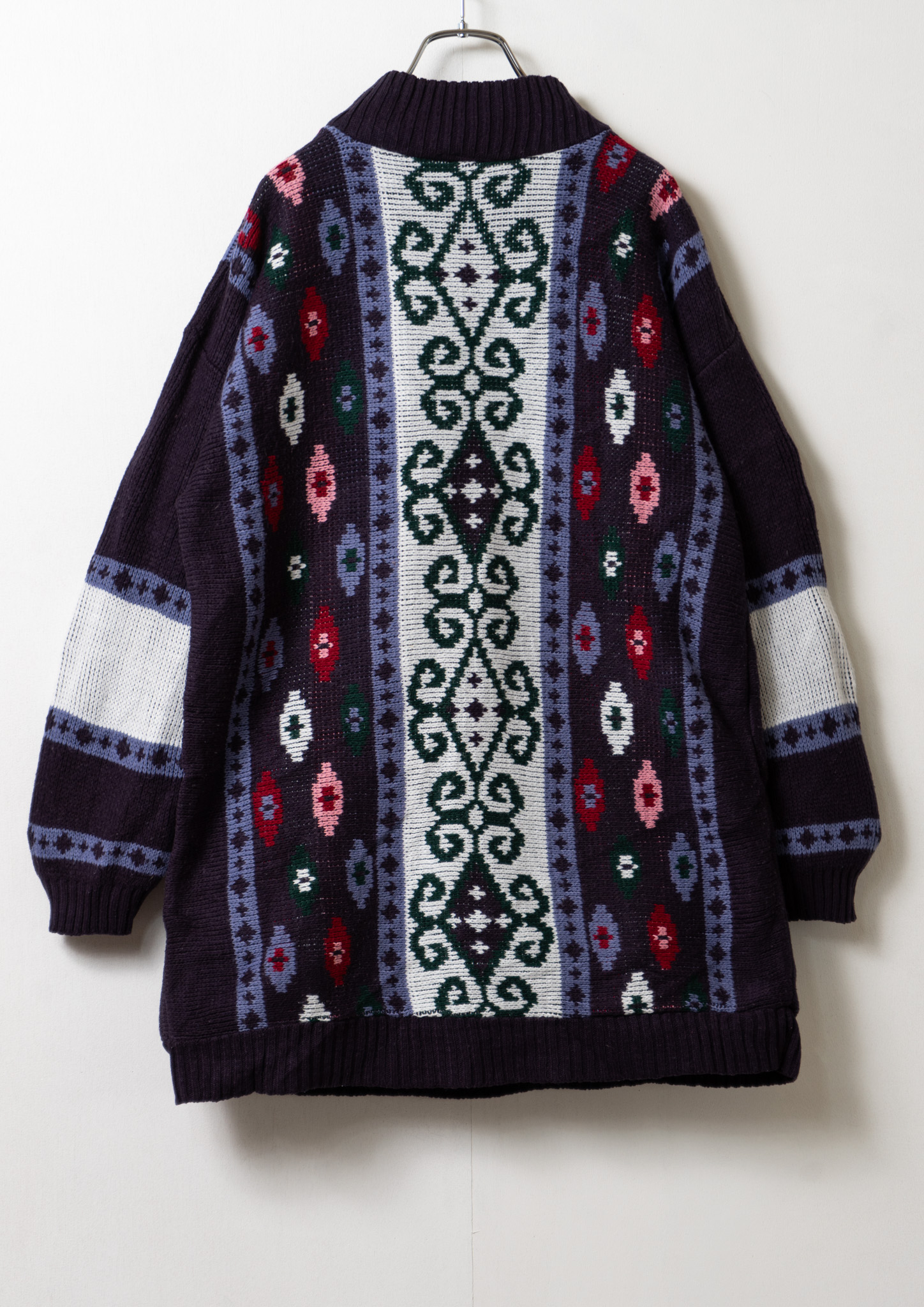 80's USA Arabesque Like Pattern Navy Sweater