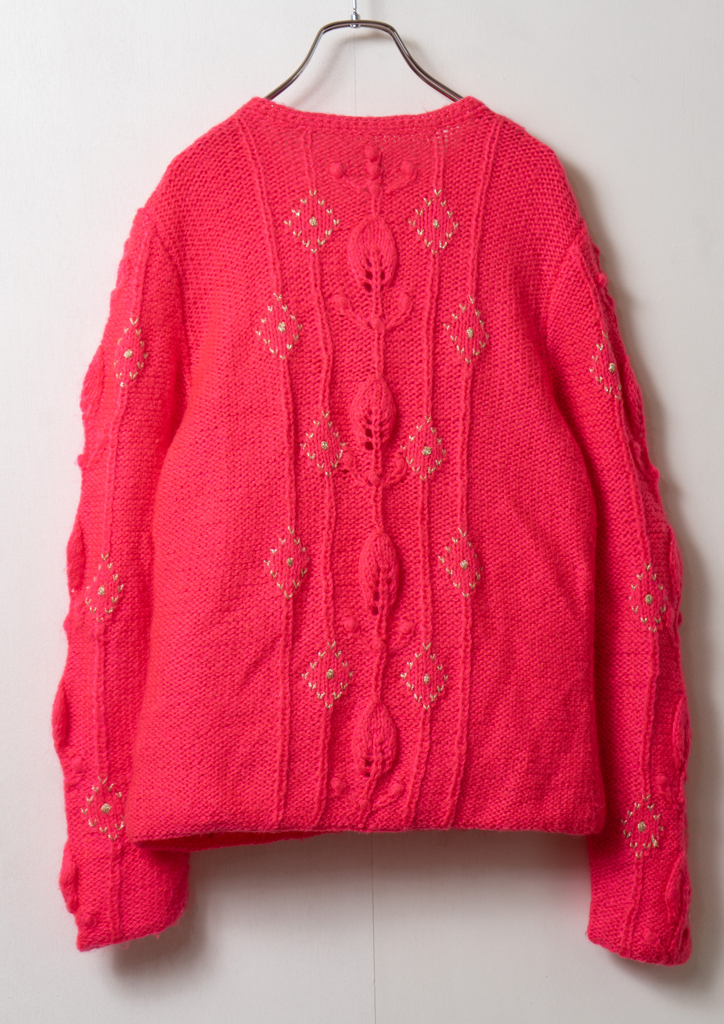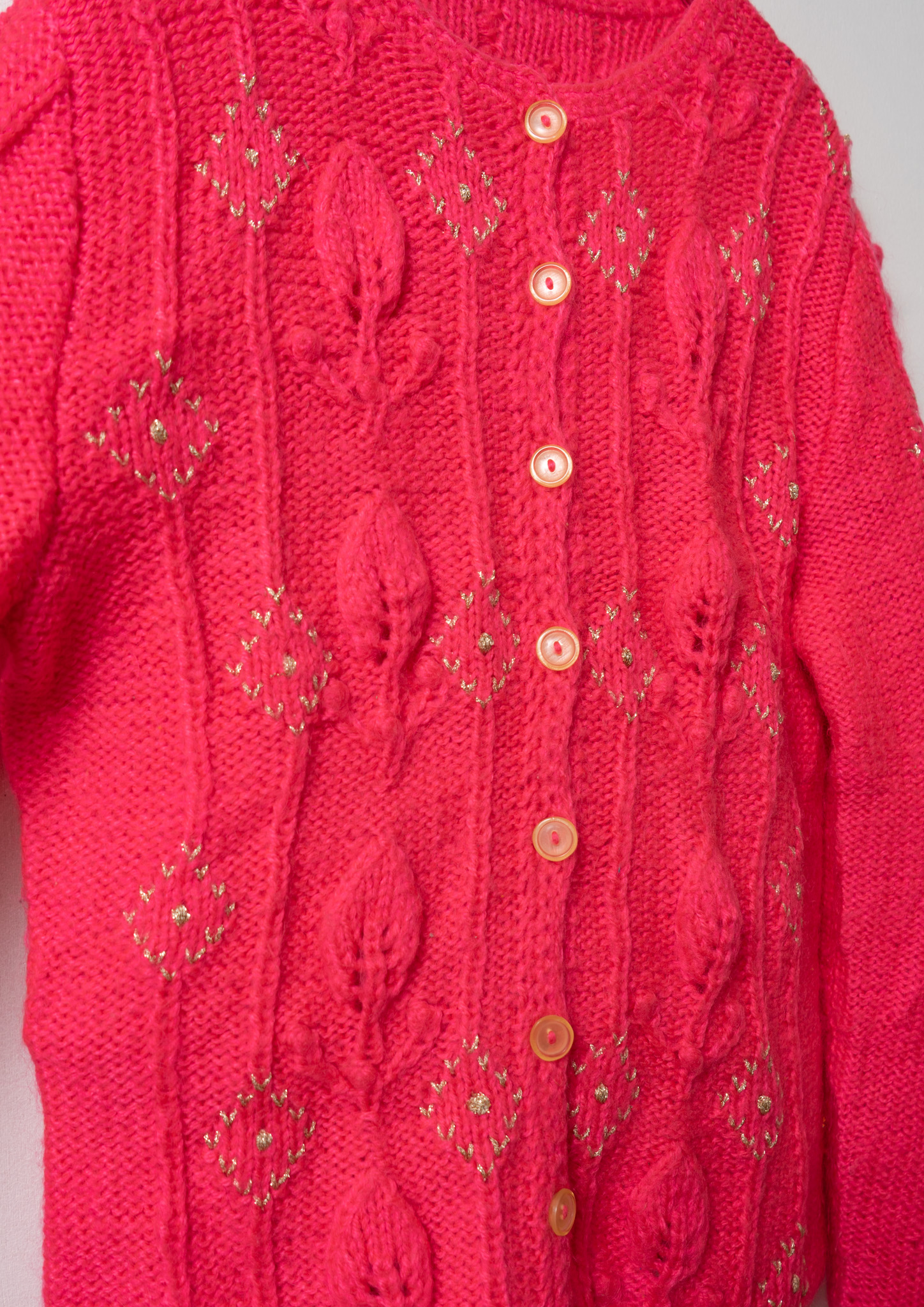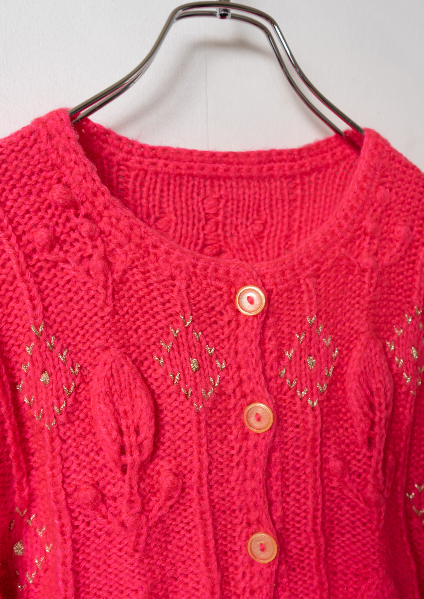 Glitter Diamond Pattern Vivid Pink Cable Knit Cardigan