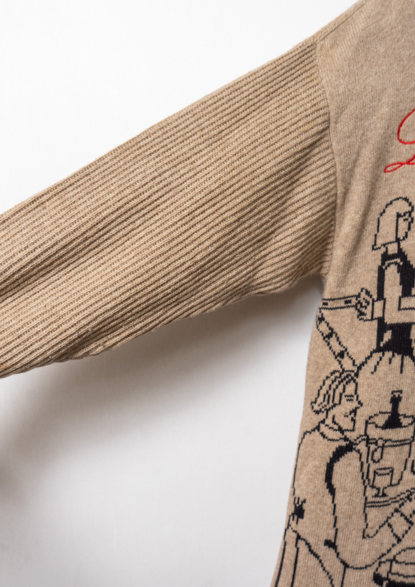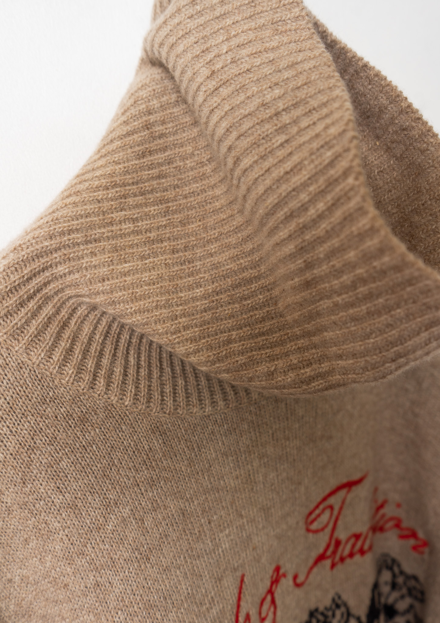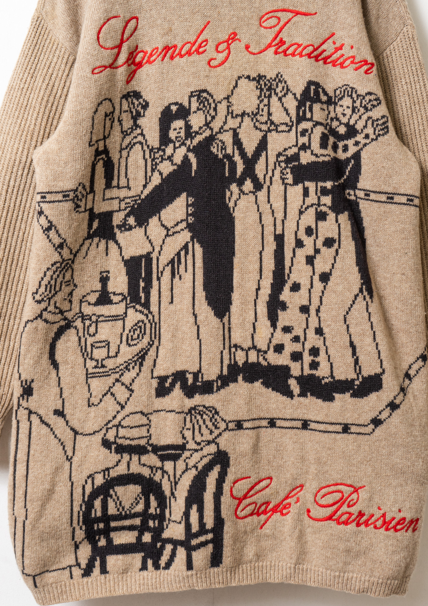 90's Itary Art Pattren Off Turtleneck Beige Sweater