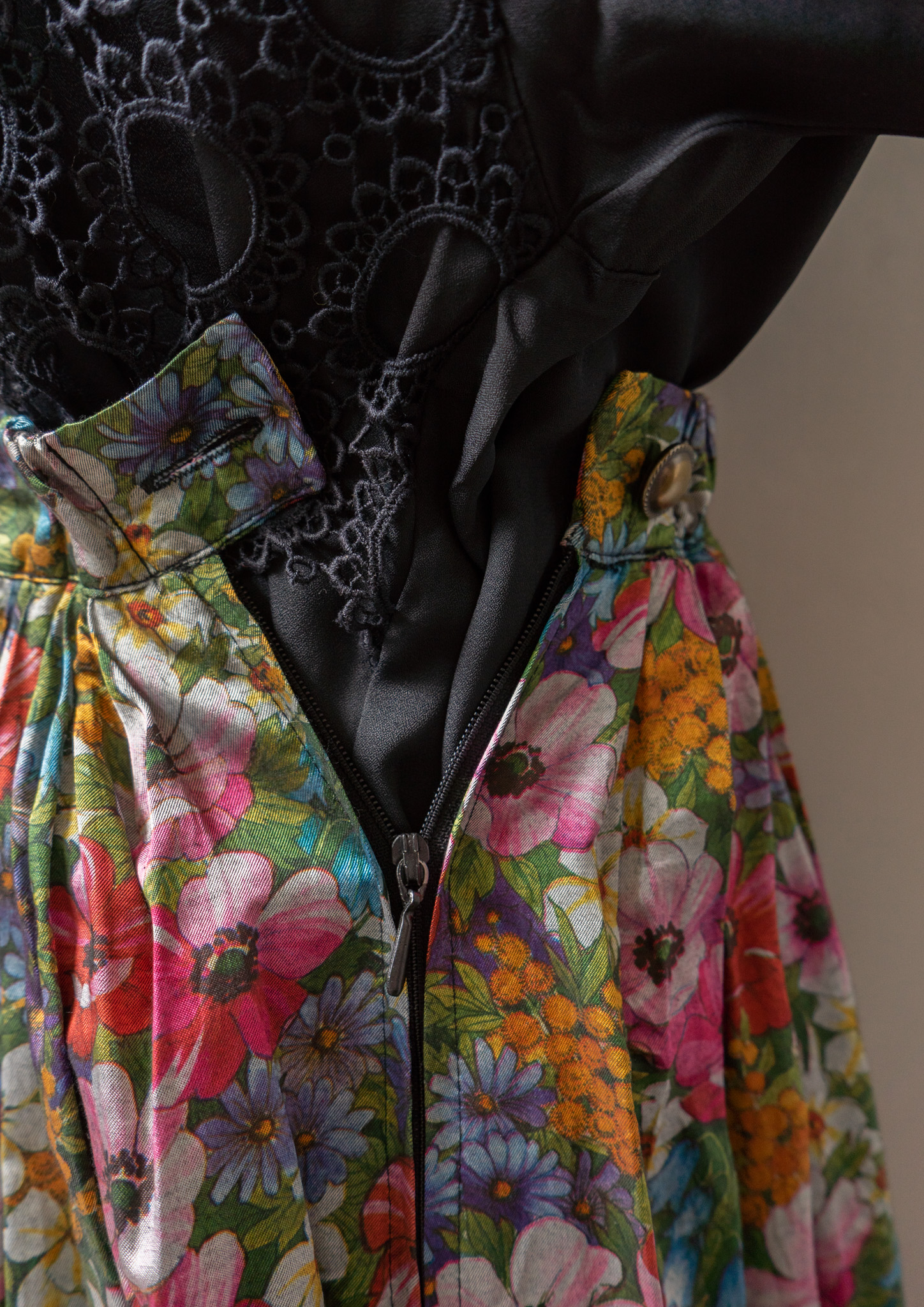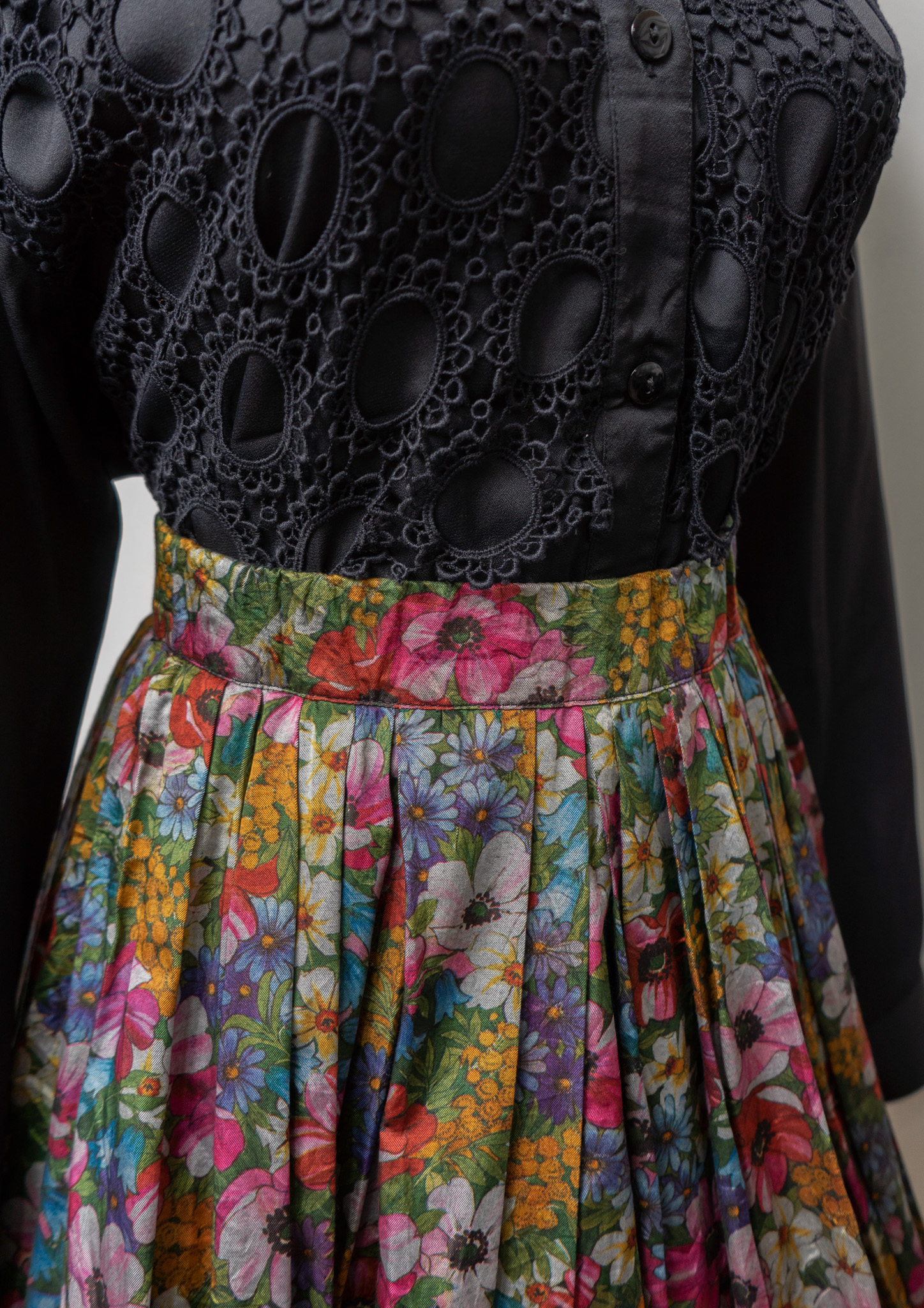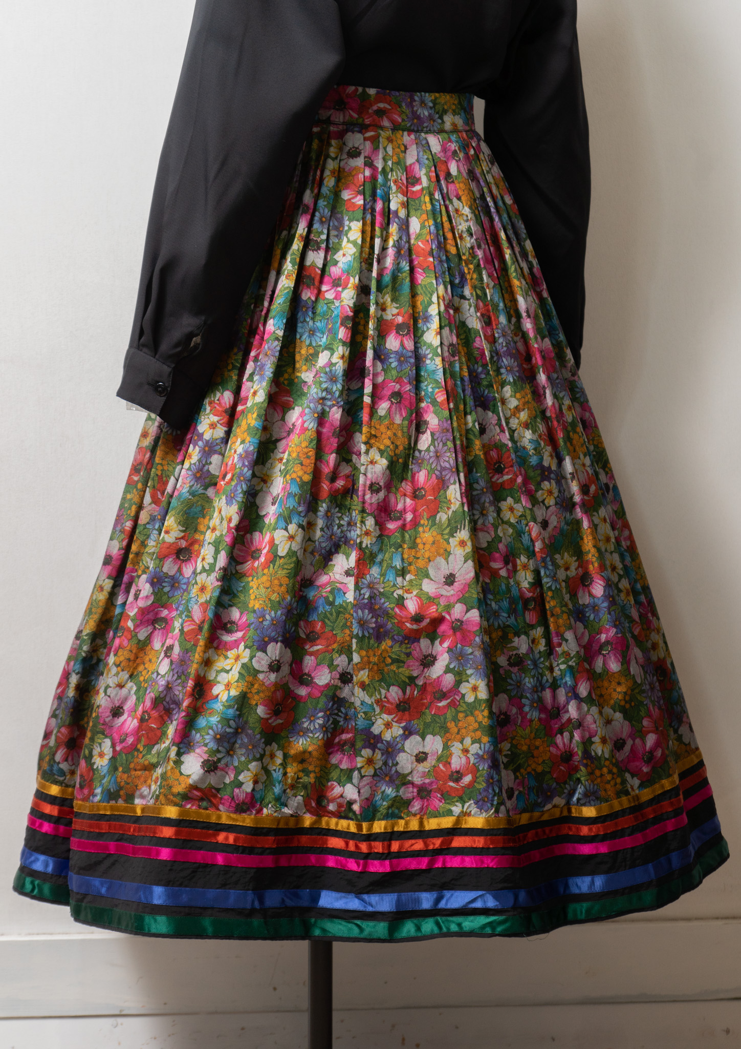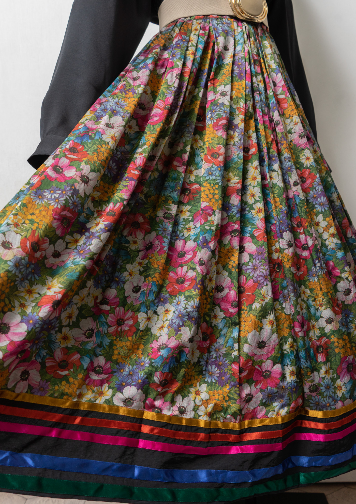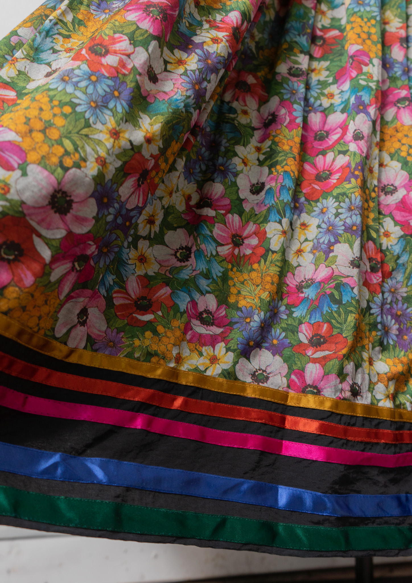 90's Euro Flower Stripe Pattern Tiered Skirt