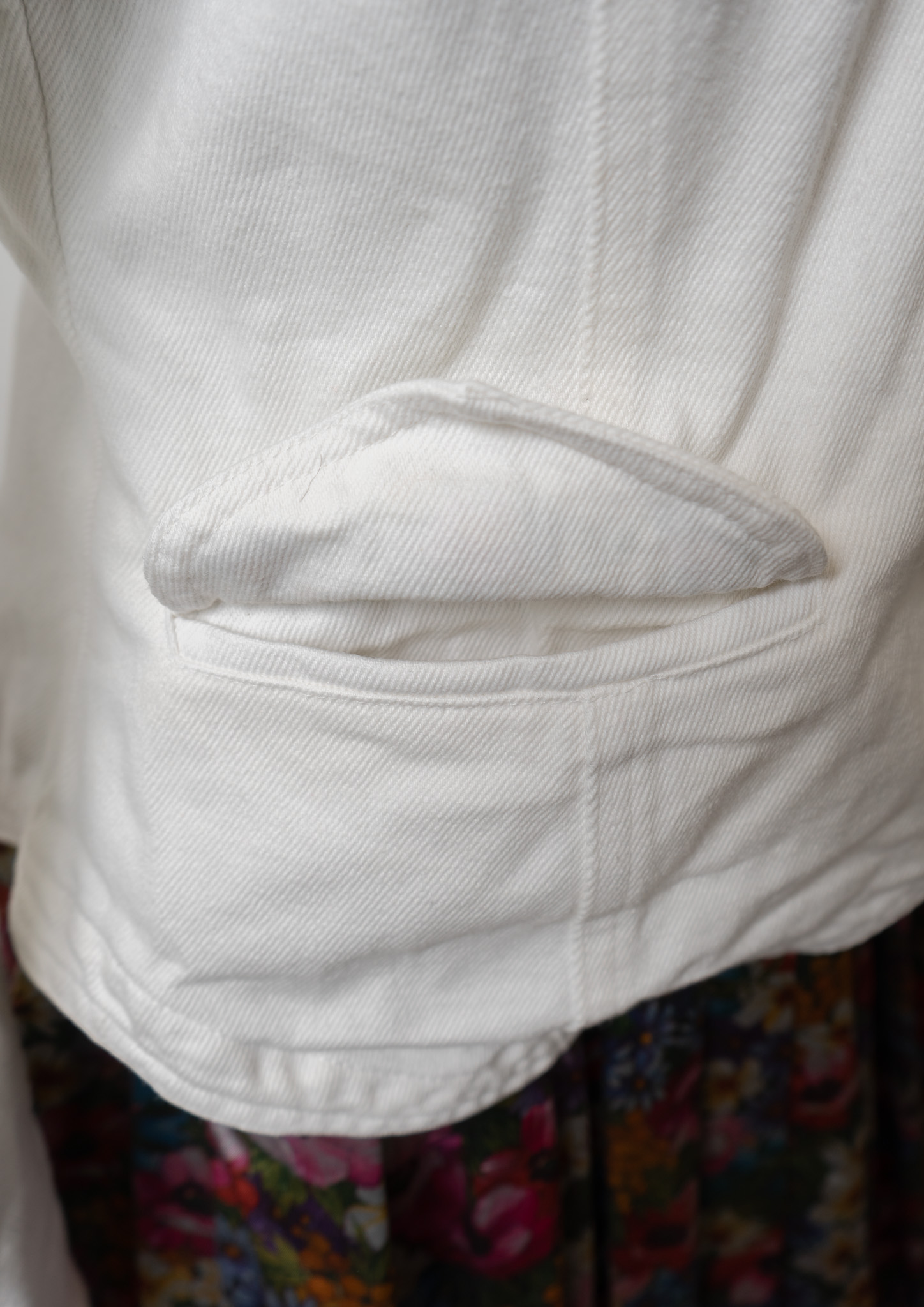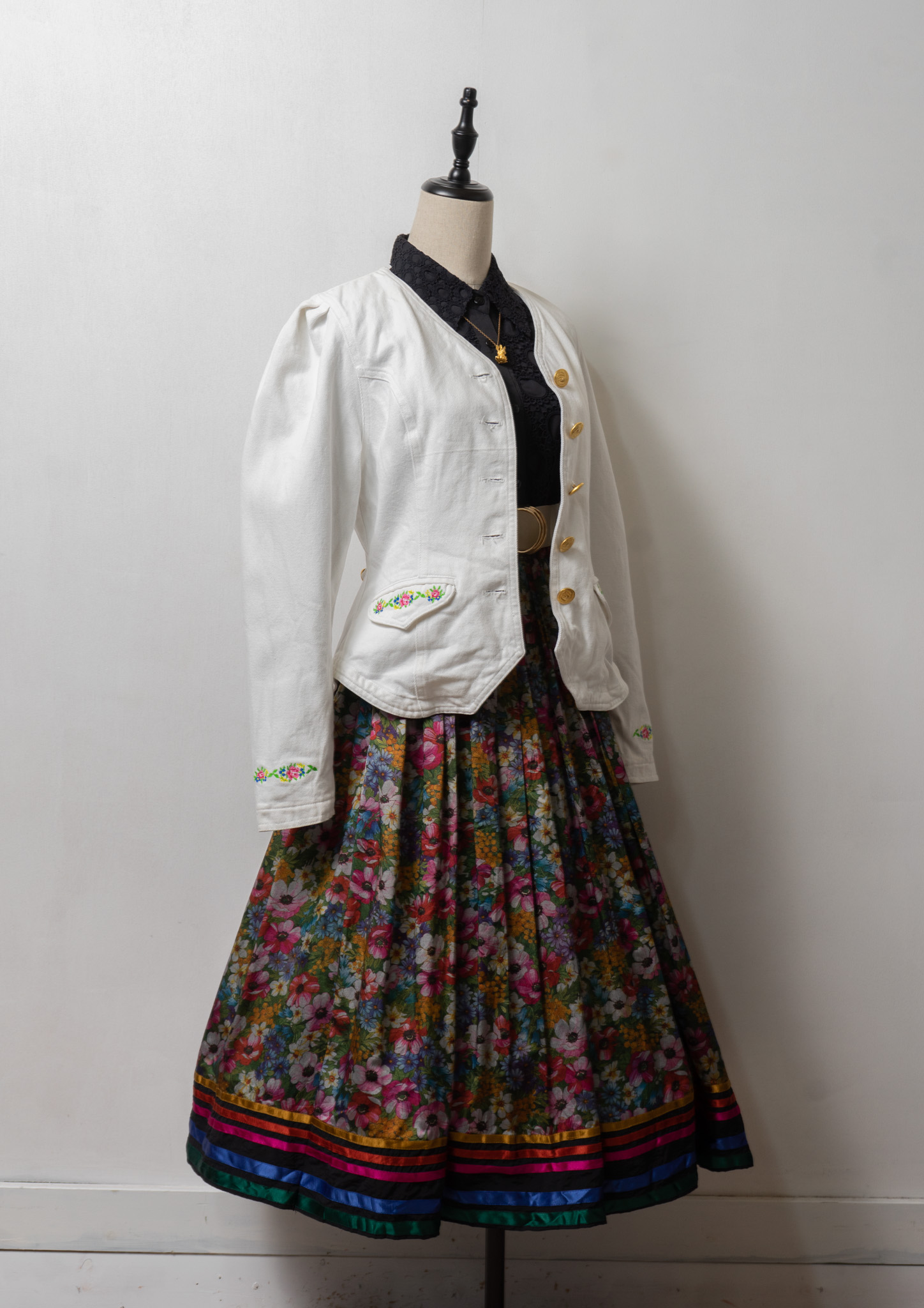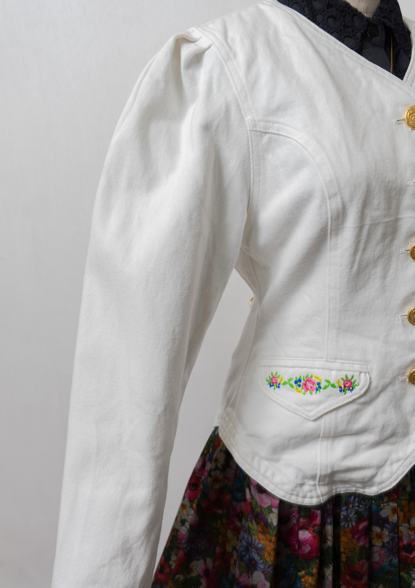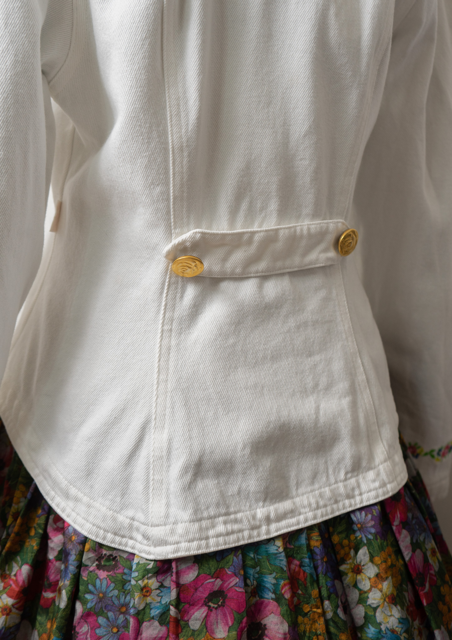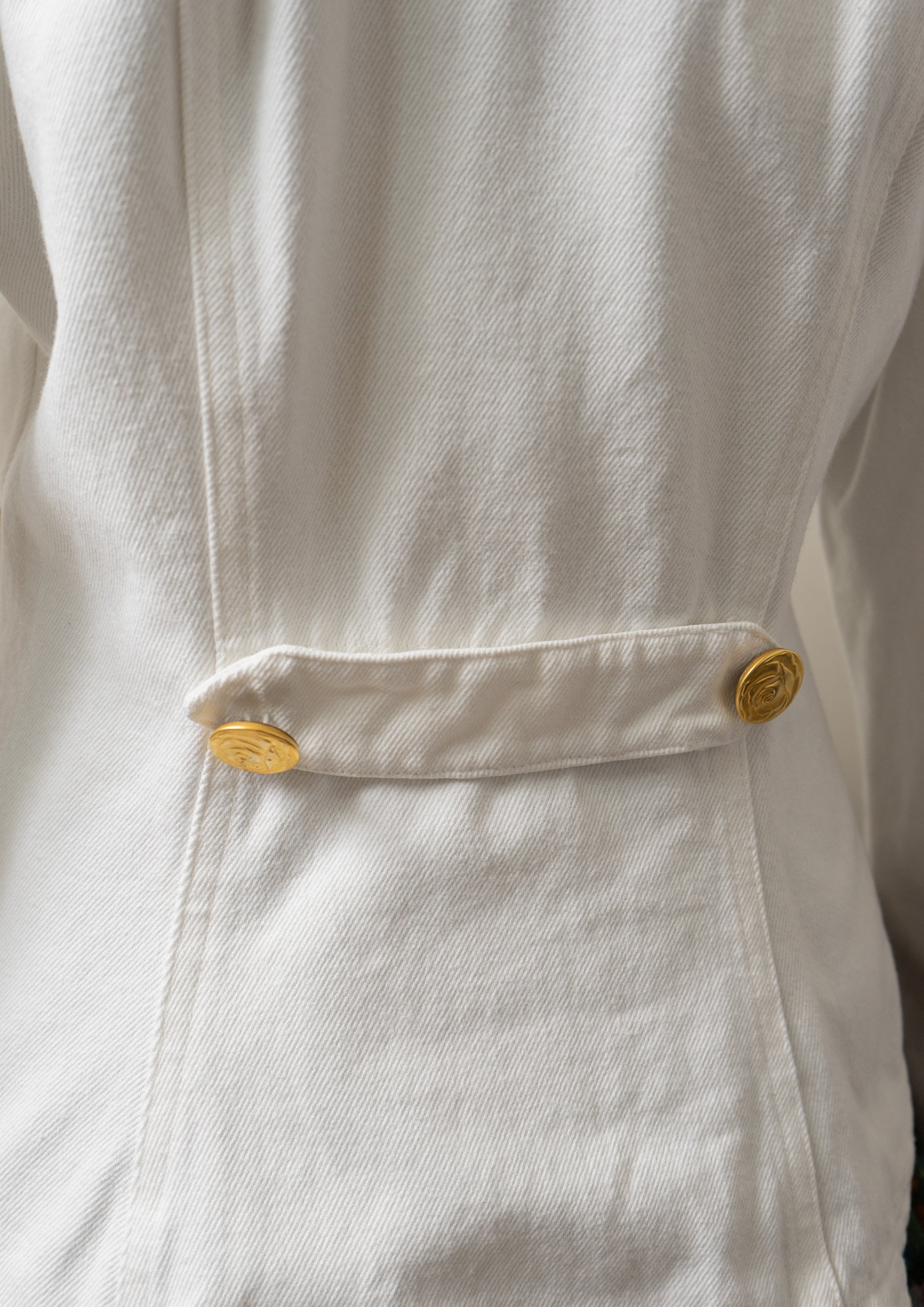 90's Swizerland Gold Rose Button Cross Stitch Like Rose Pattern White Jacket