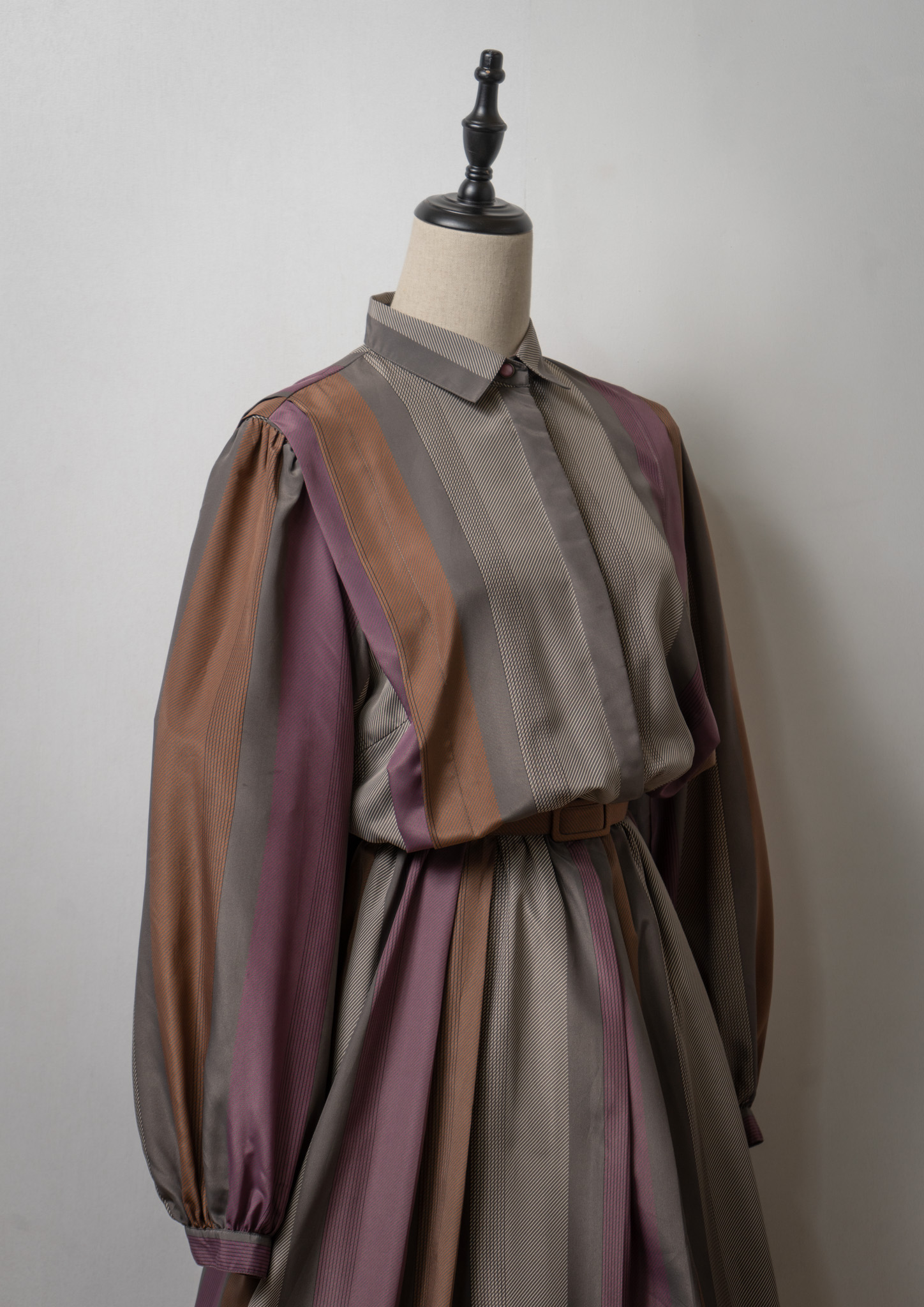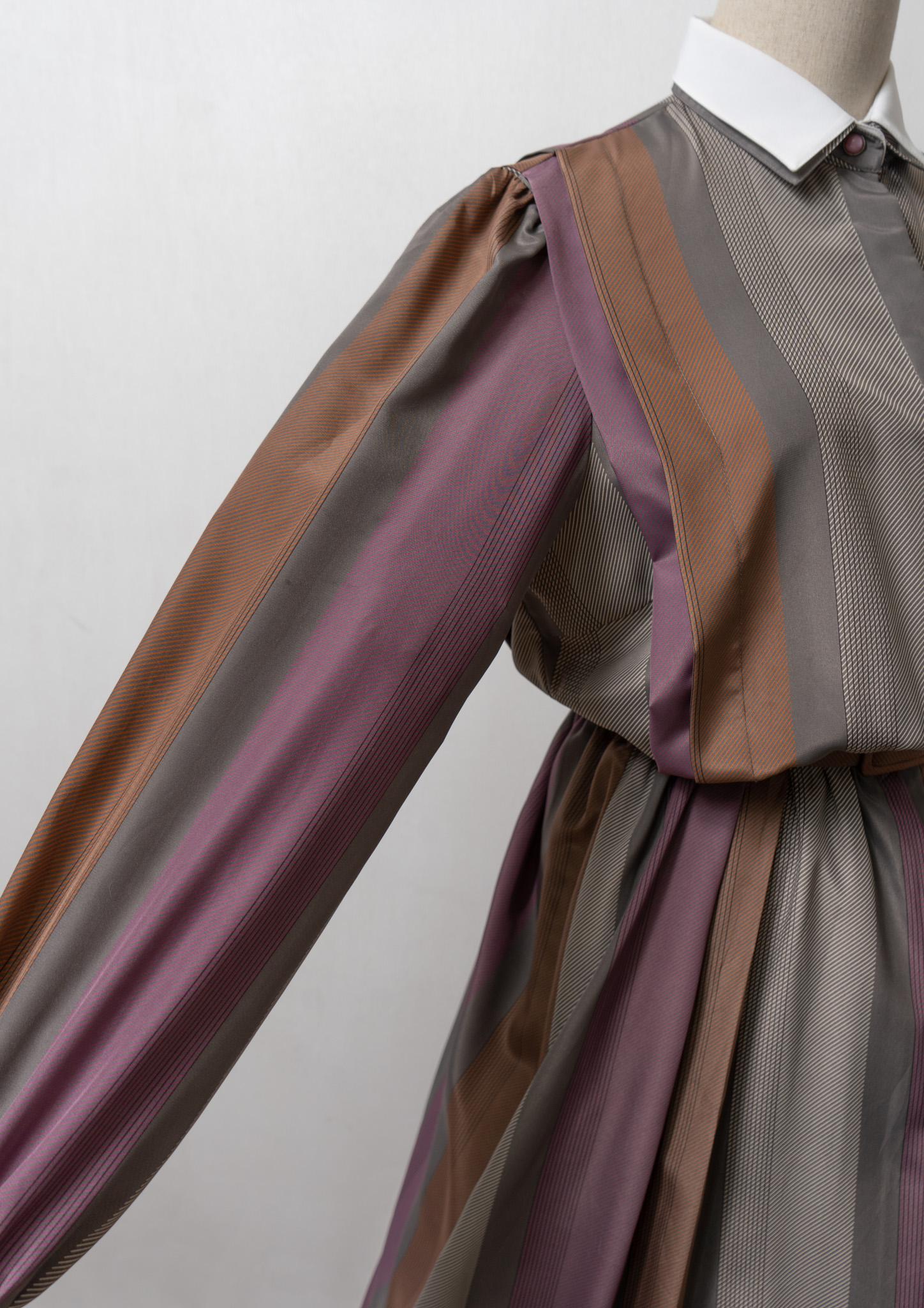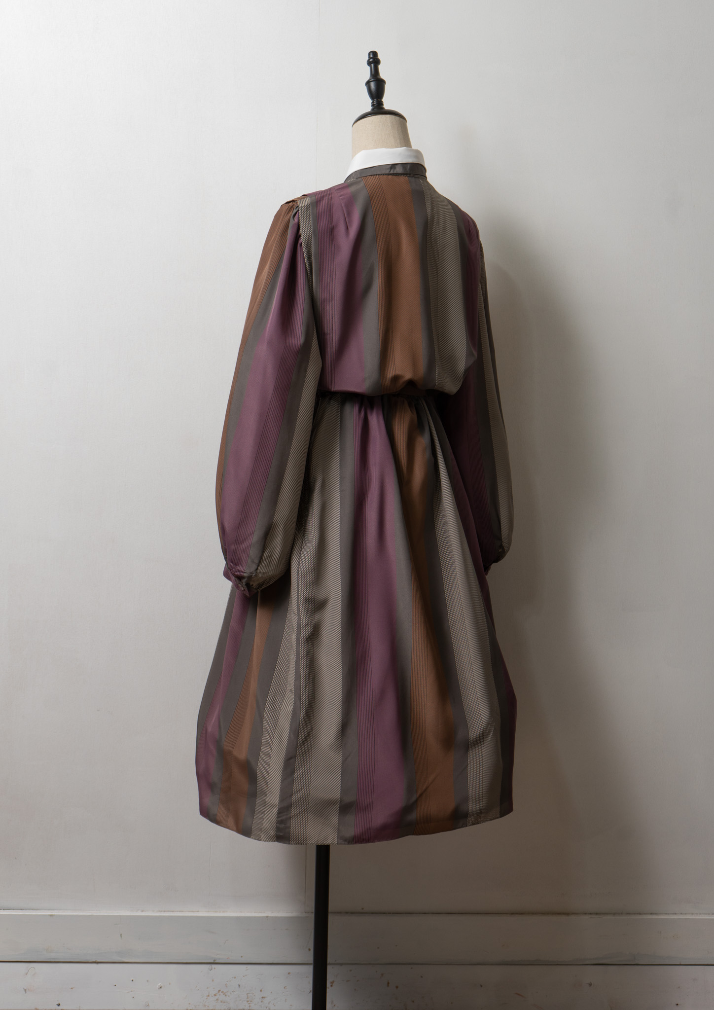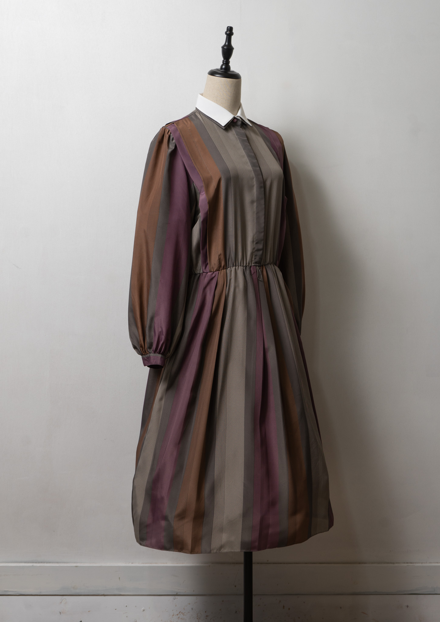 80~90's C&A Tuck Design Stripe Pattern Dress