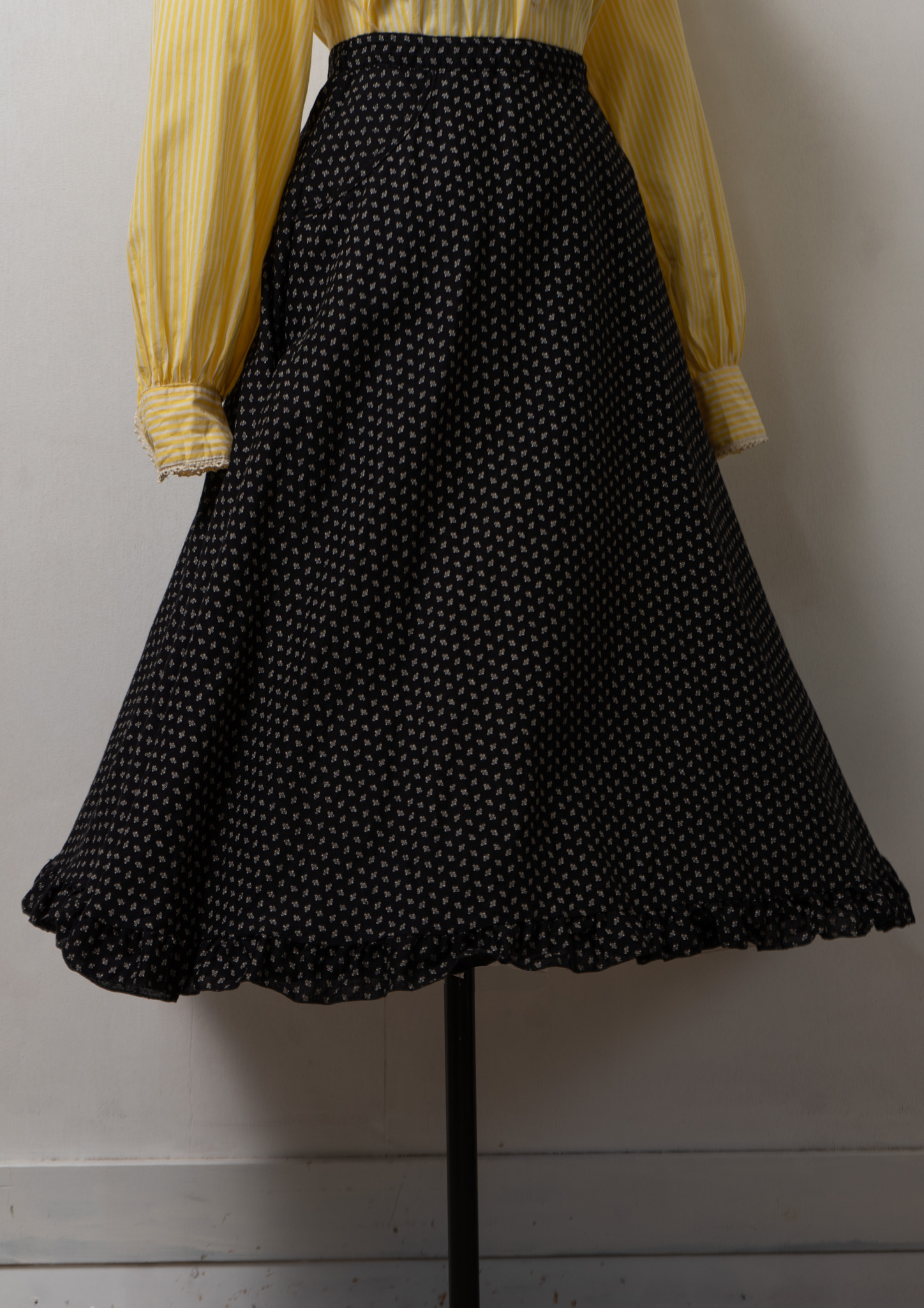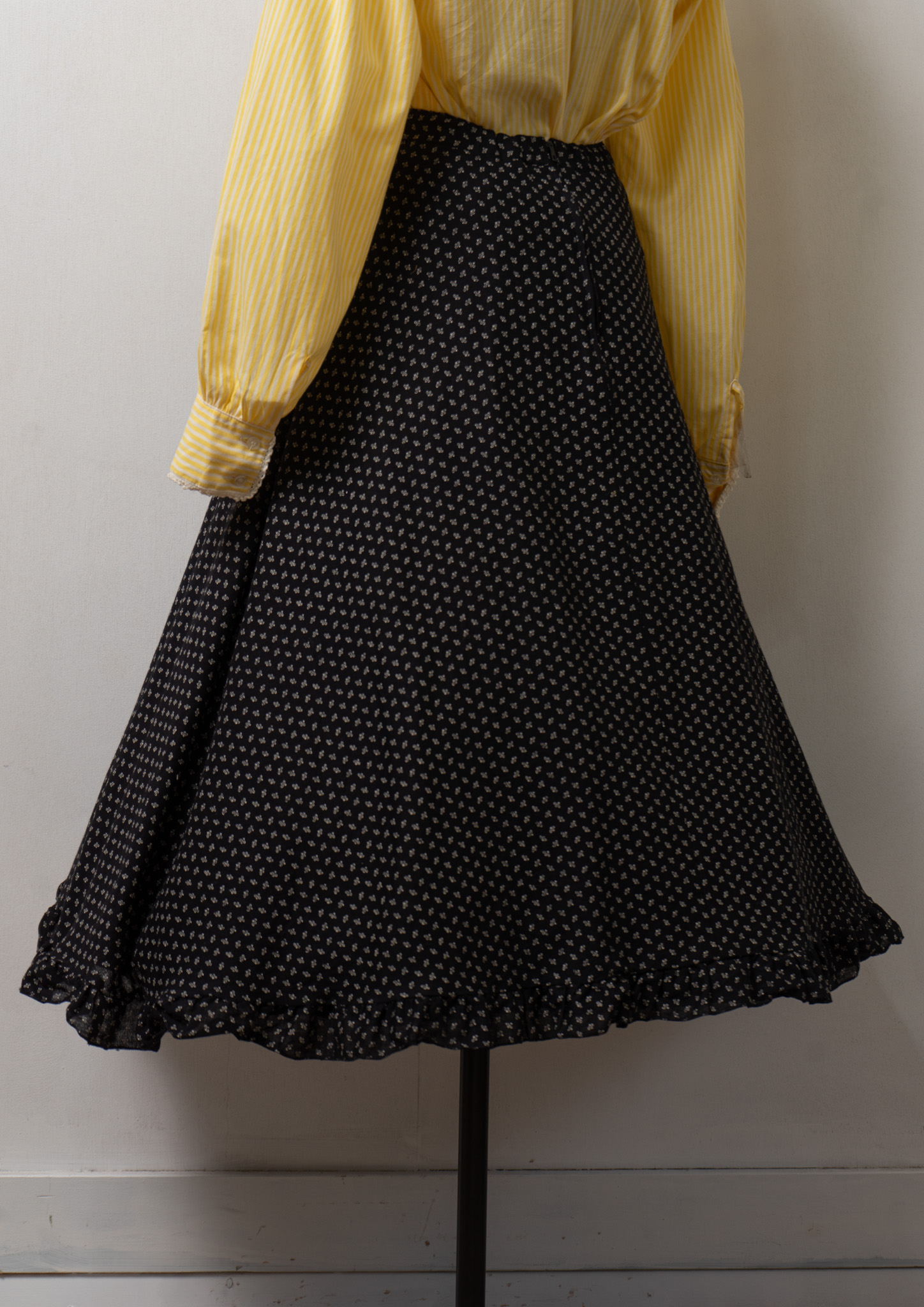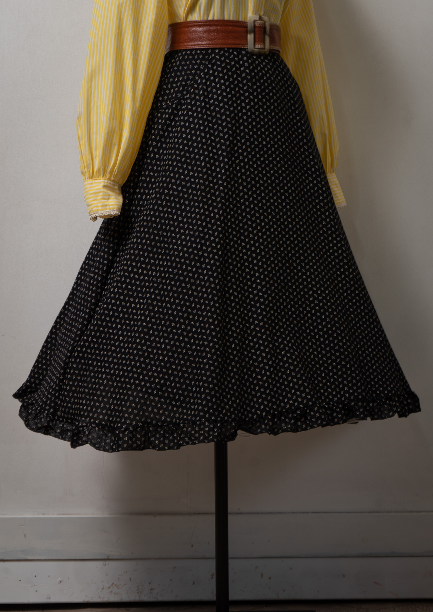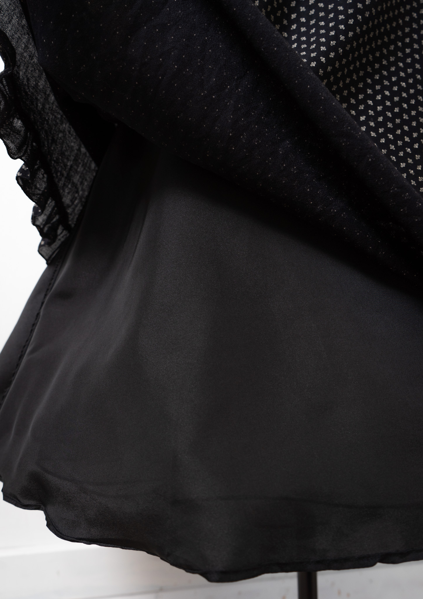 80's Euro Velours & Embroidery Tape Design Black Sheer Skirt