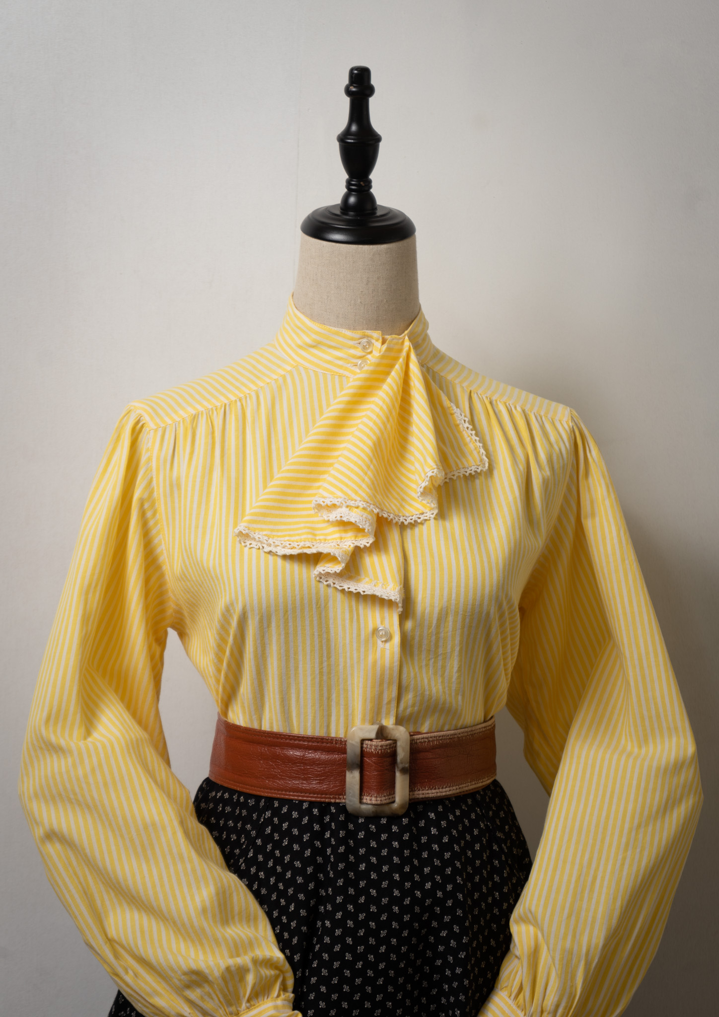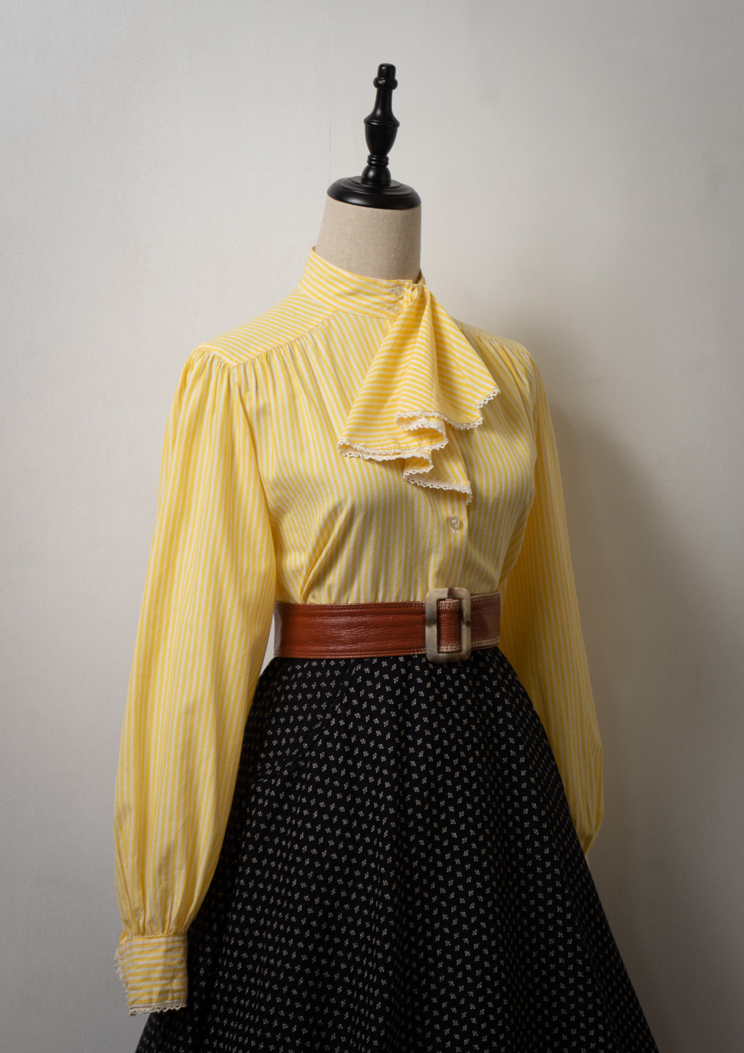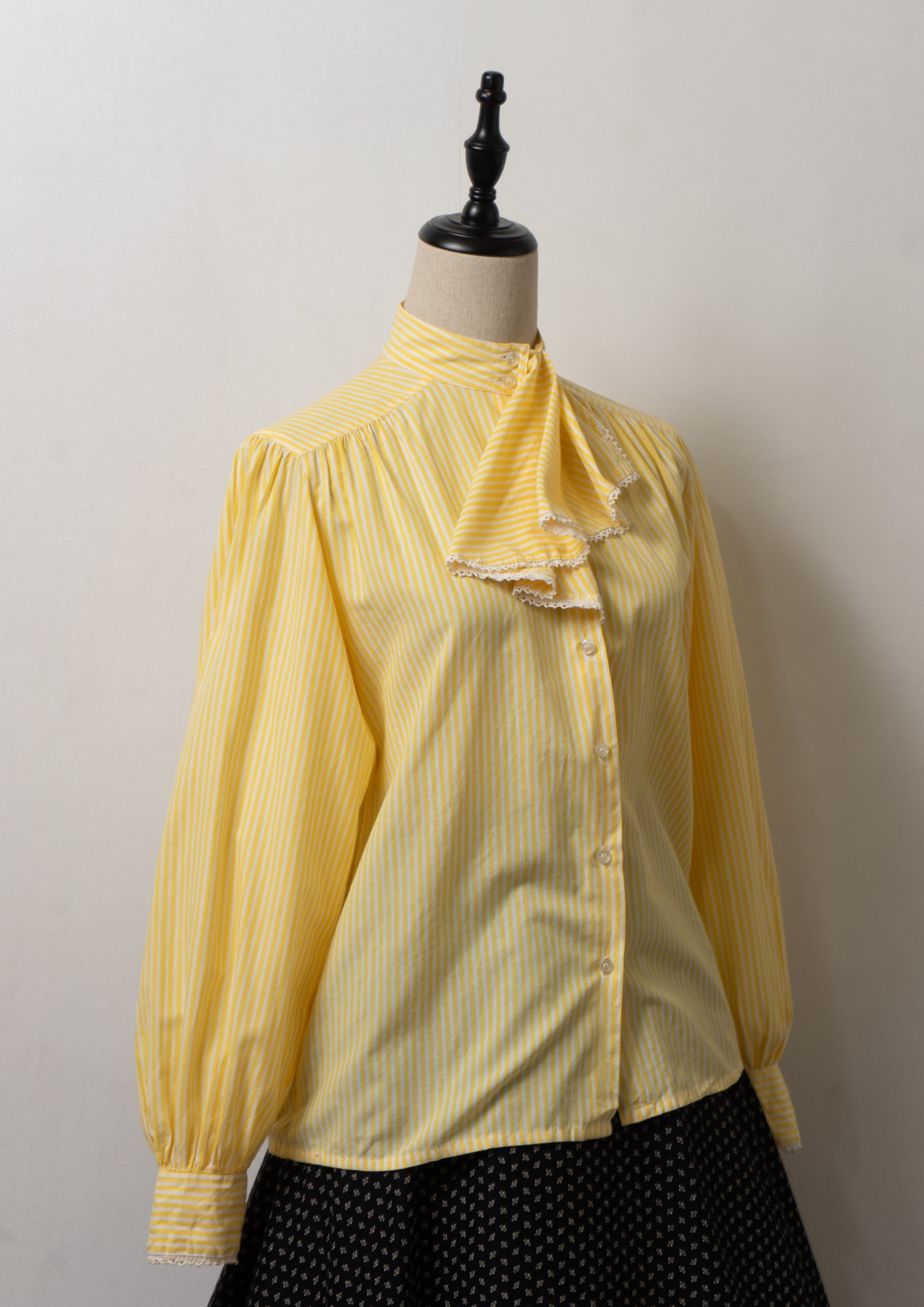 70's Jabot Collar Stripe Pattern Yellow Blouse