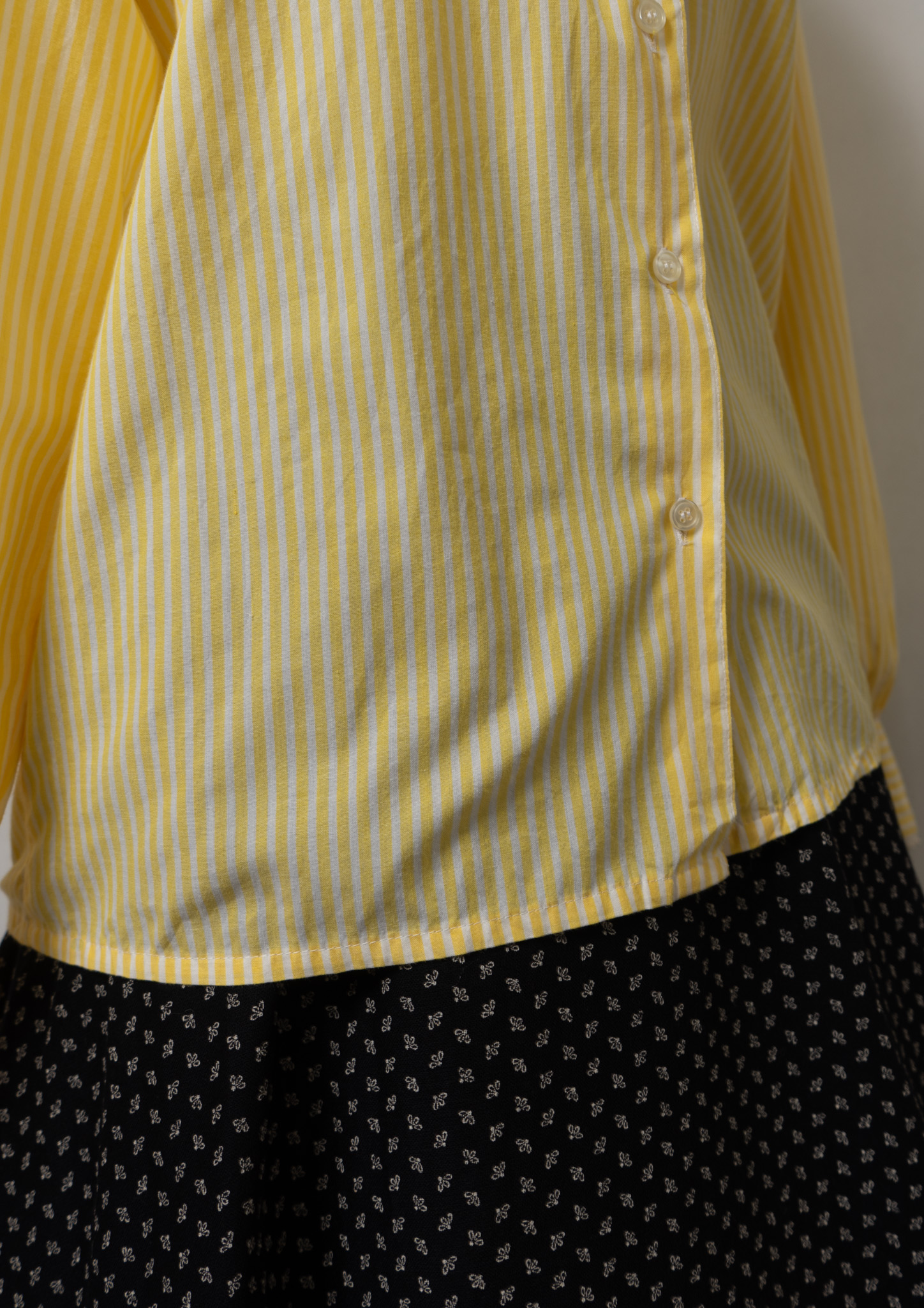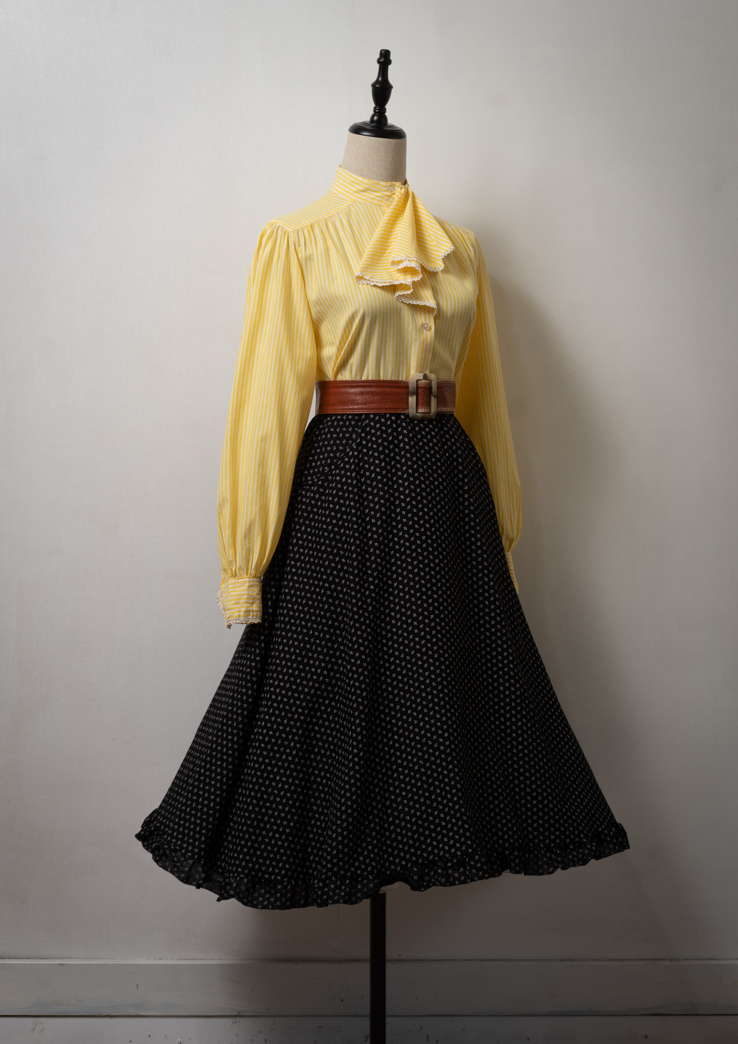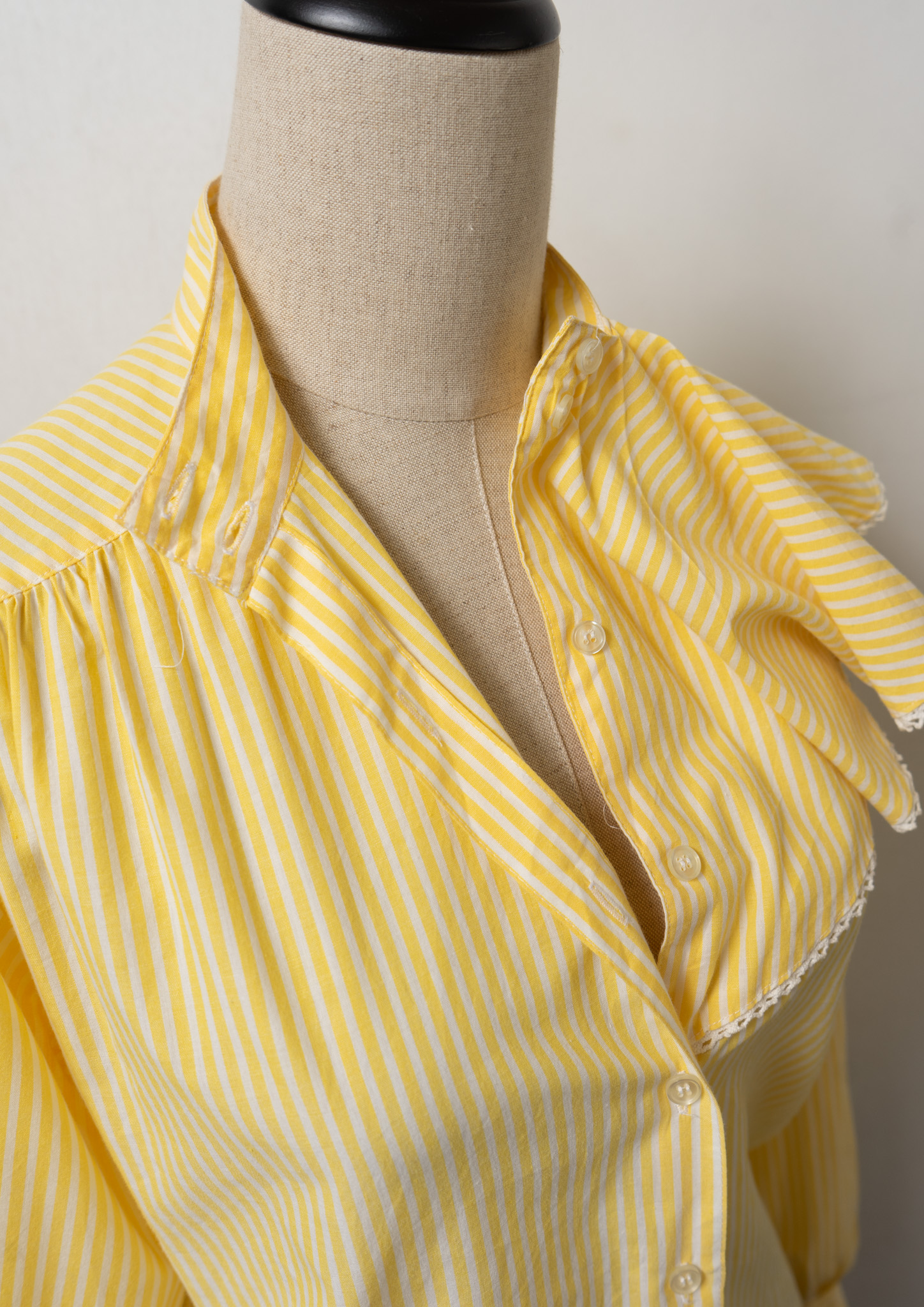 70's Jabot Collar Stripe Pattern Yellow Blouse