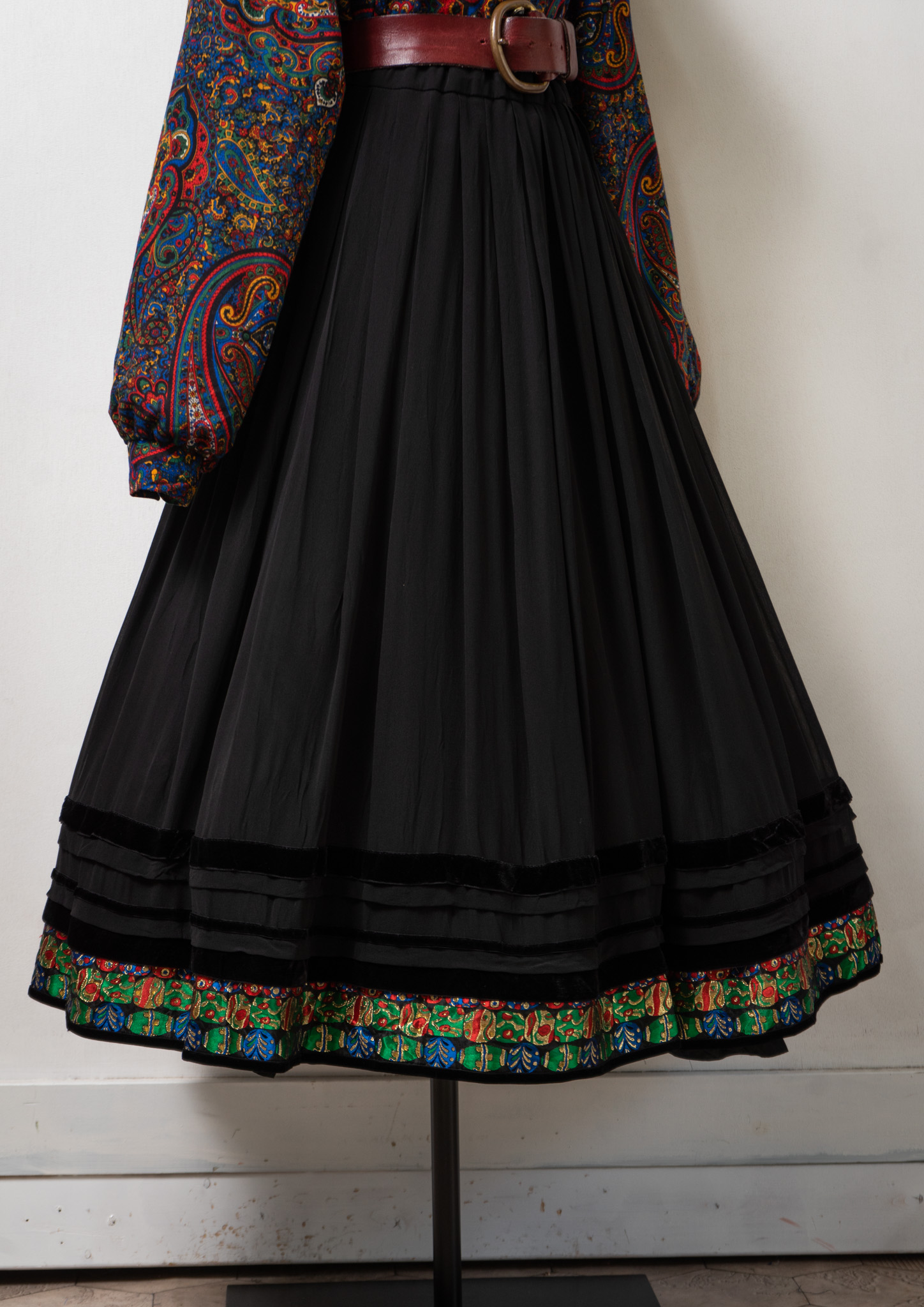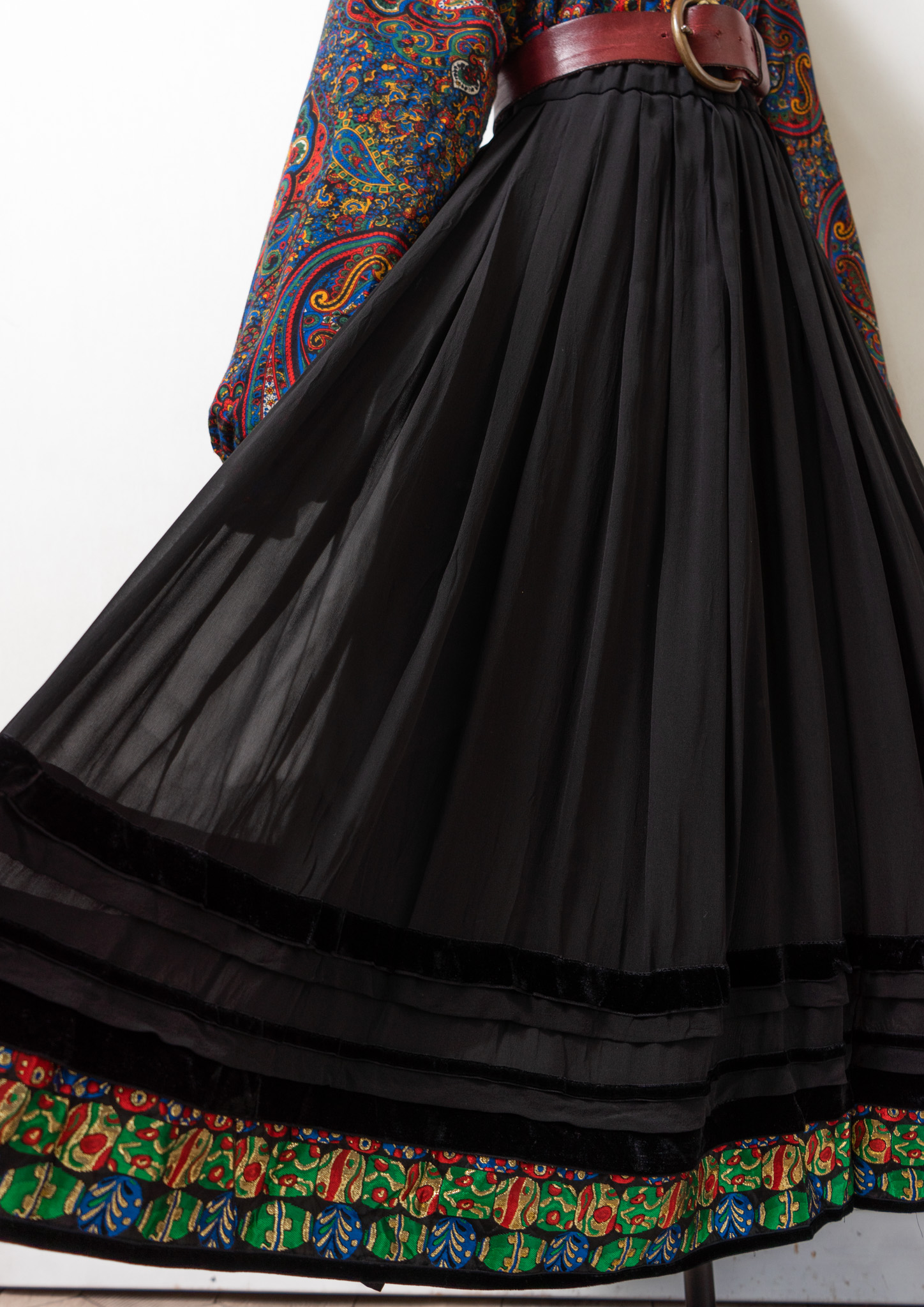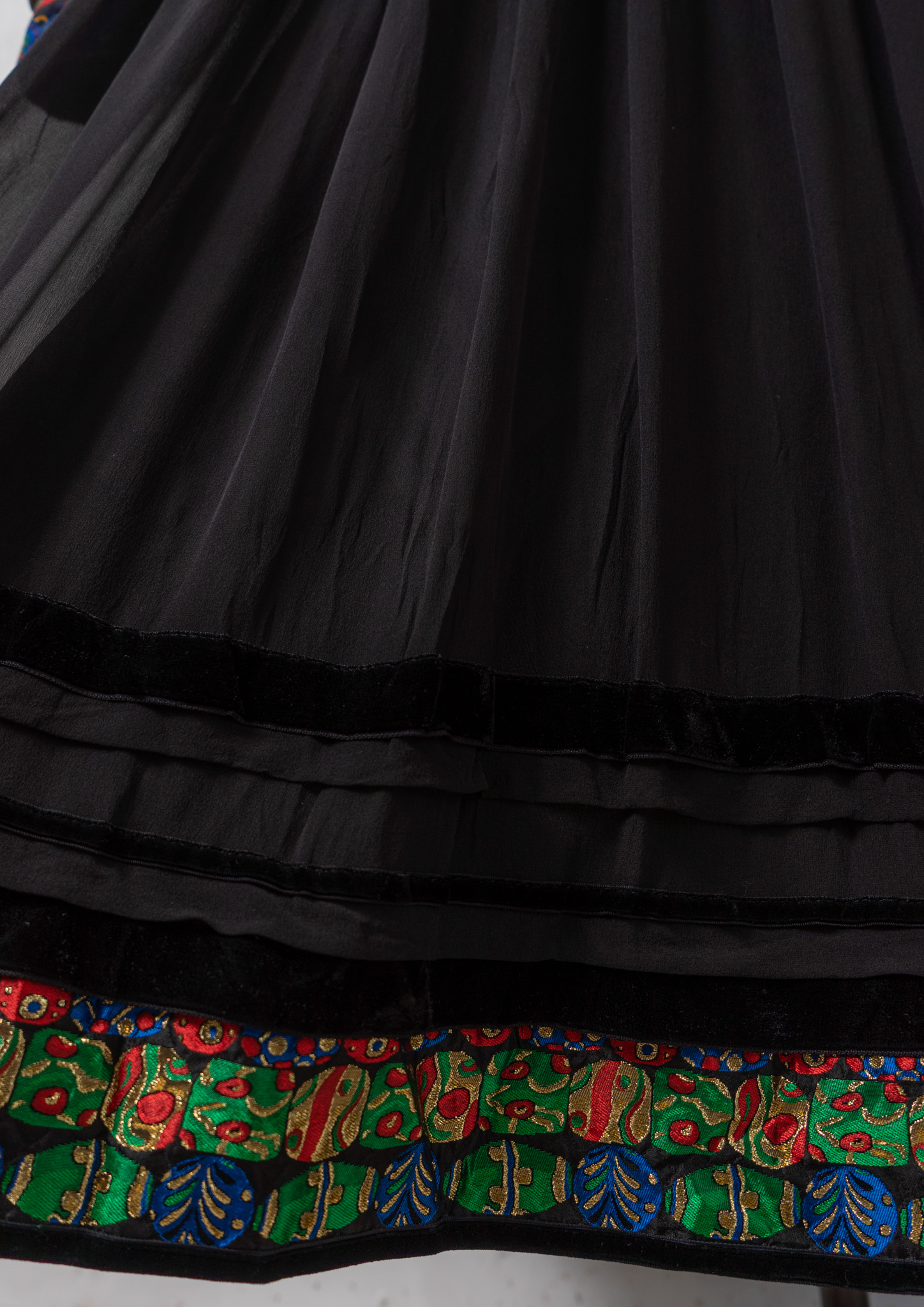 80's Euro Velours & Embroidery Tape Design Black Sheer Skirt