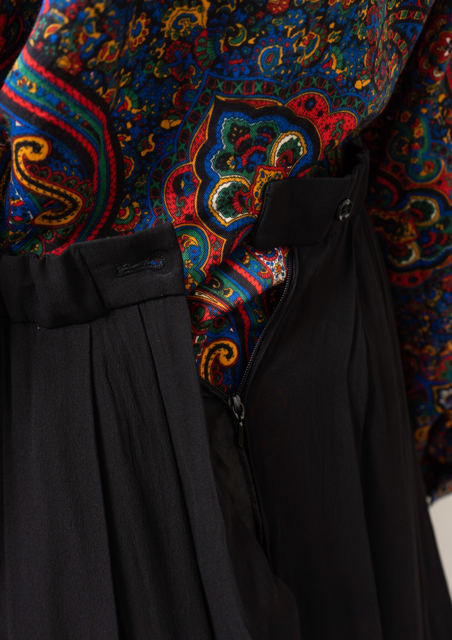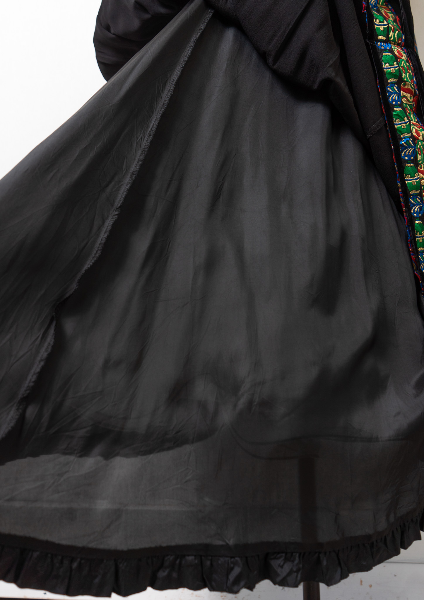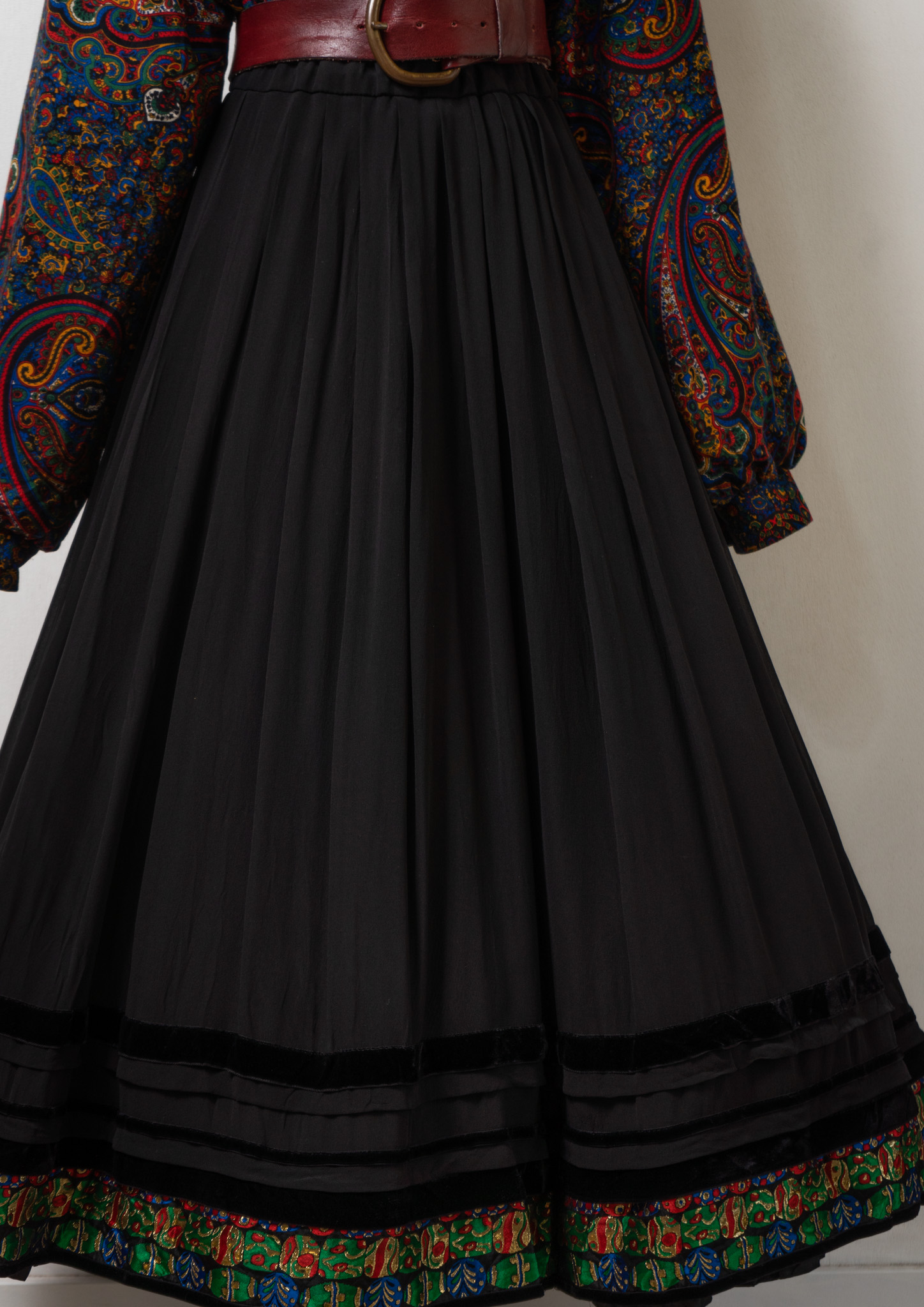 80's Euro Velours & Embroidery Tape Design Black Sheer Skirt
