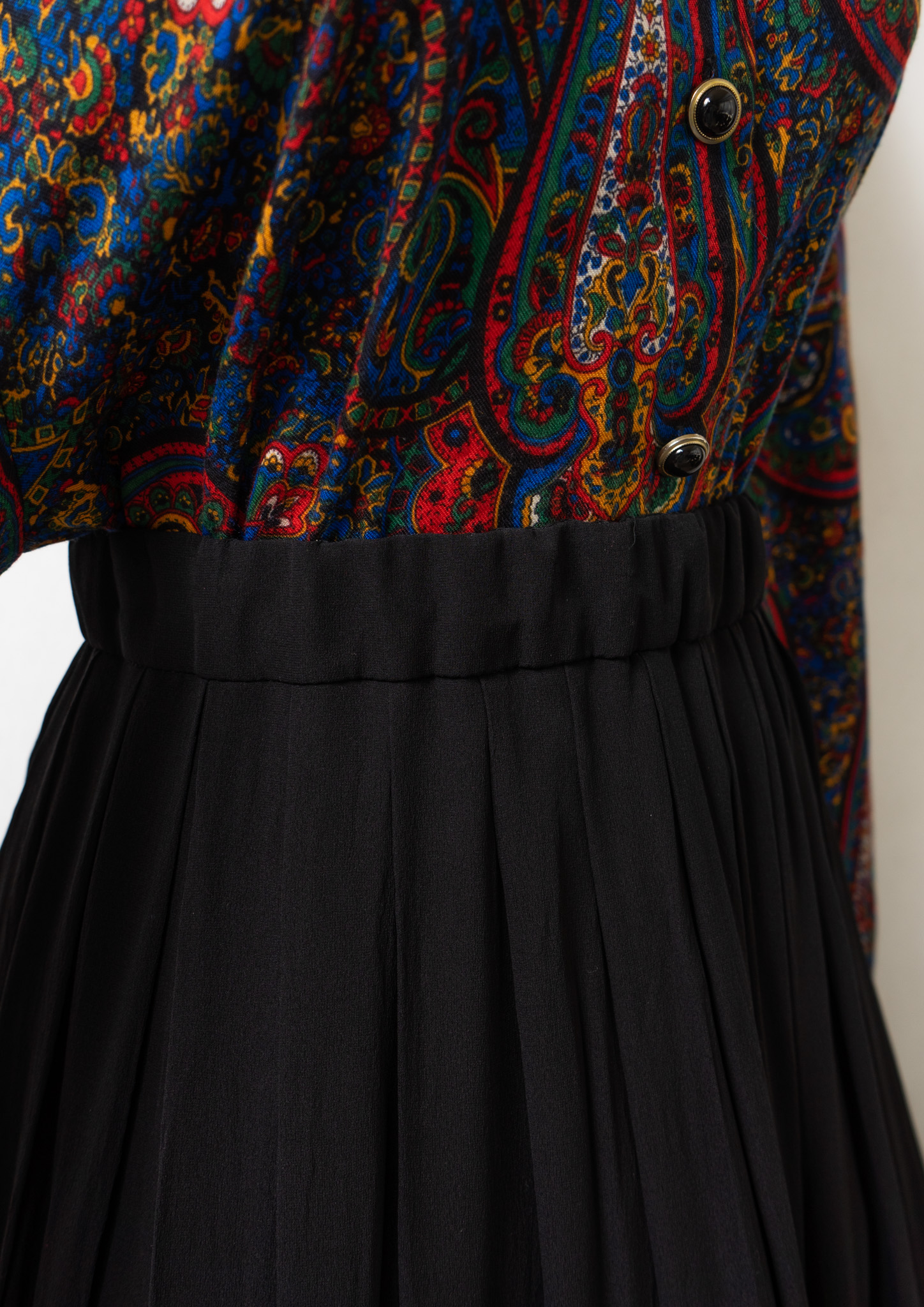 90's Red Dashed Line Diamond Pattern Black Pleats Skirt