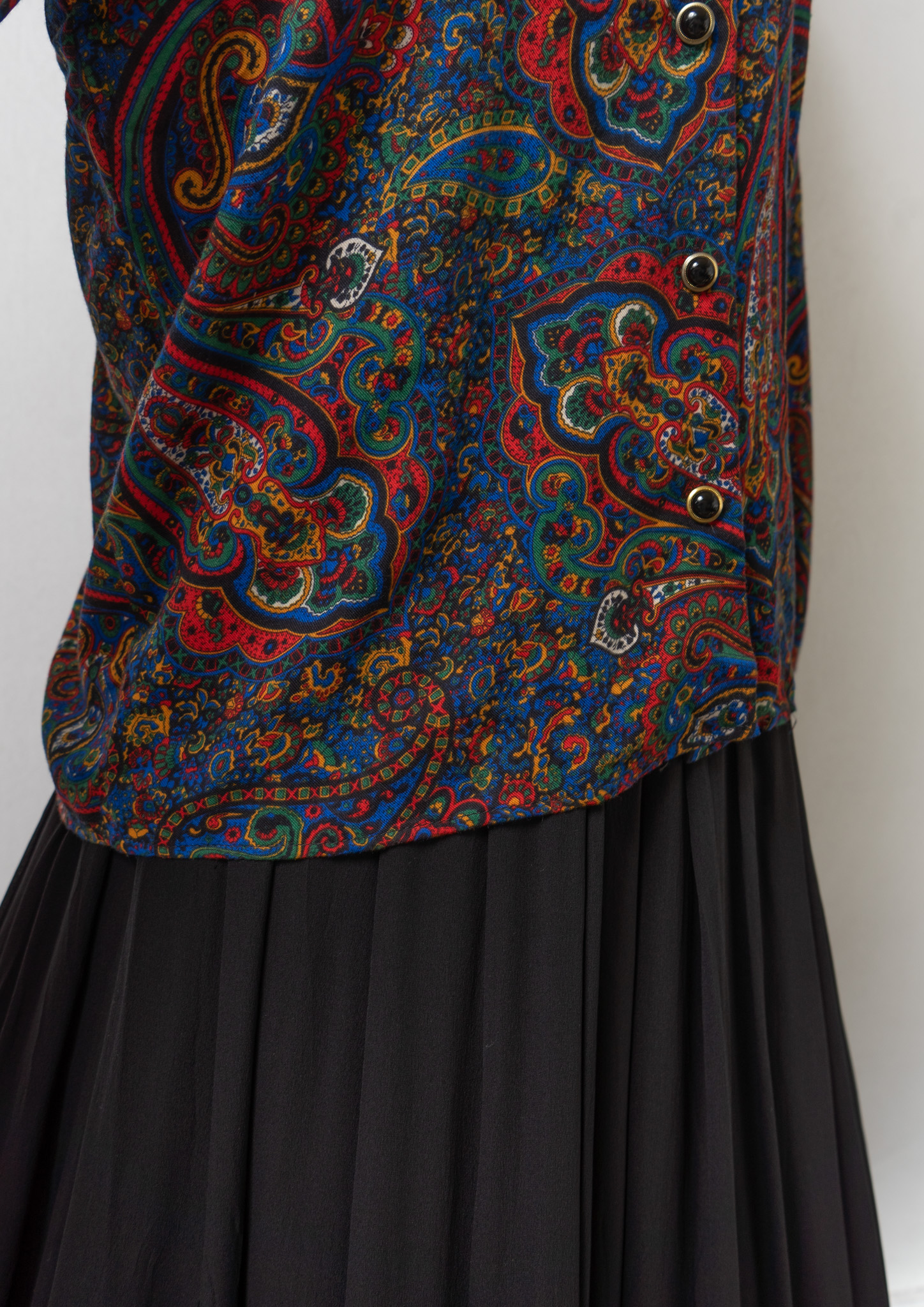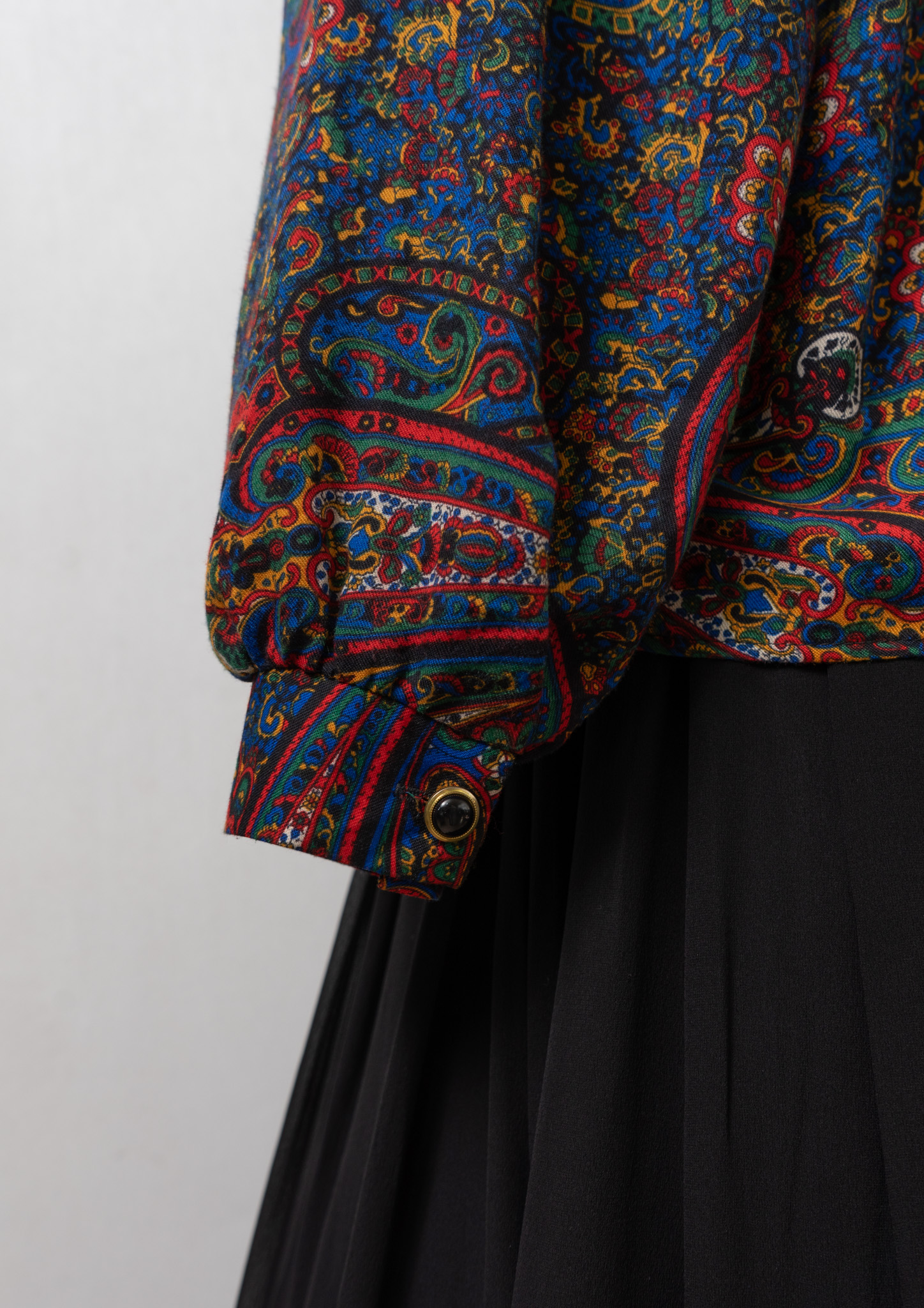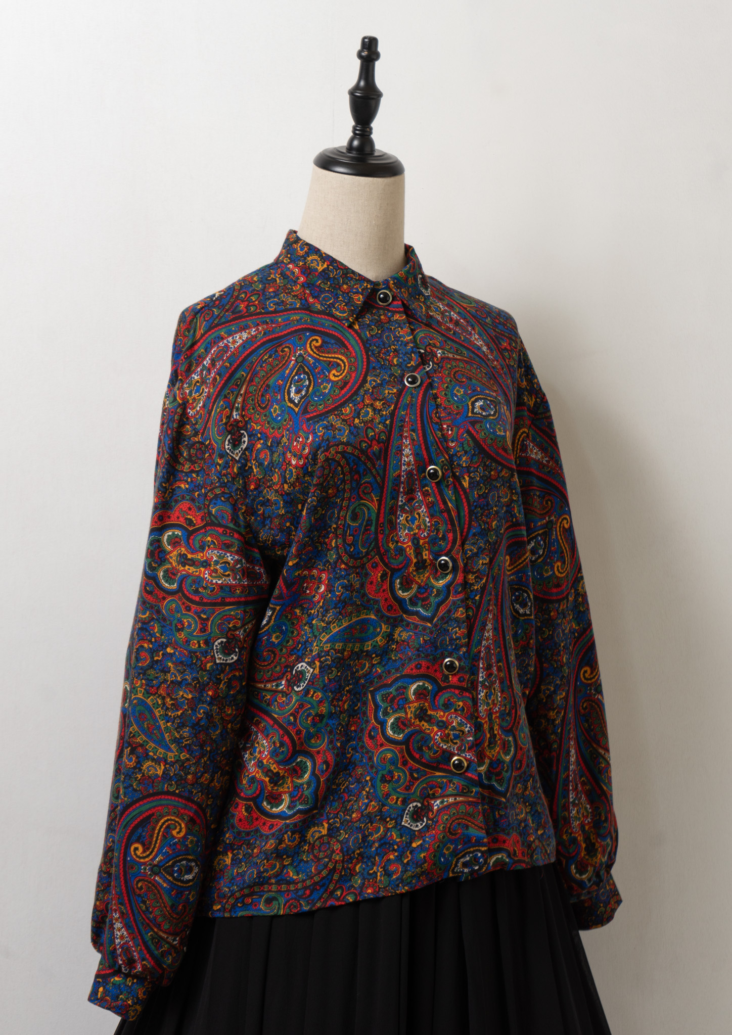 80's LESLIE FAY Paisley Pattern Double Pocket Design Blouse