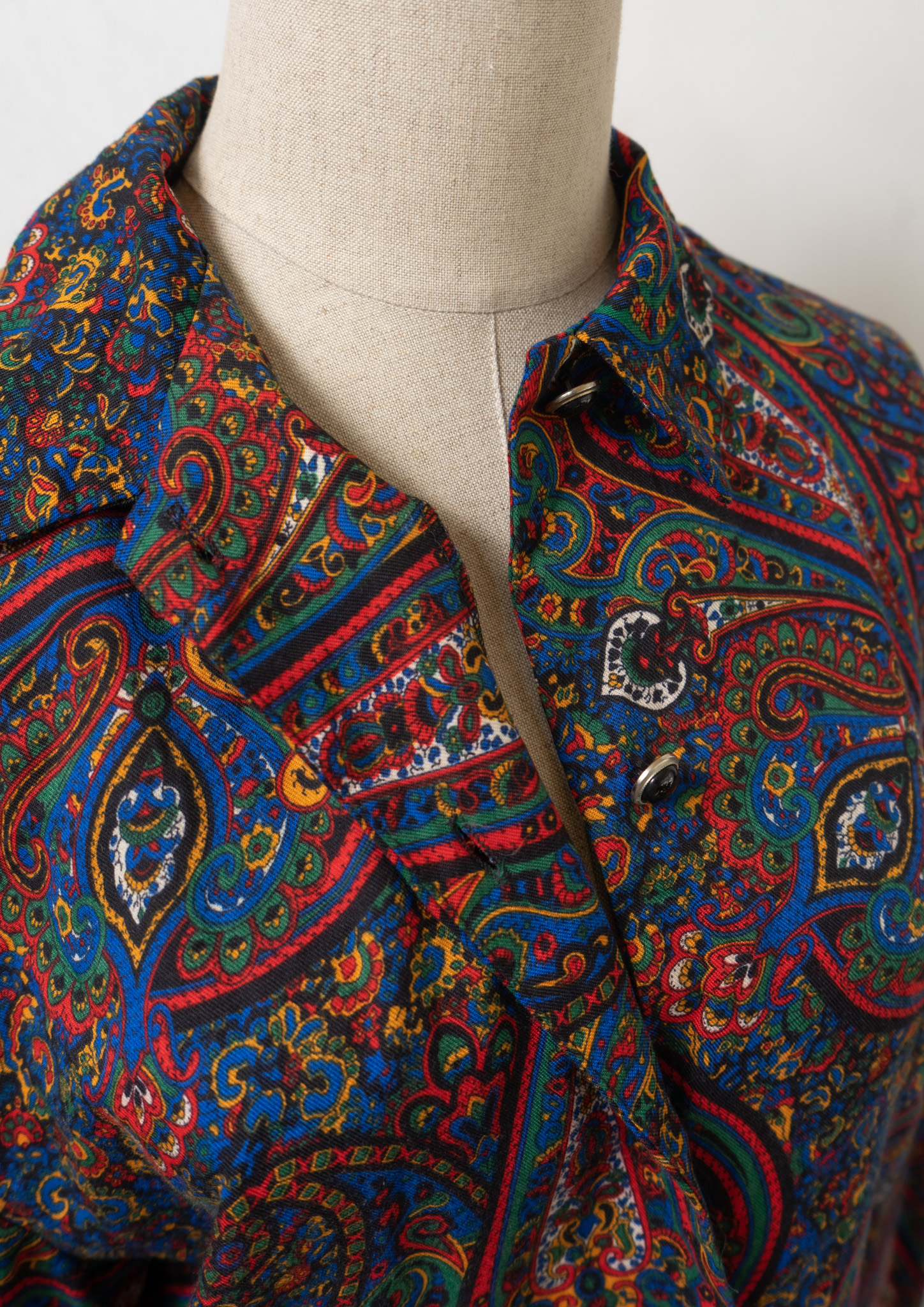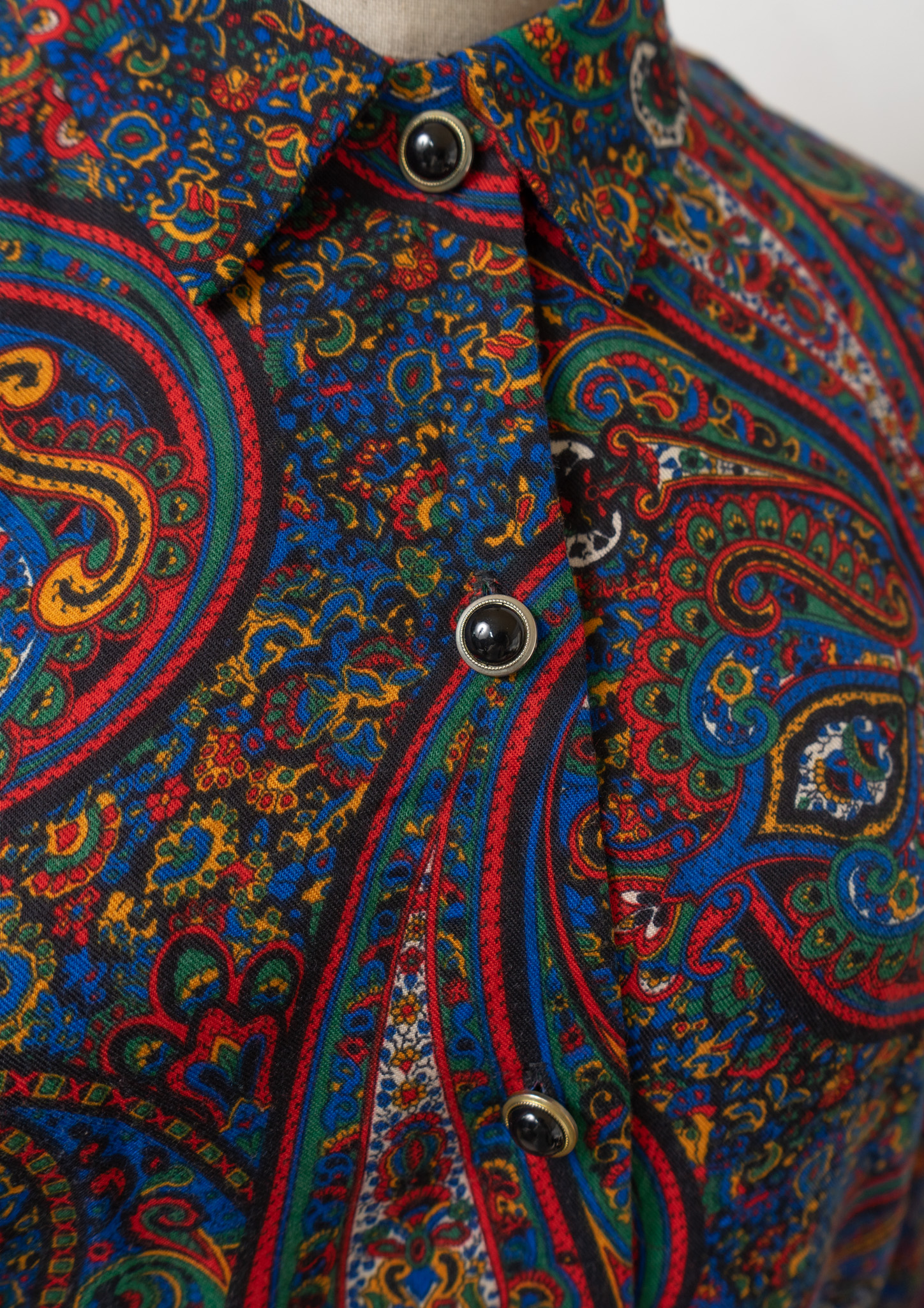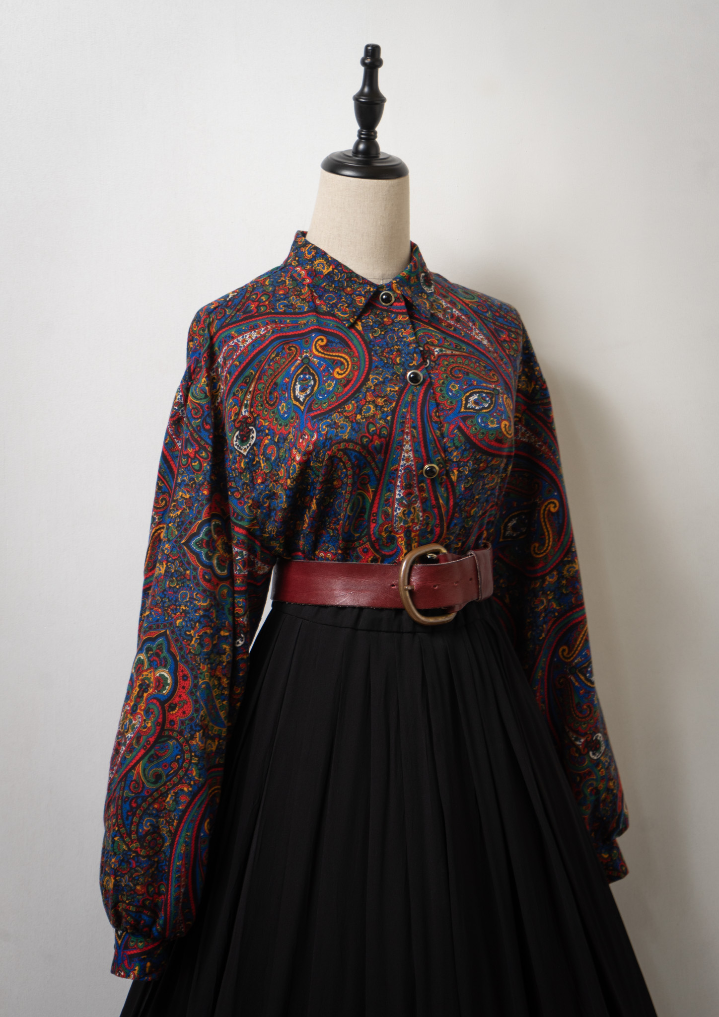 80's LESLIE FAY Paisley Pattern Double Pocket Design Blouse