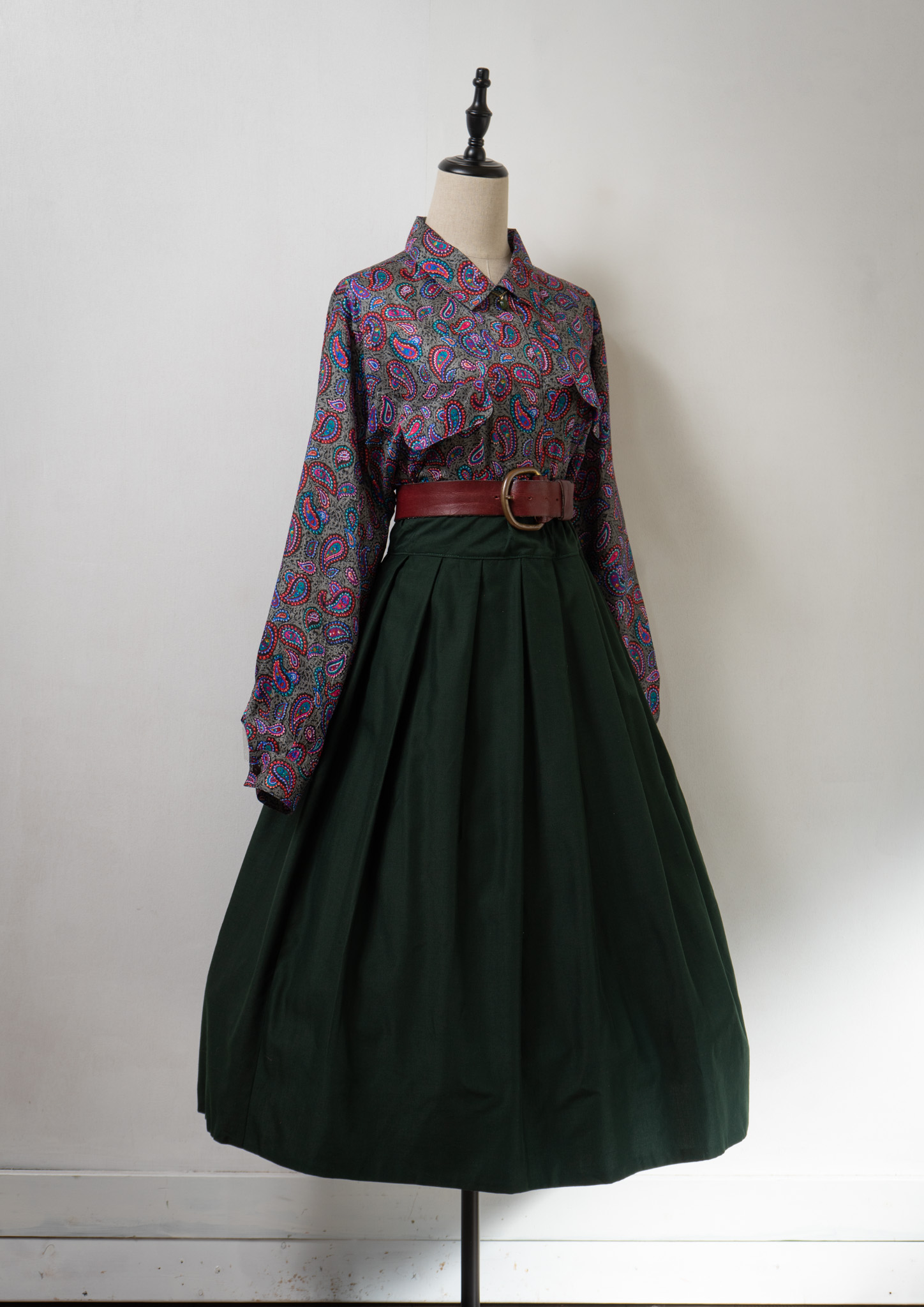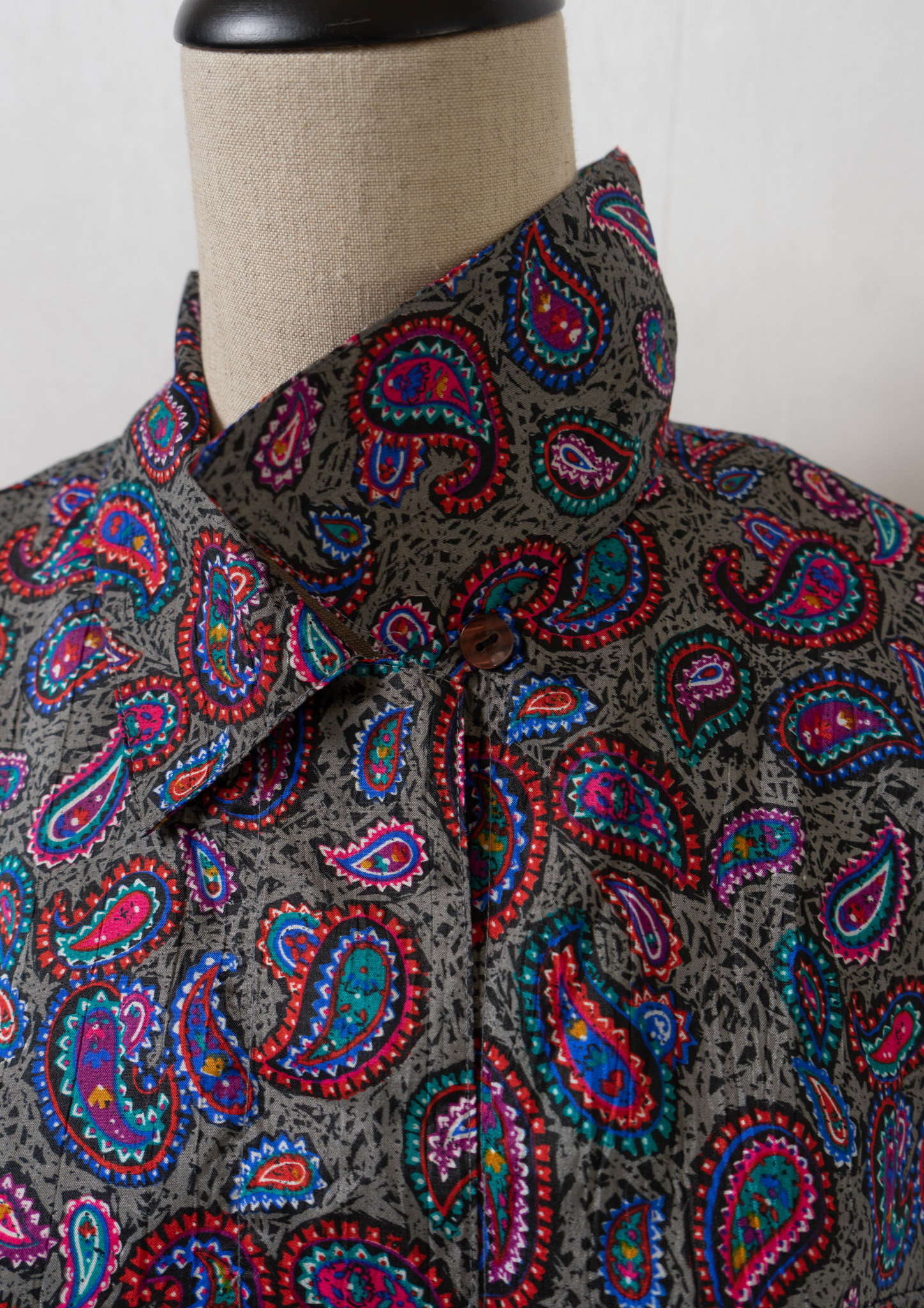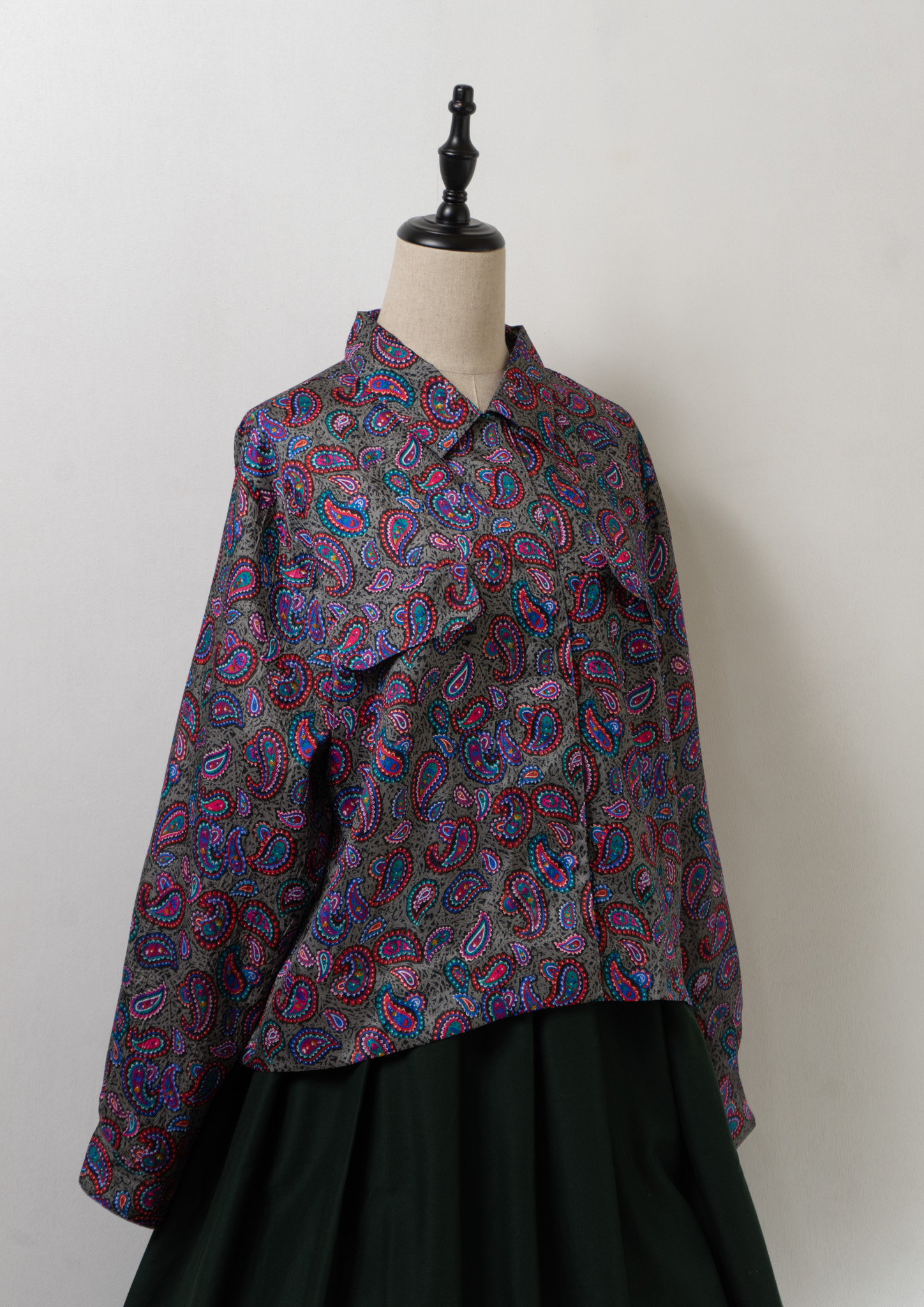 80's LESLIE FAY Paisley Pattern Double Pocket Design Blouse