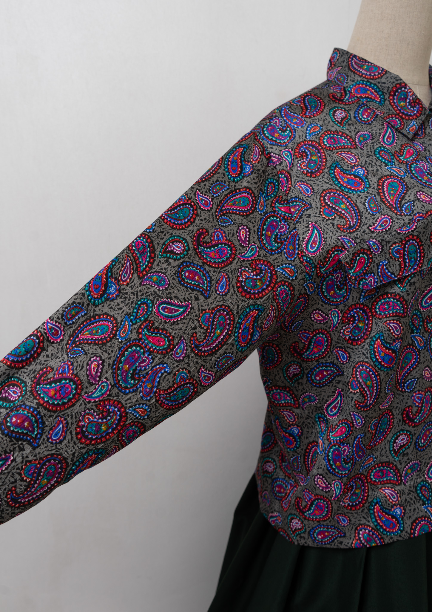 80~90's Botanical Paisley Pattern Multi Color Blouse