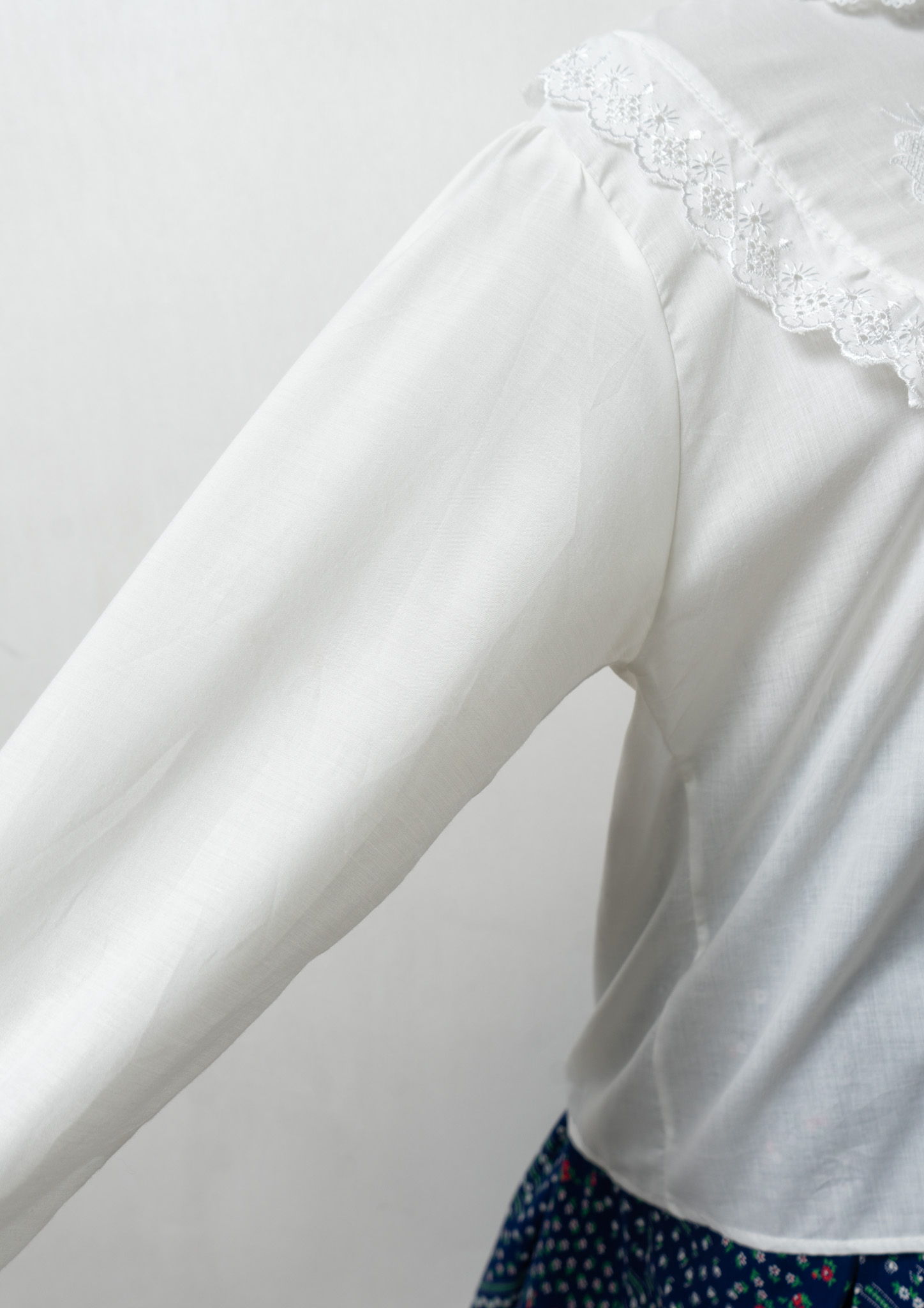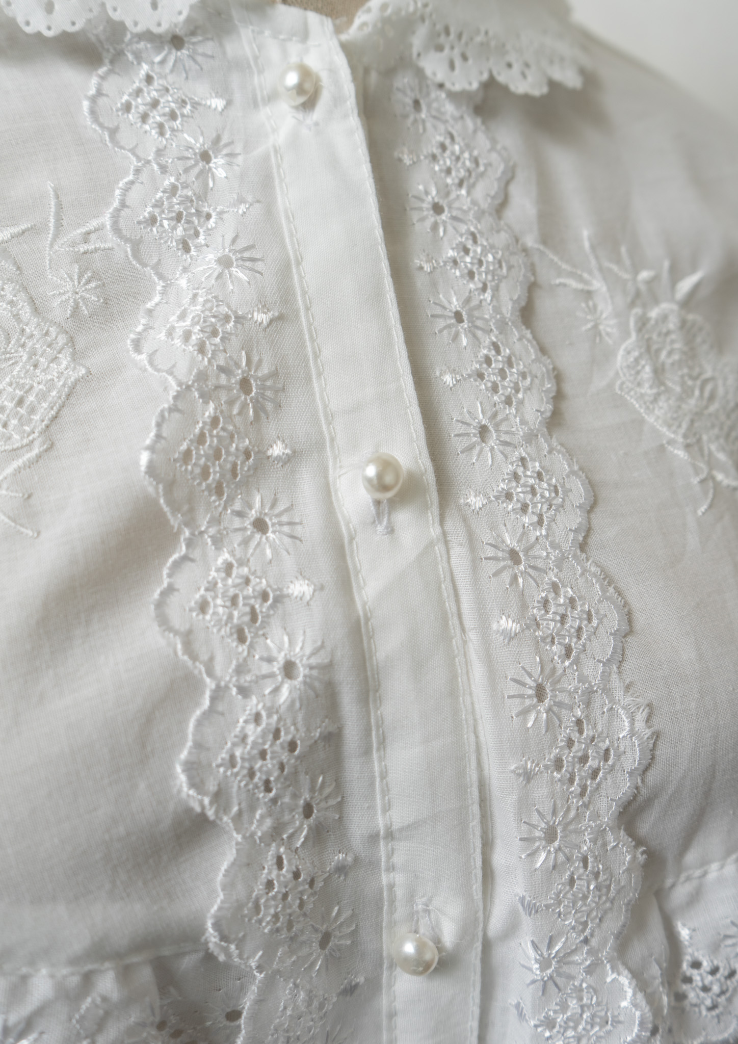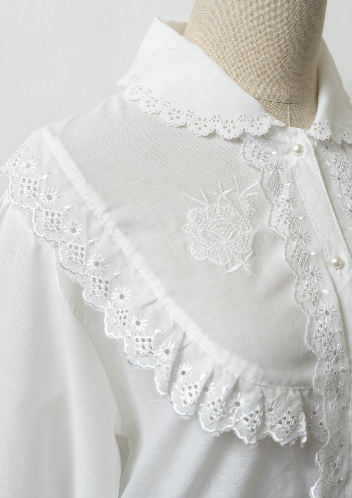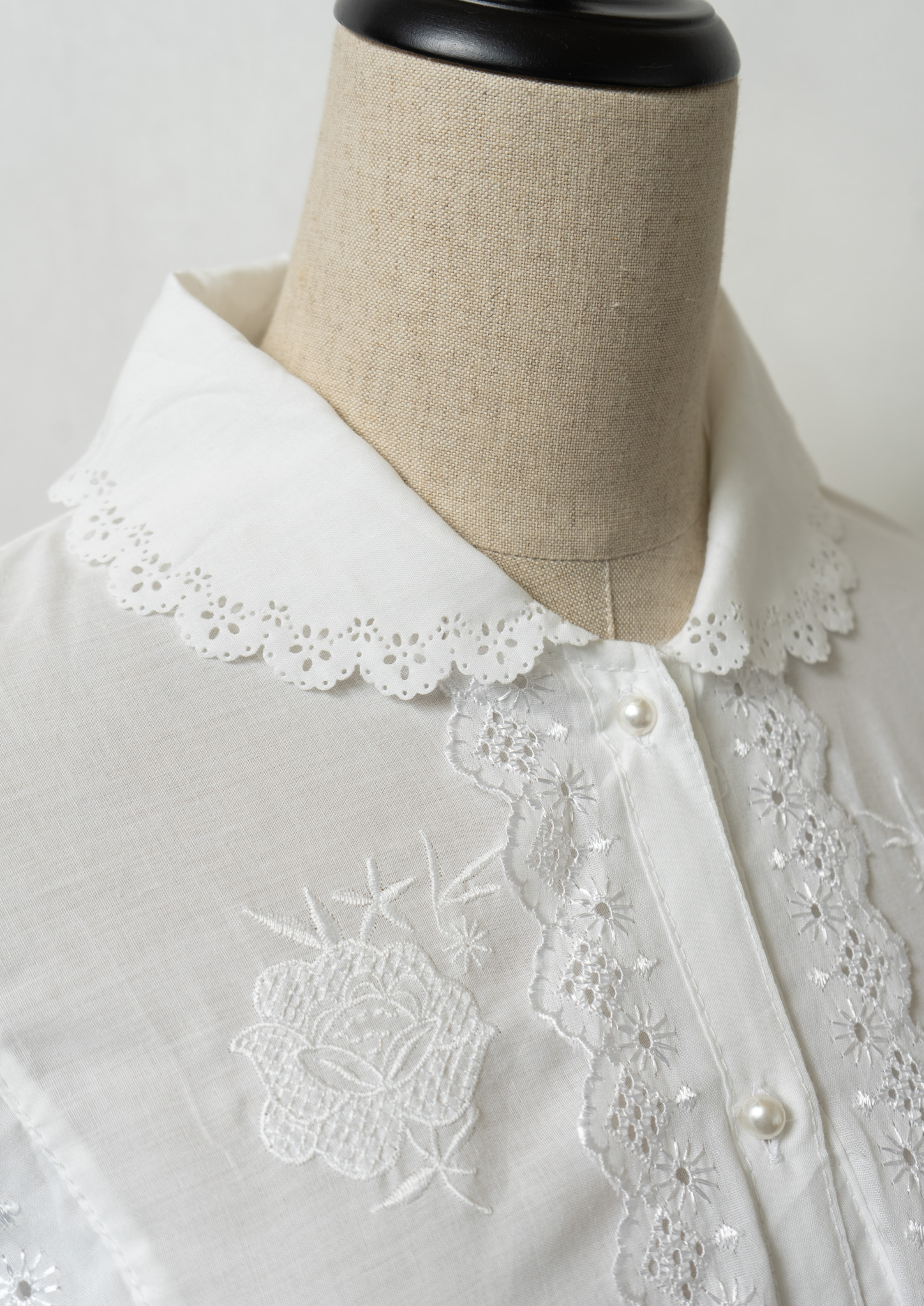 Flower Embroidery Scallop Lace Pattern White Blouse