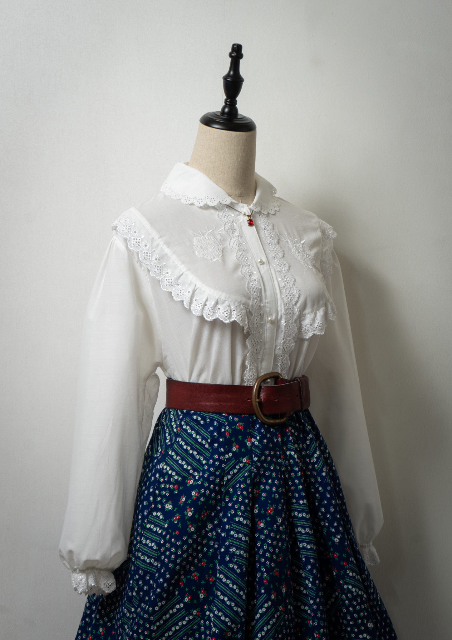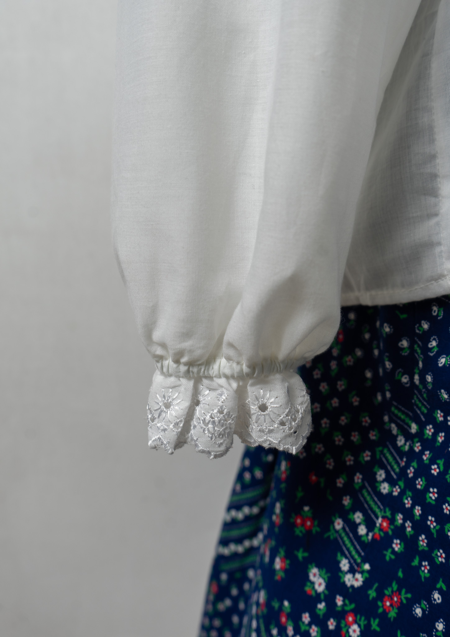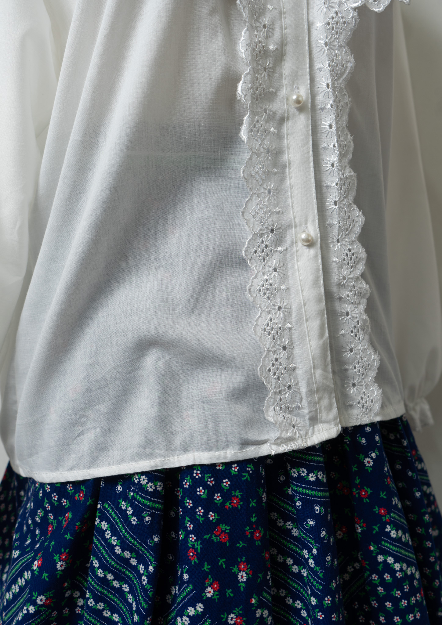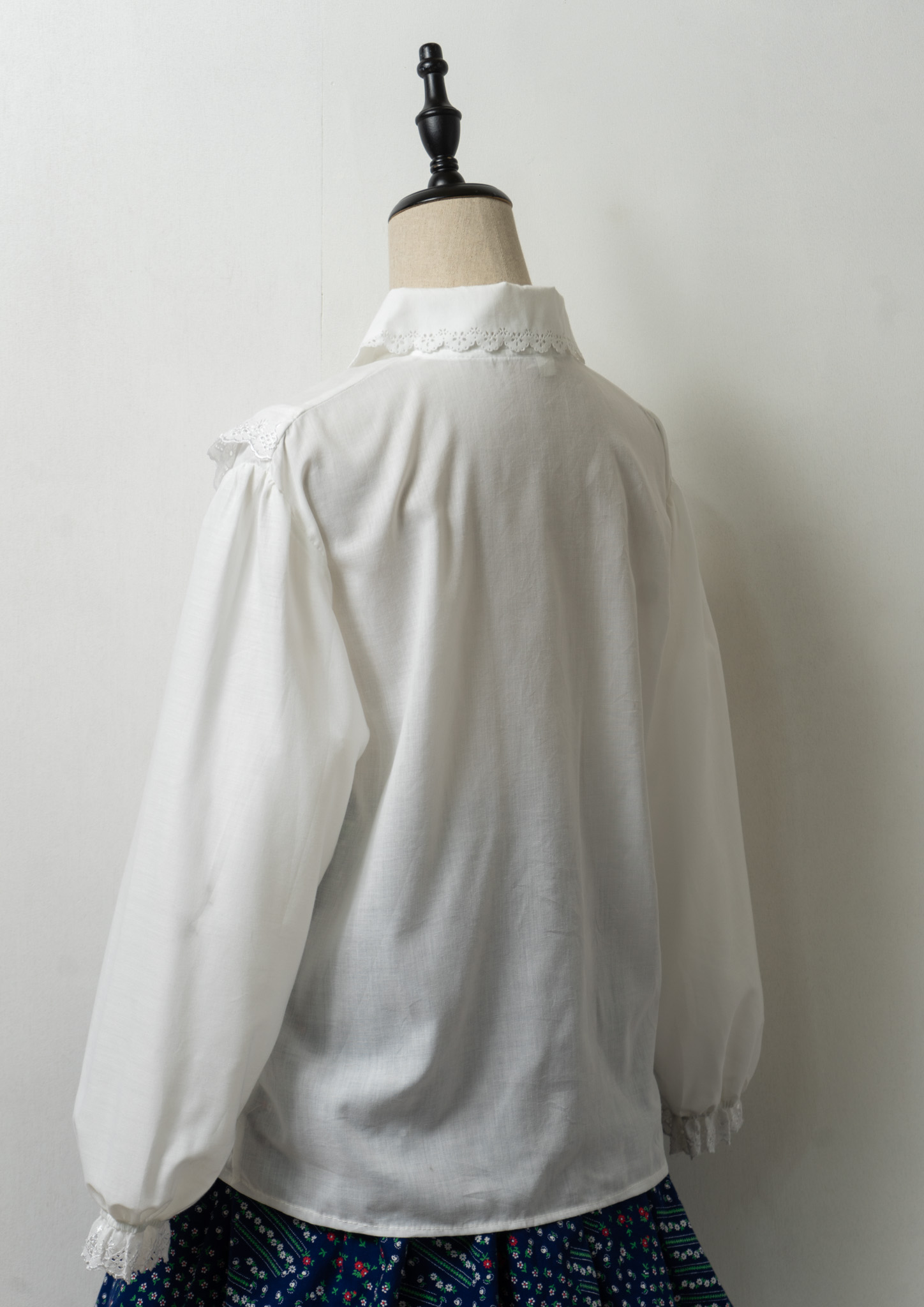 Flower Embroidery Scallop Lace Pattern White Blouse