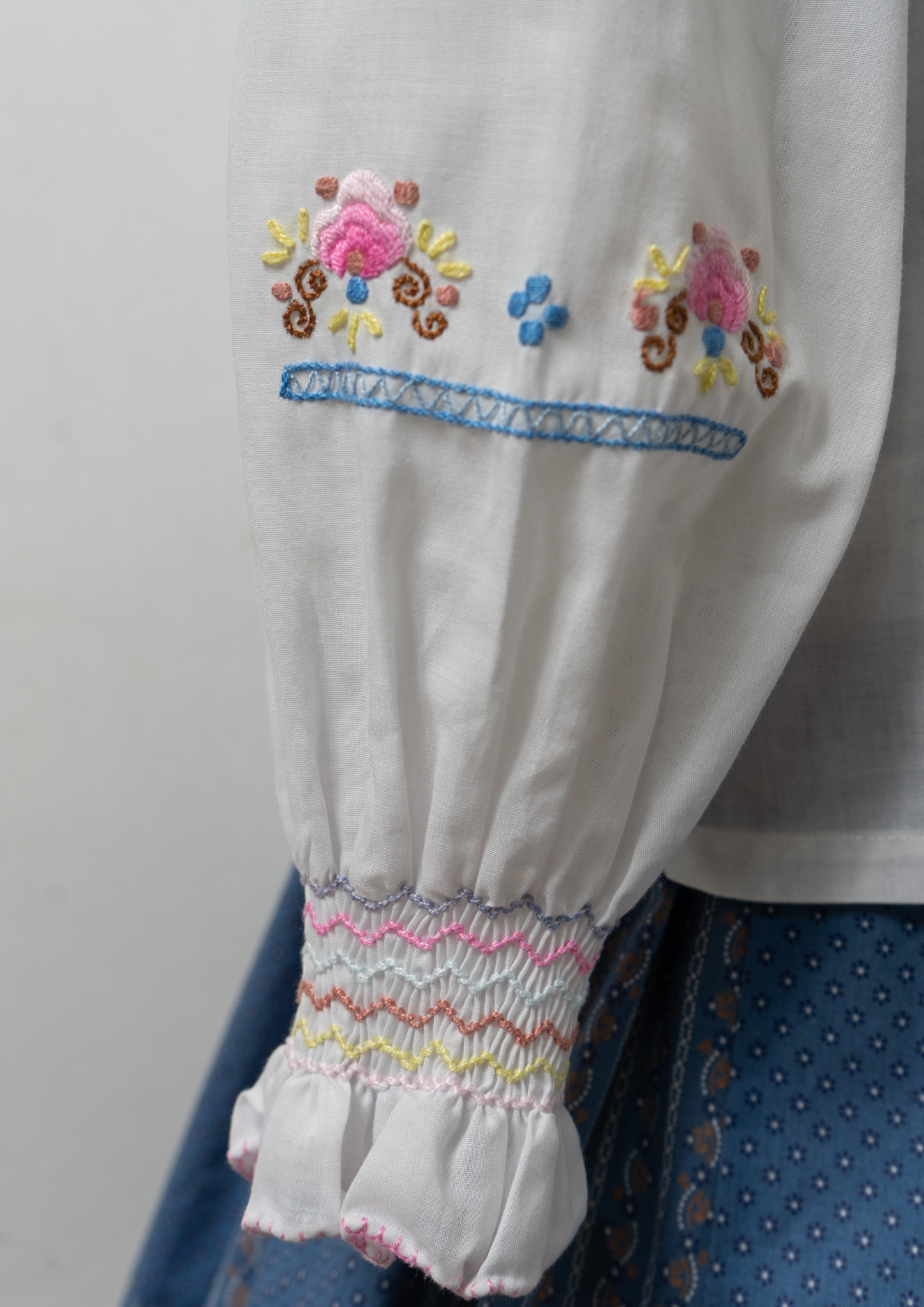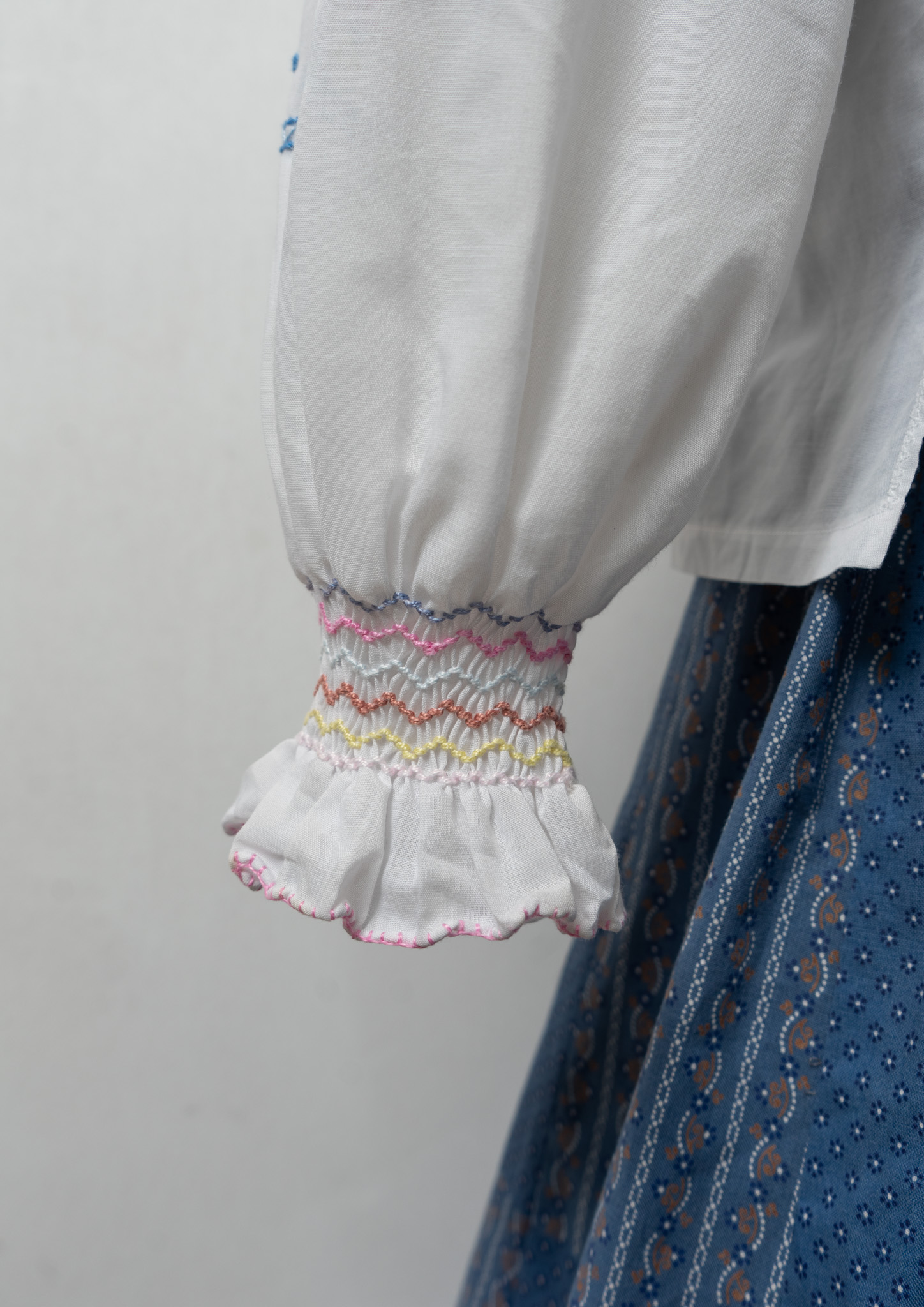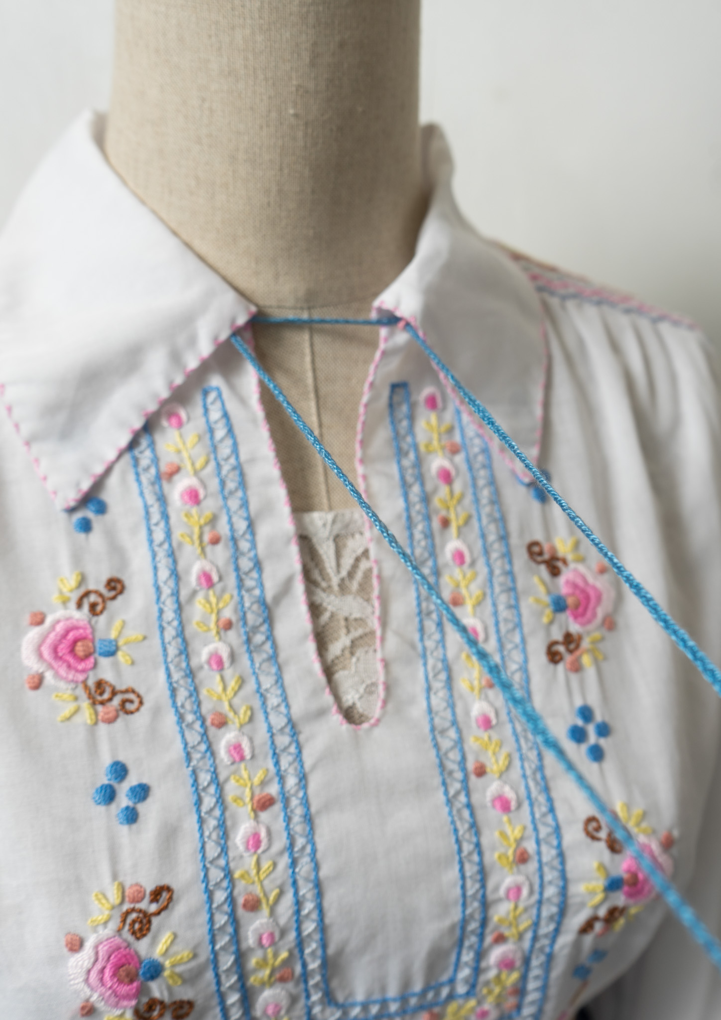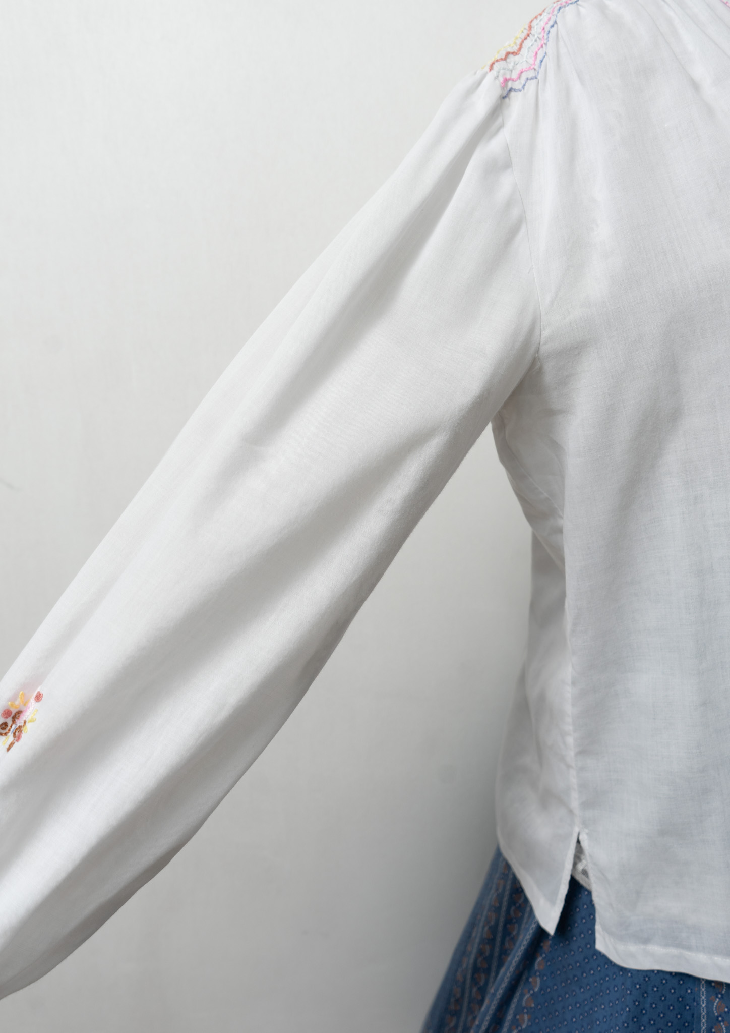 70's Multi Color Embroidery White Tops