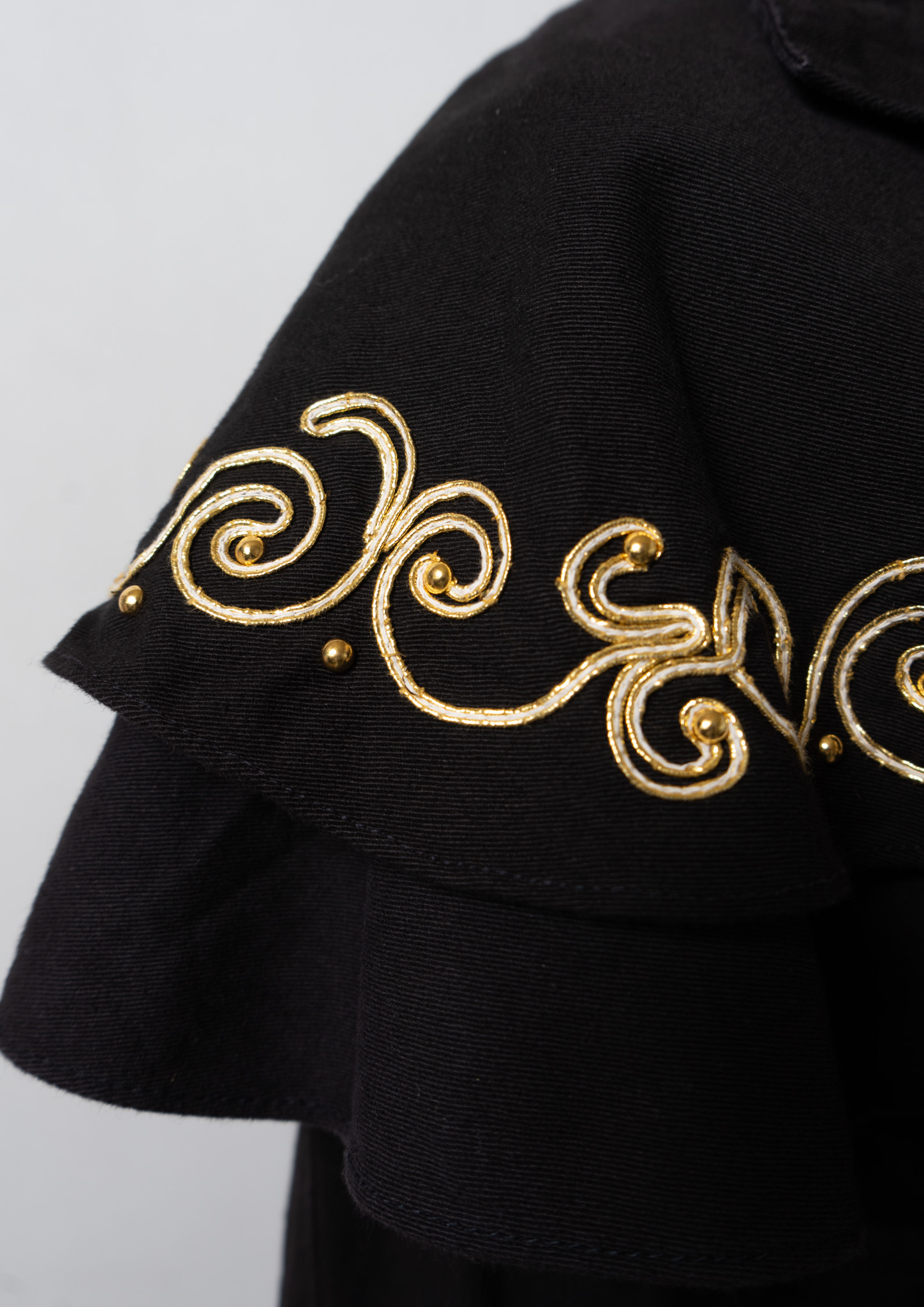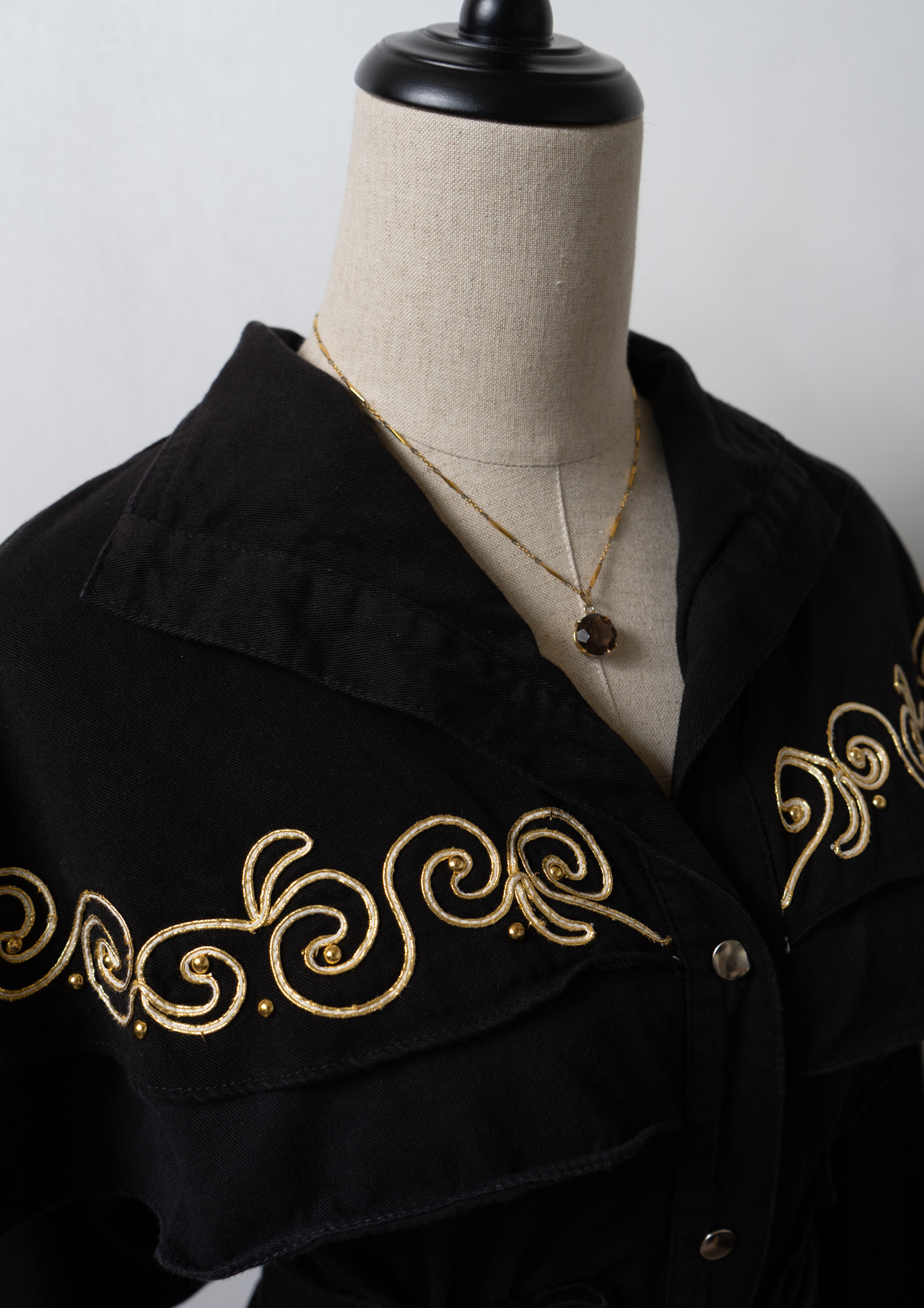 80's USA Gold Rope × Studs Design Black Dress