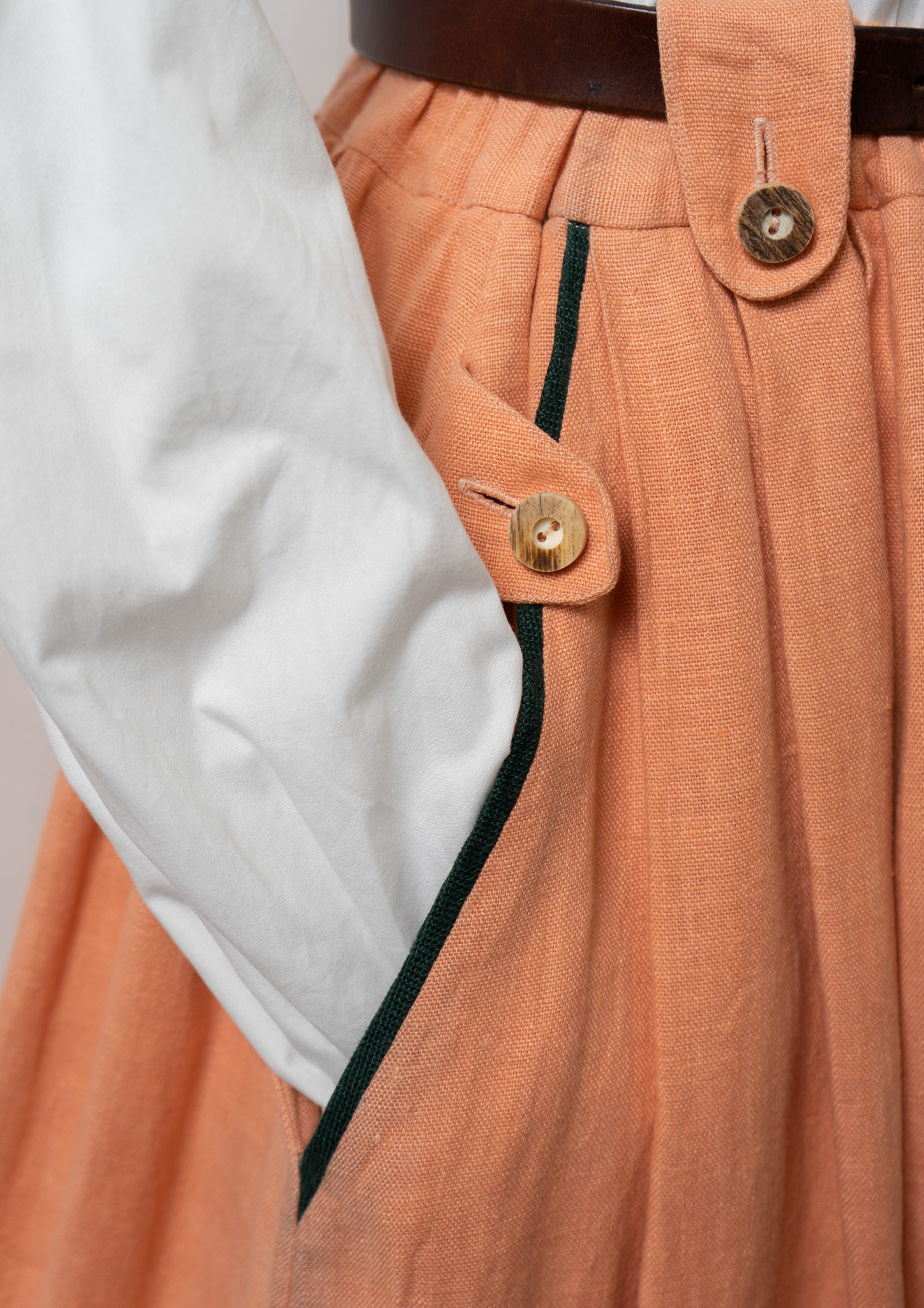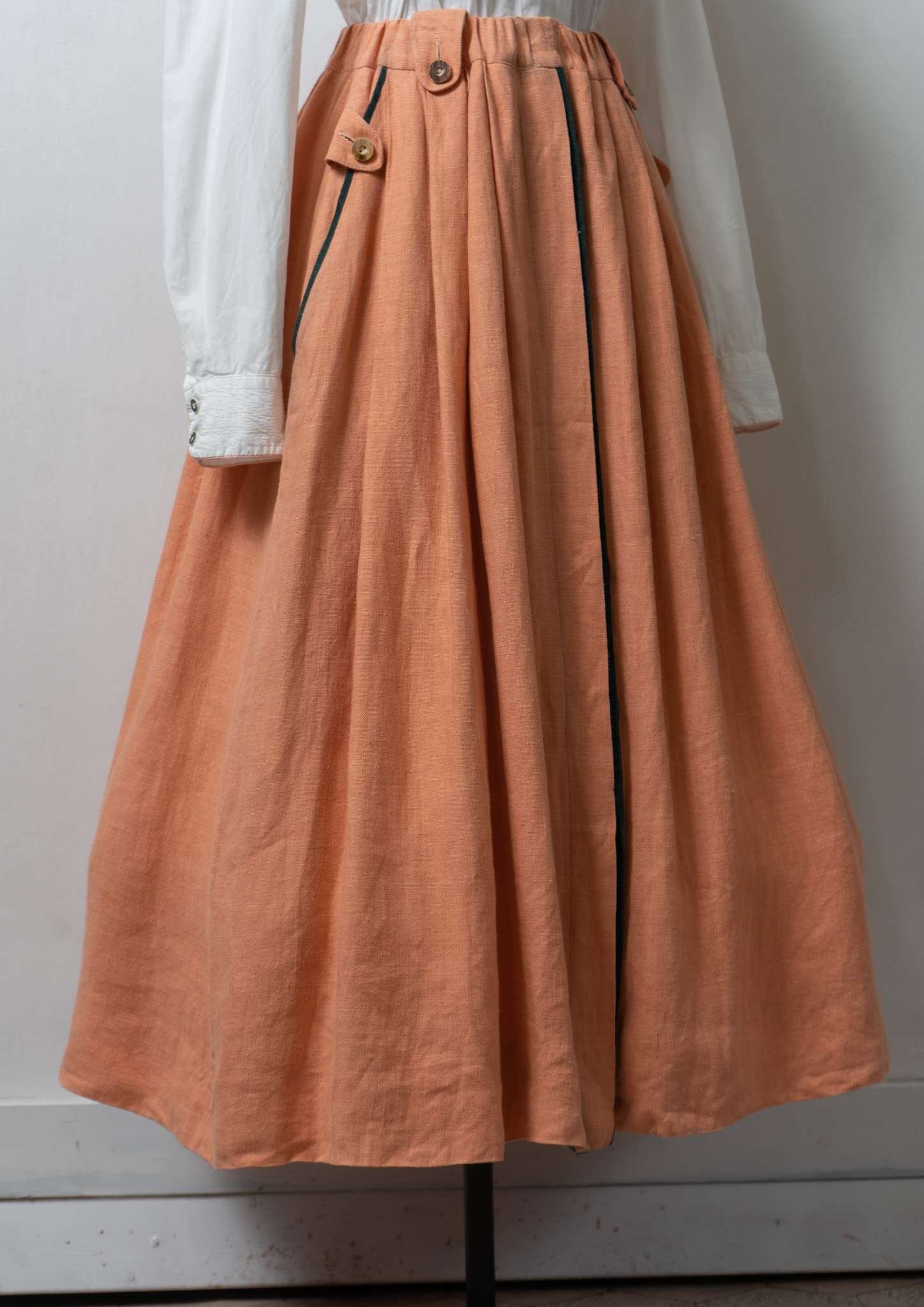 90's Green Piping Like Design Pale Orange Tyrol Skirt