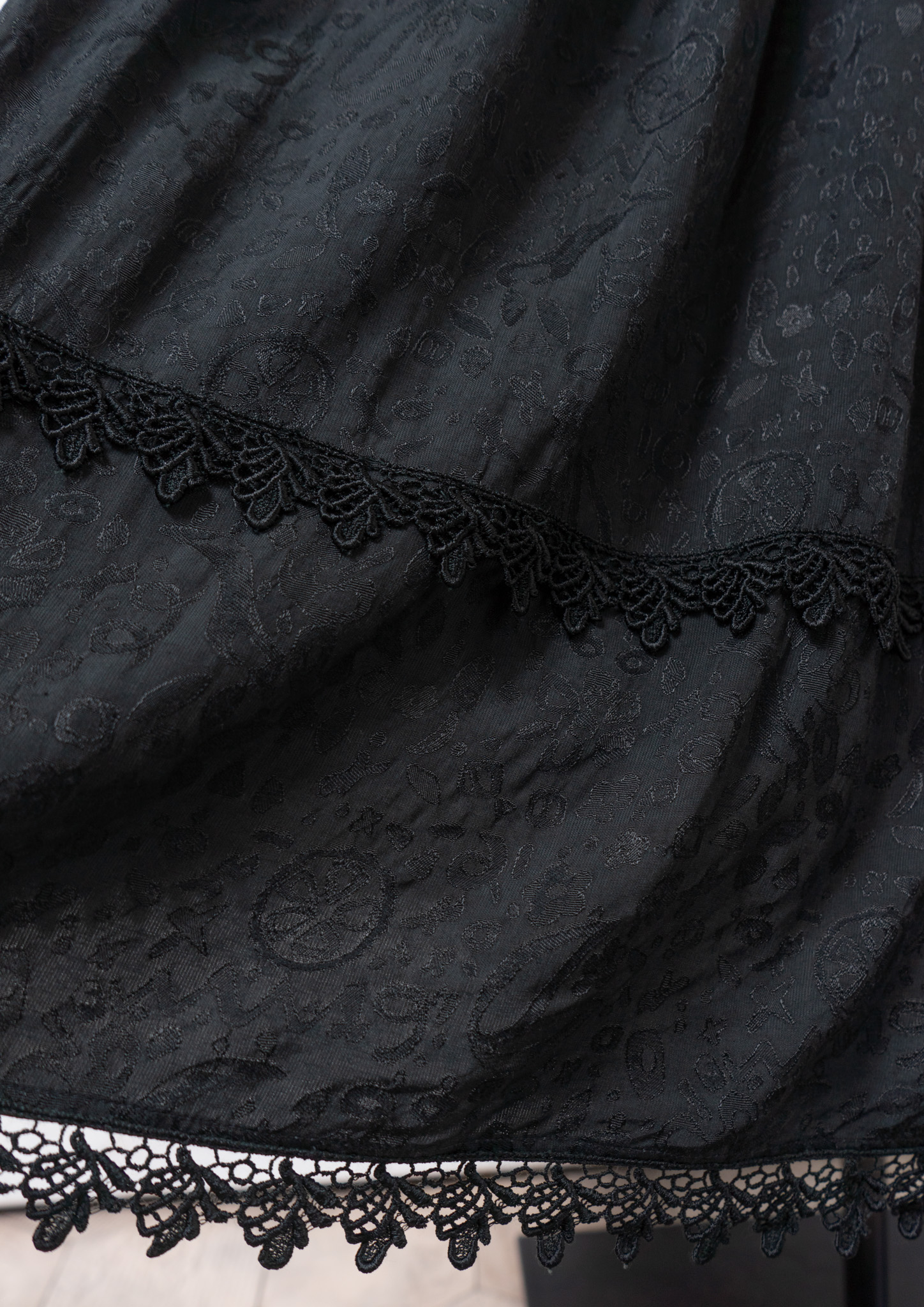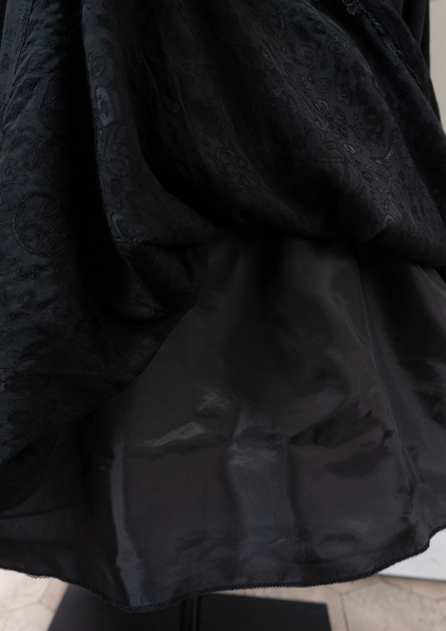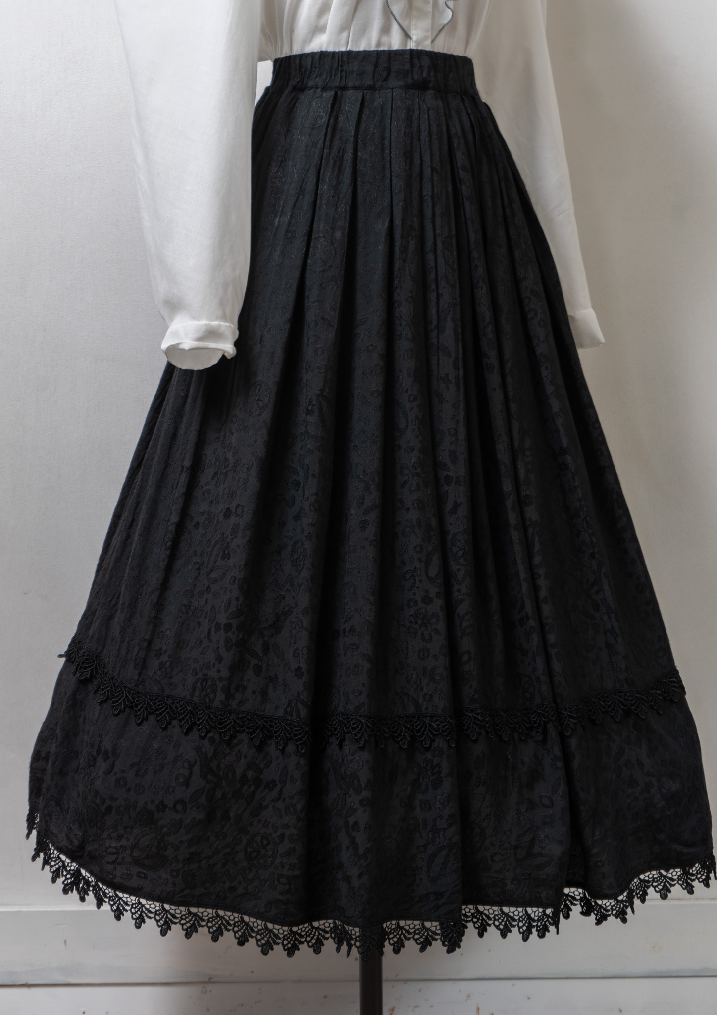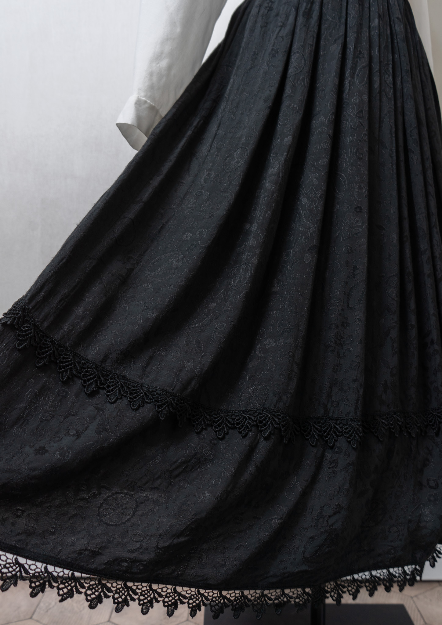80's Euro Velours & Embroidery Tape Design Black Sheer Skirt