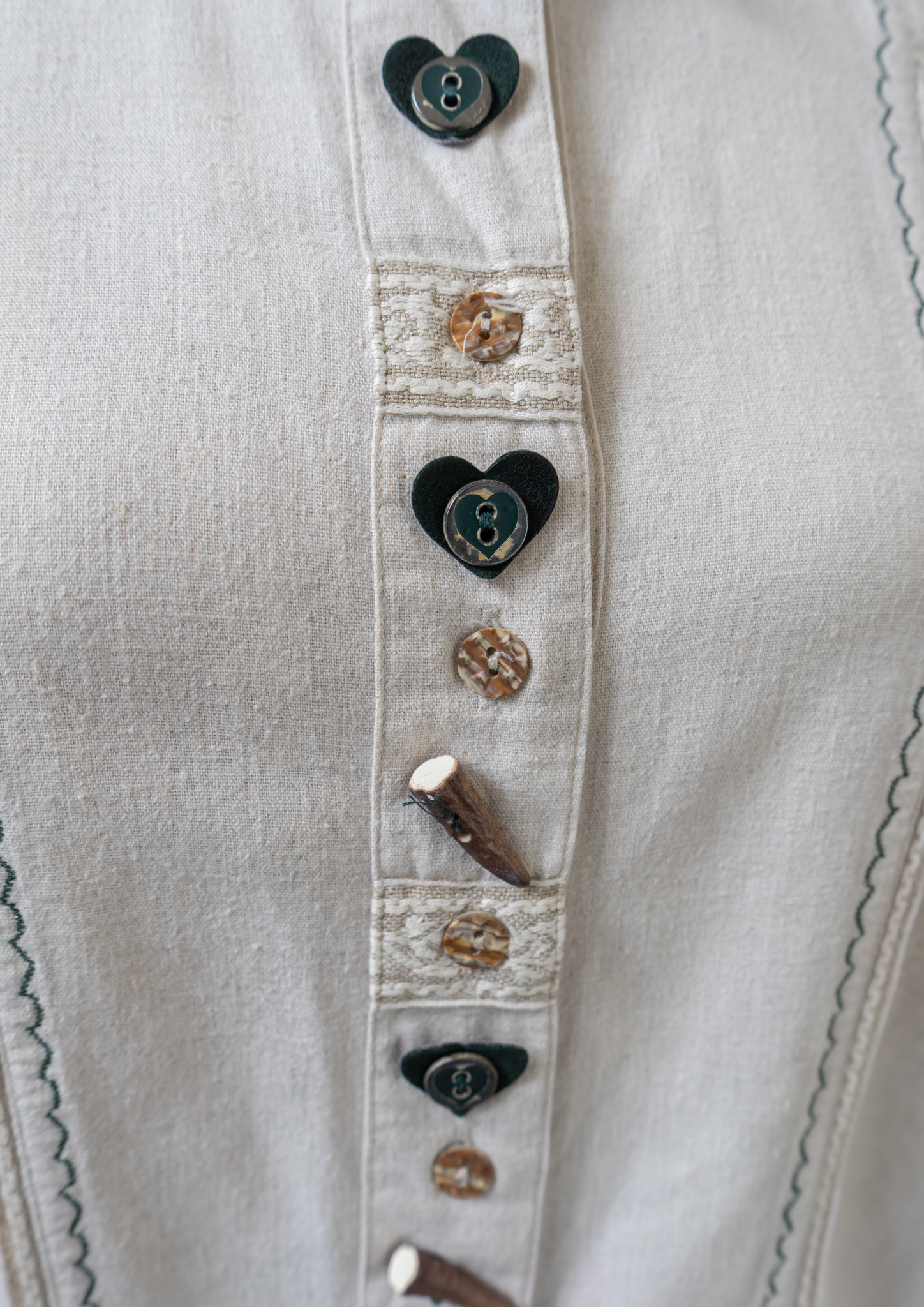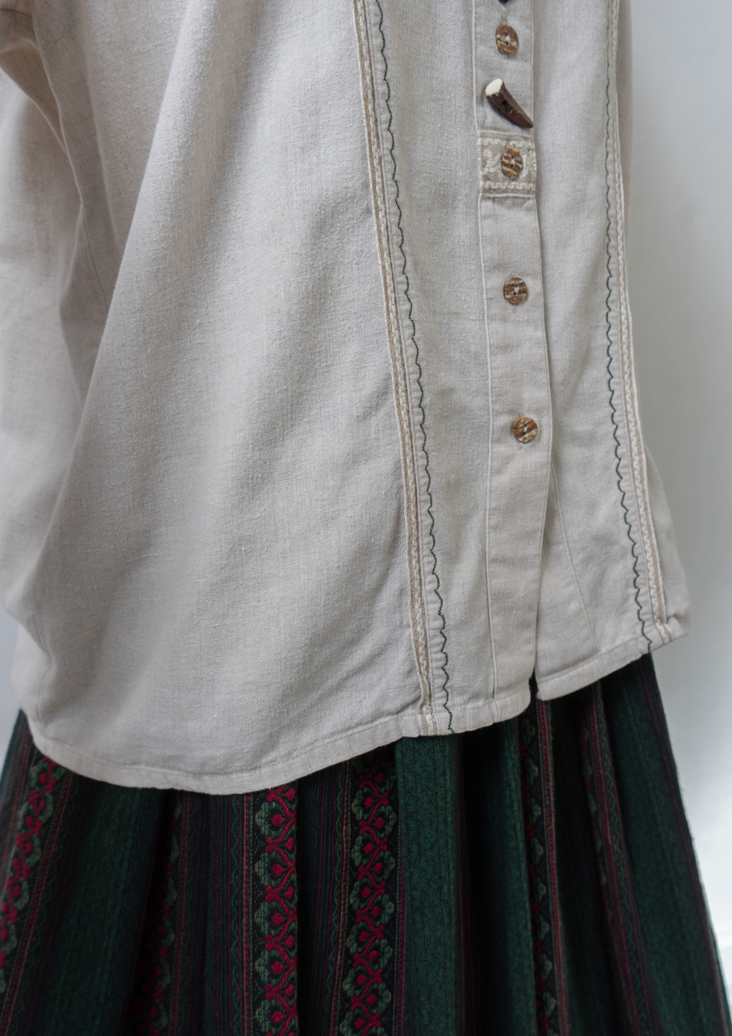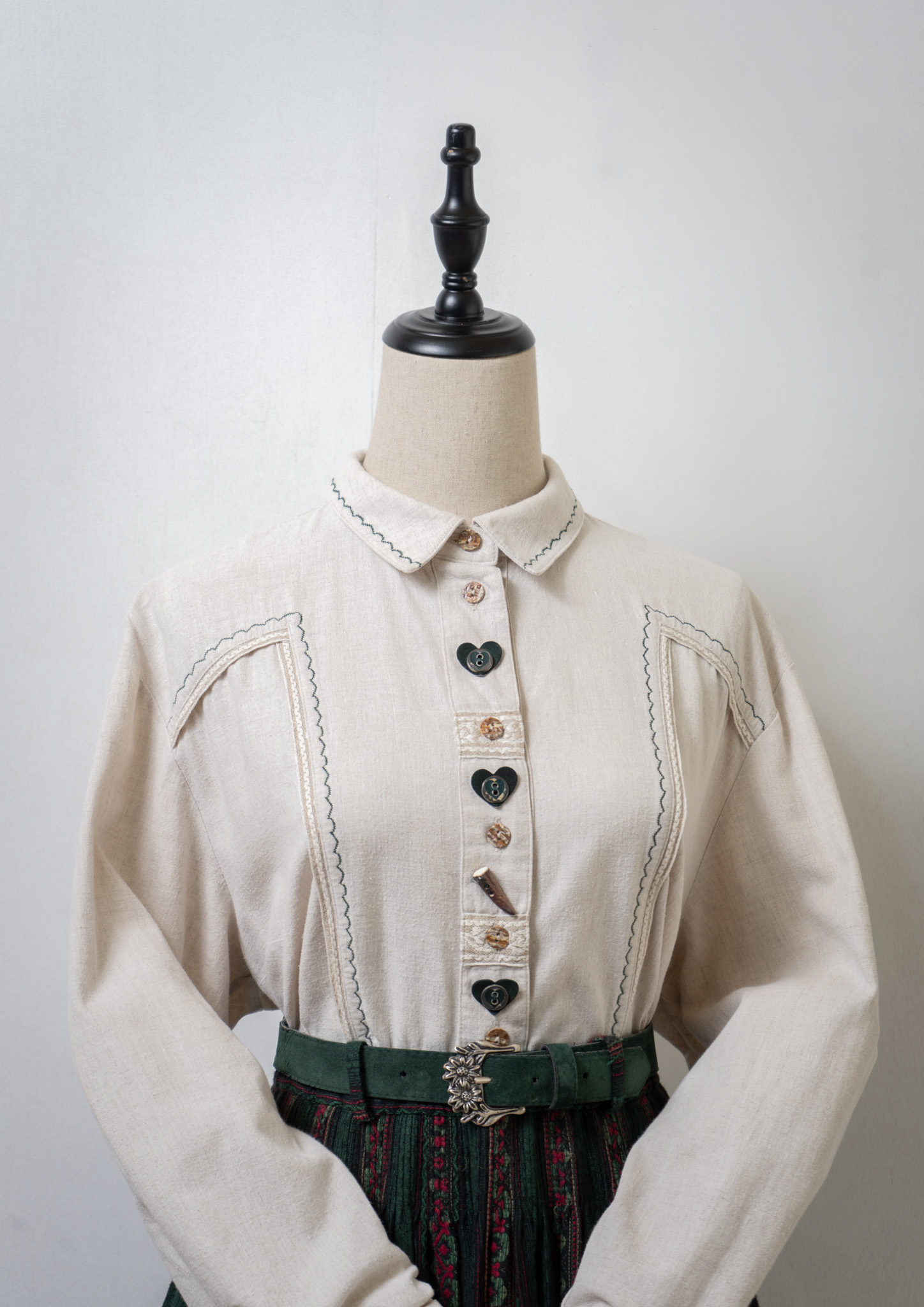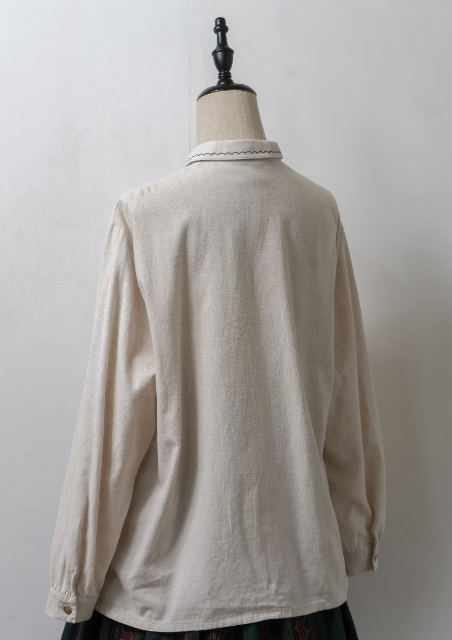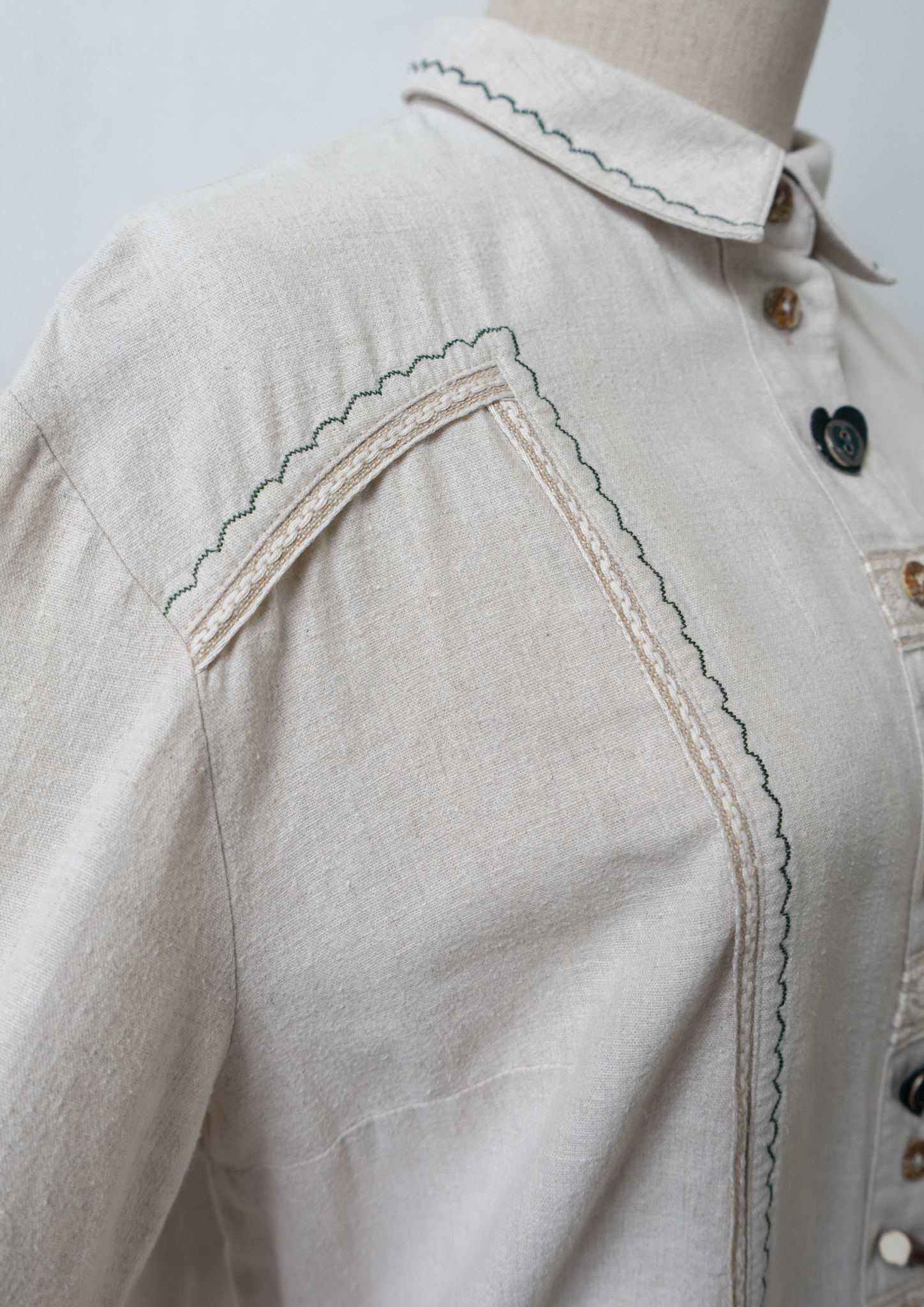 90's Various Button Design Green Stitch Cotton Linen Blouse