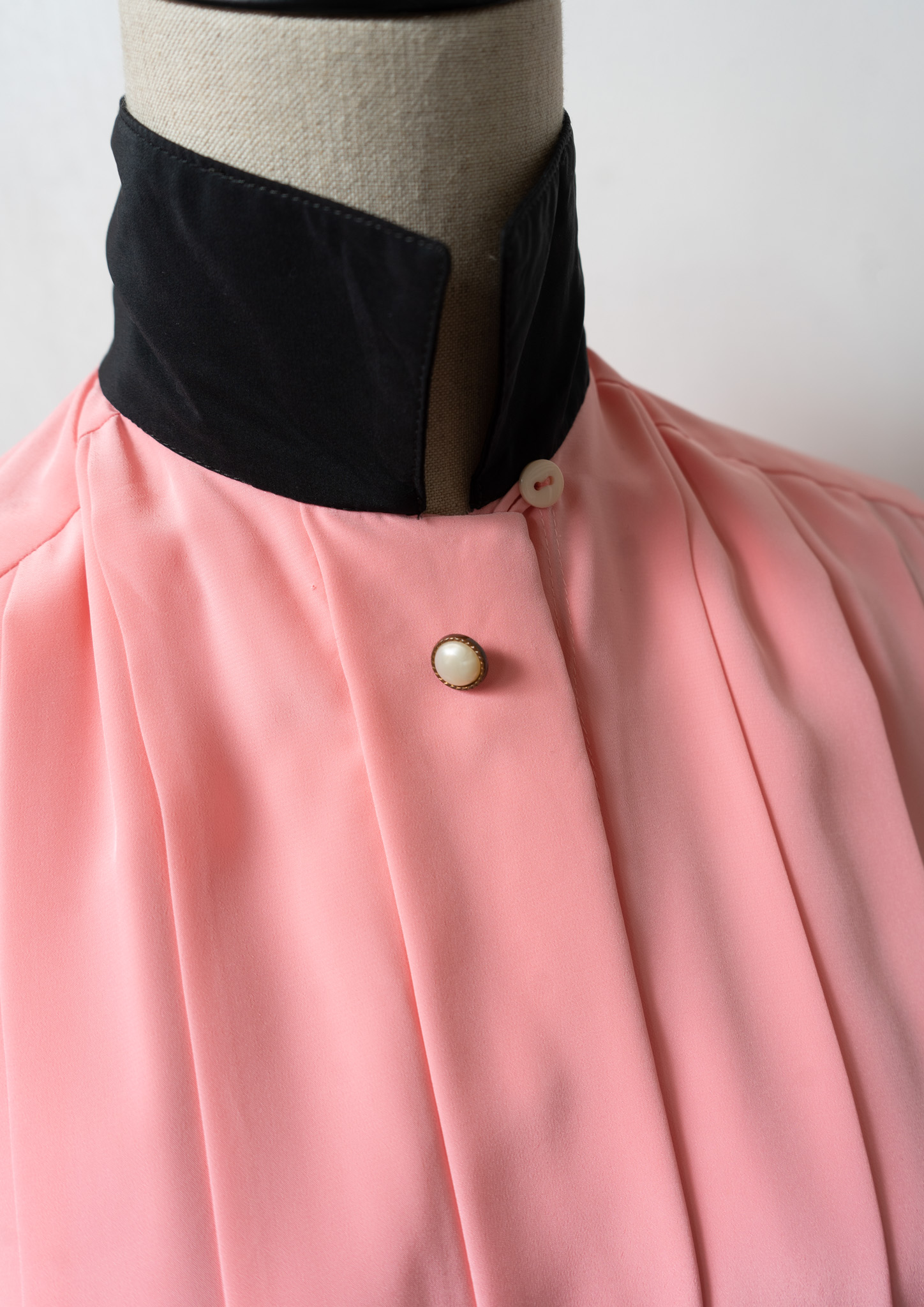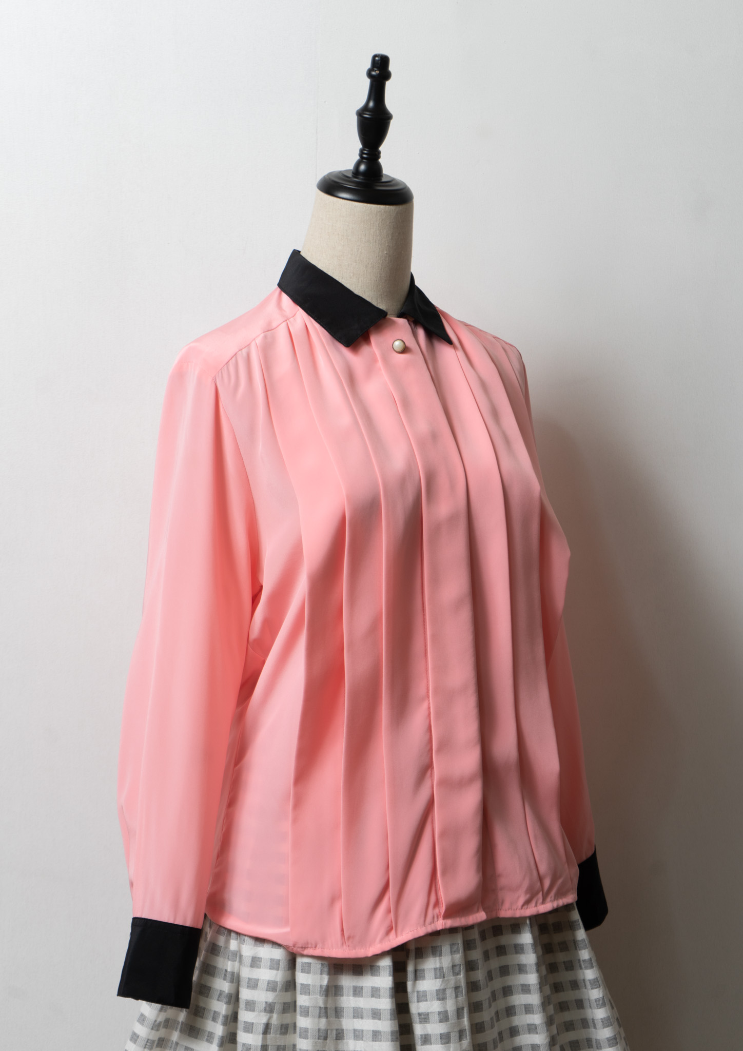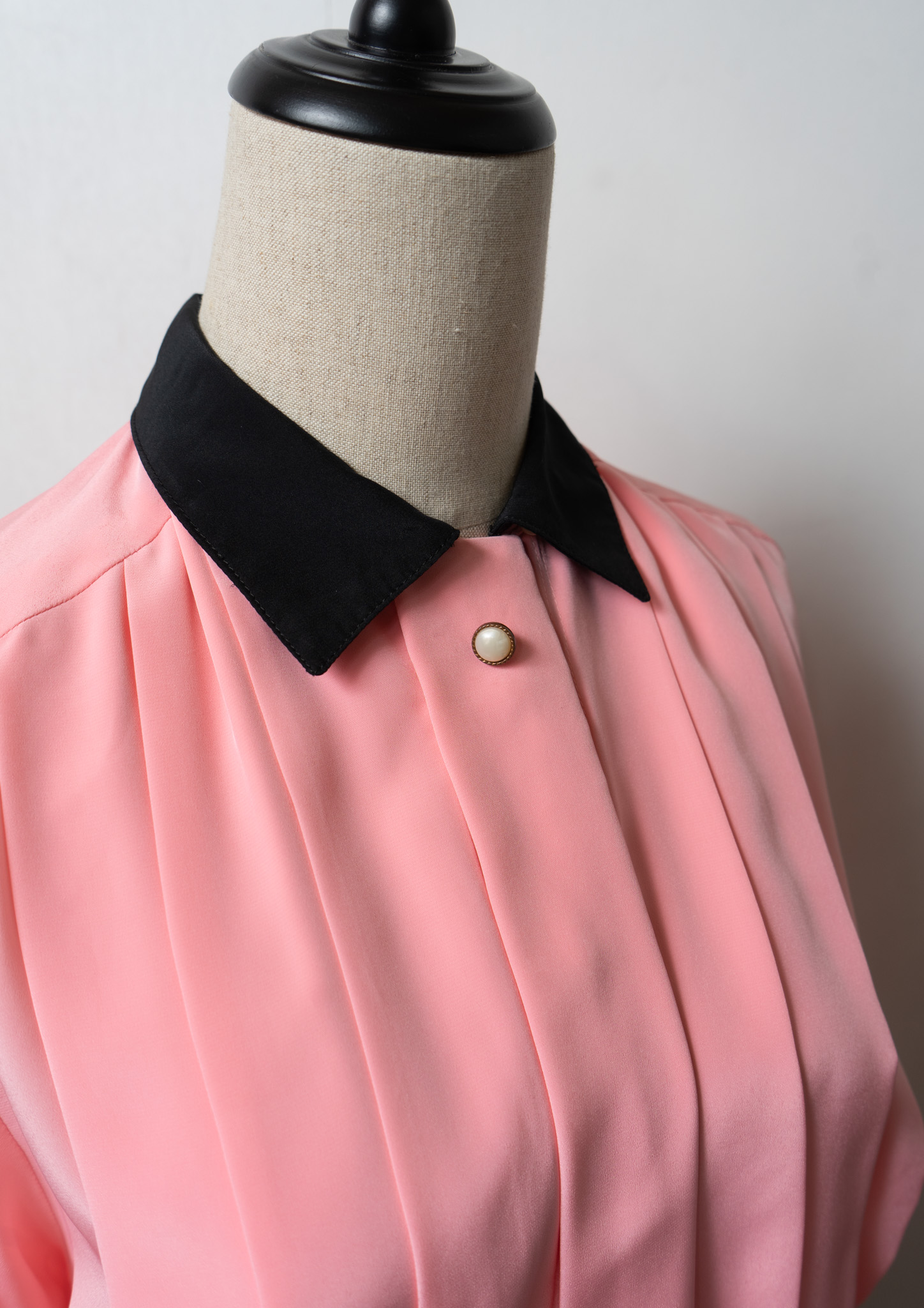 80's Tuck Design Pink × Black Bicolor Blouse