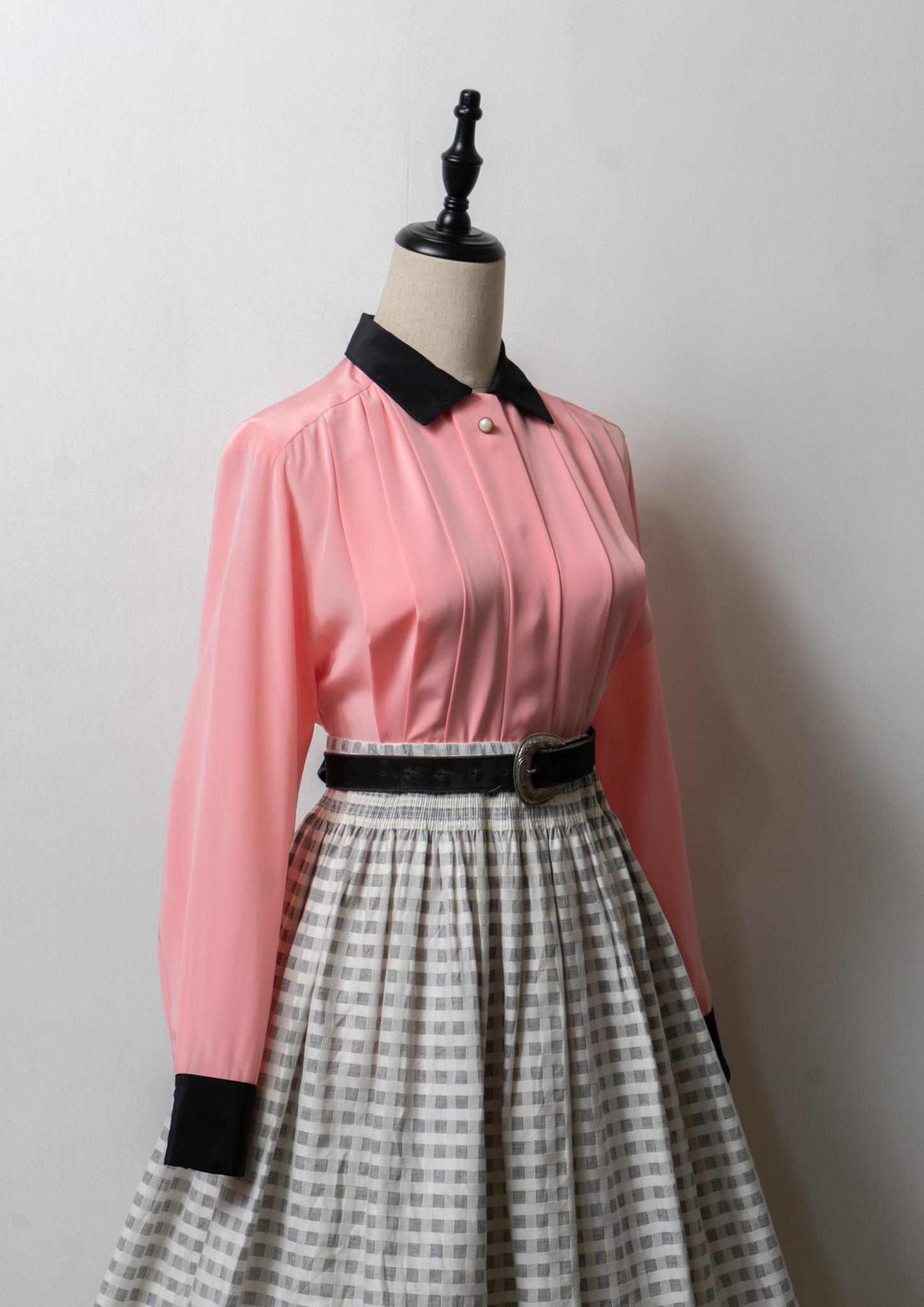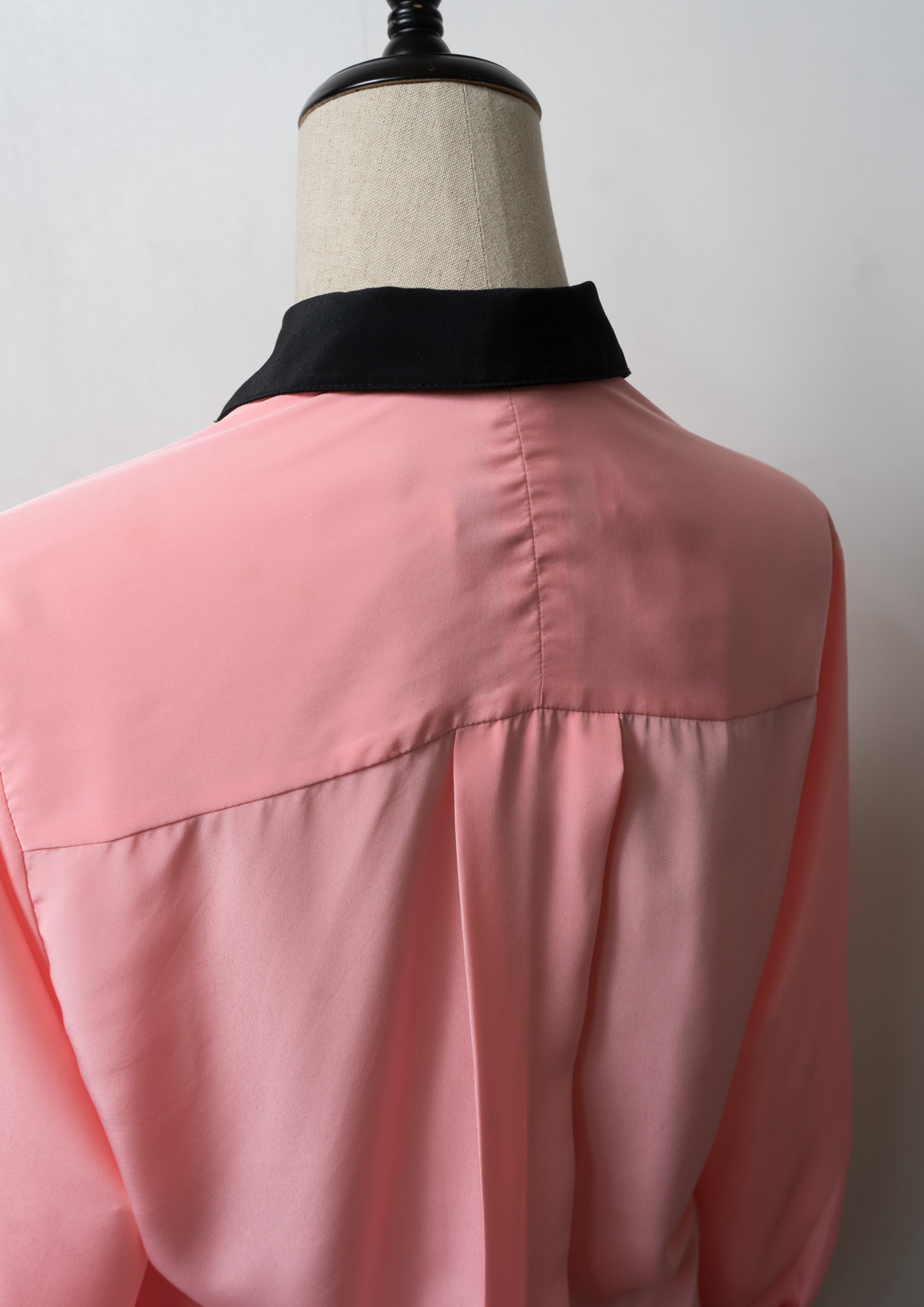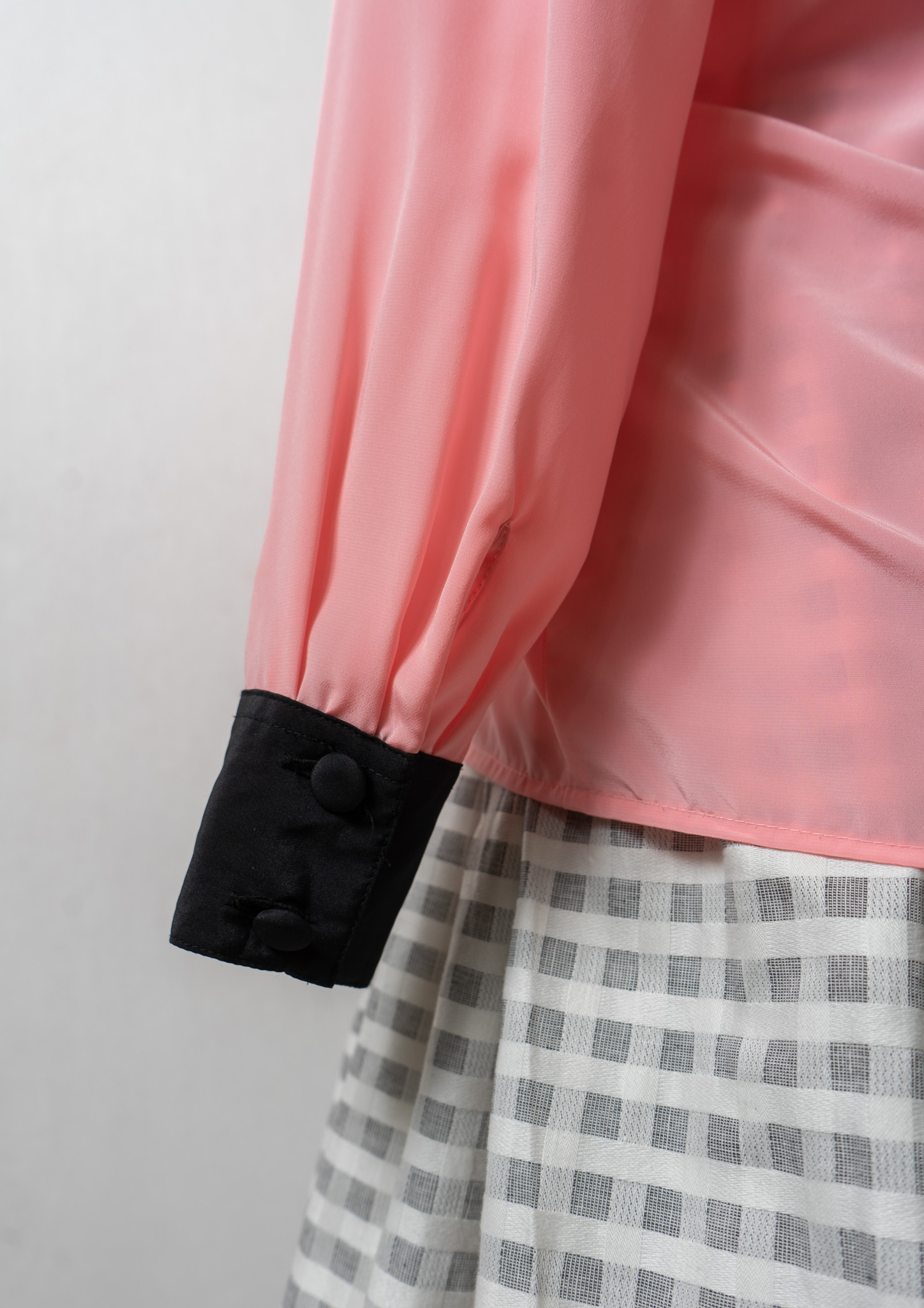 80's Tuck Design Pink × Black Bicolor Blouse