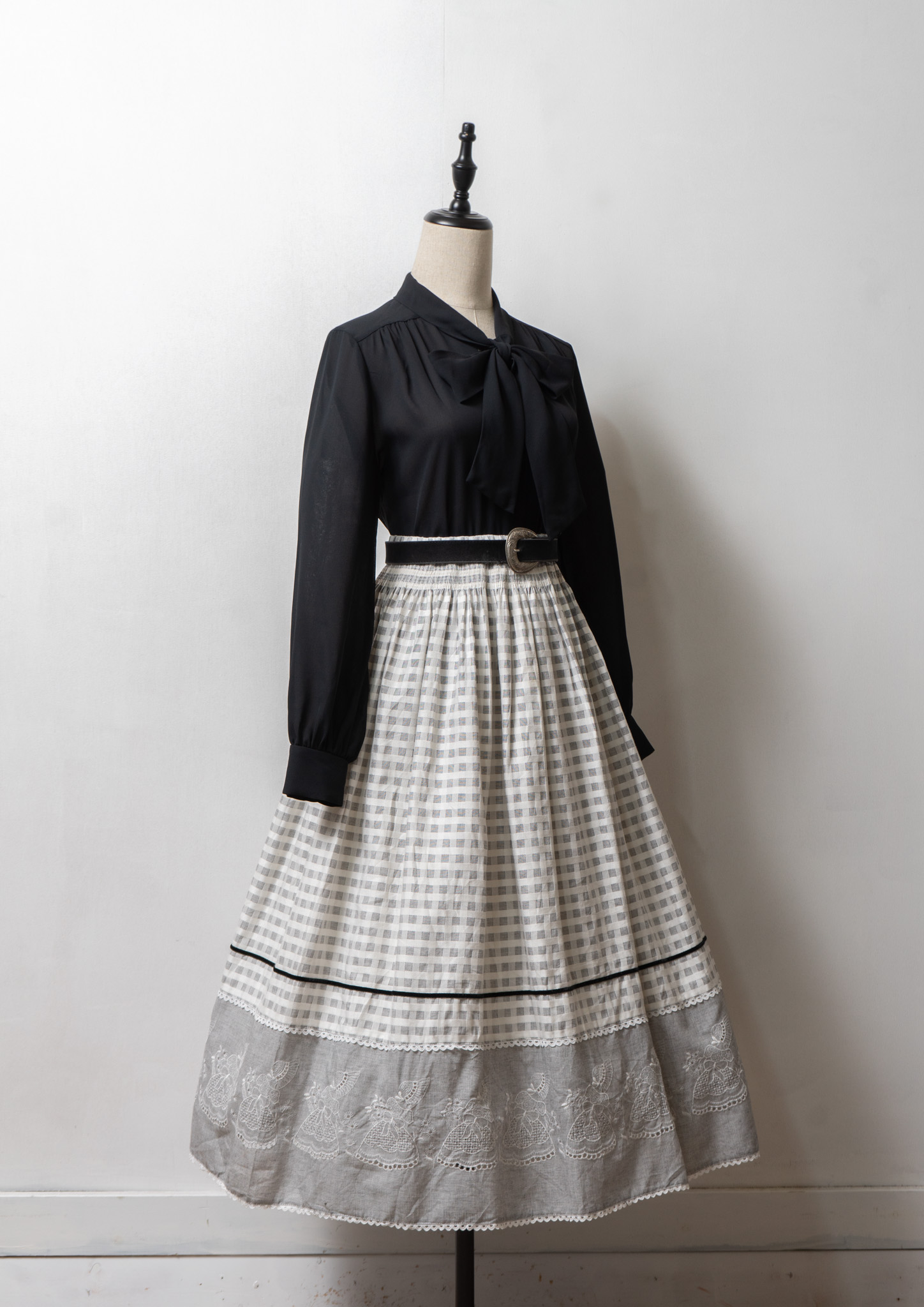 80~90's C&A Lily of the valley Embroidery White Blouse
