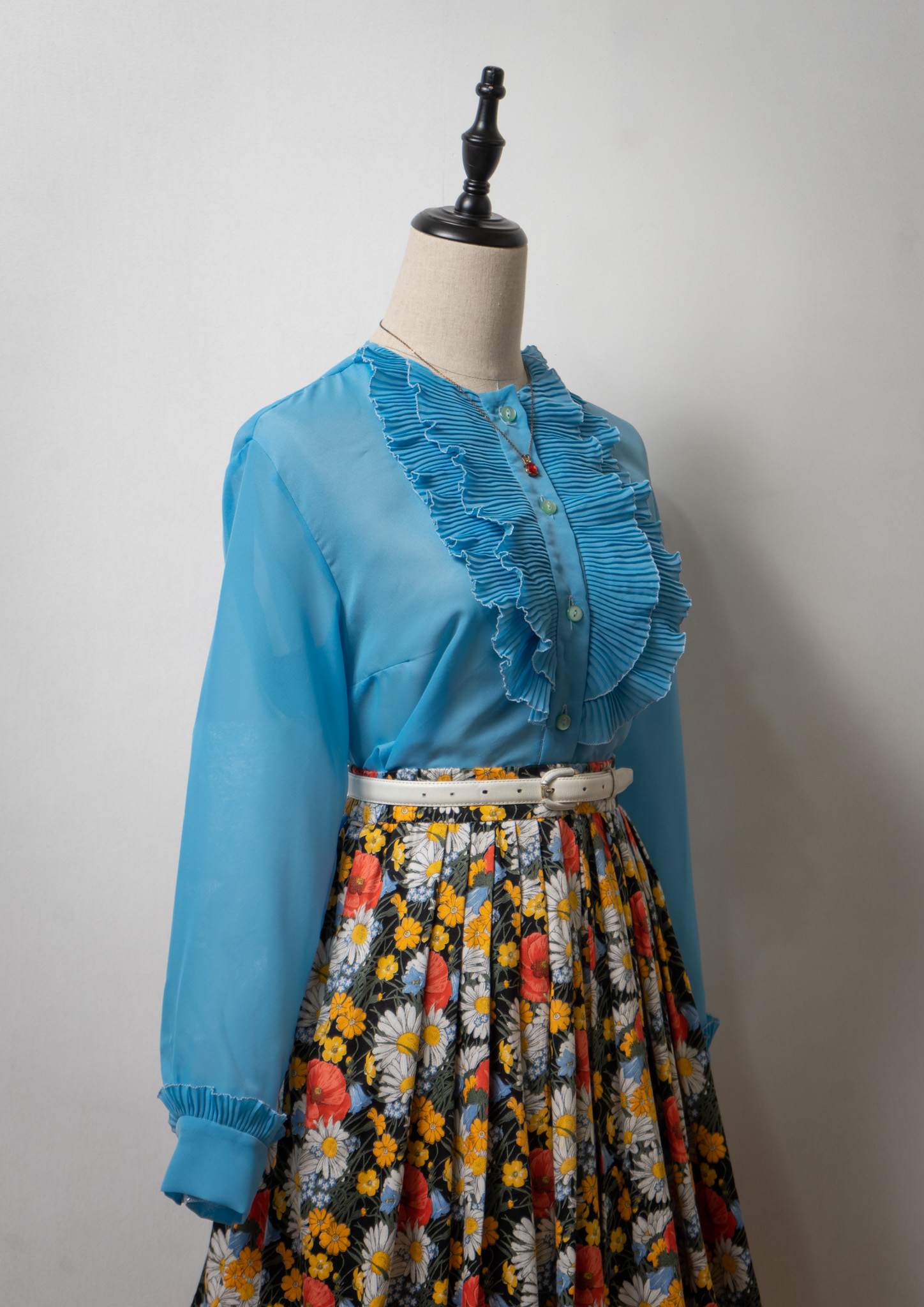 70's Pleated Frill Design Blouse