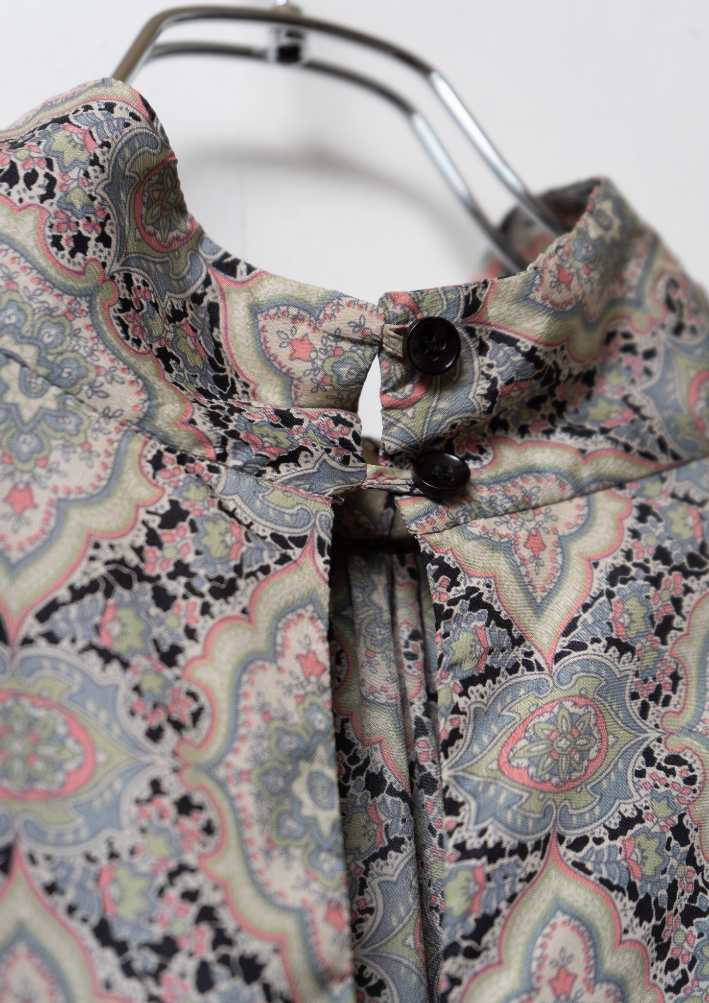 80's Damask Pattern Design Stand Neck Blouse